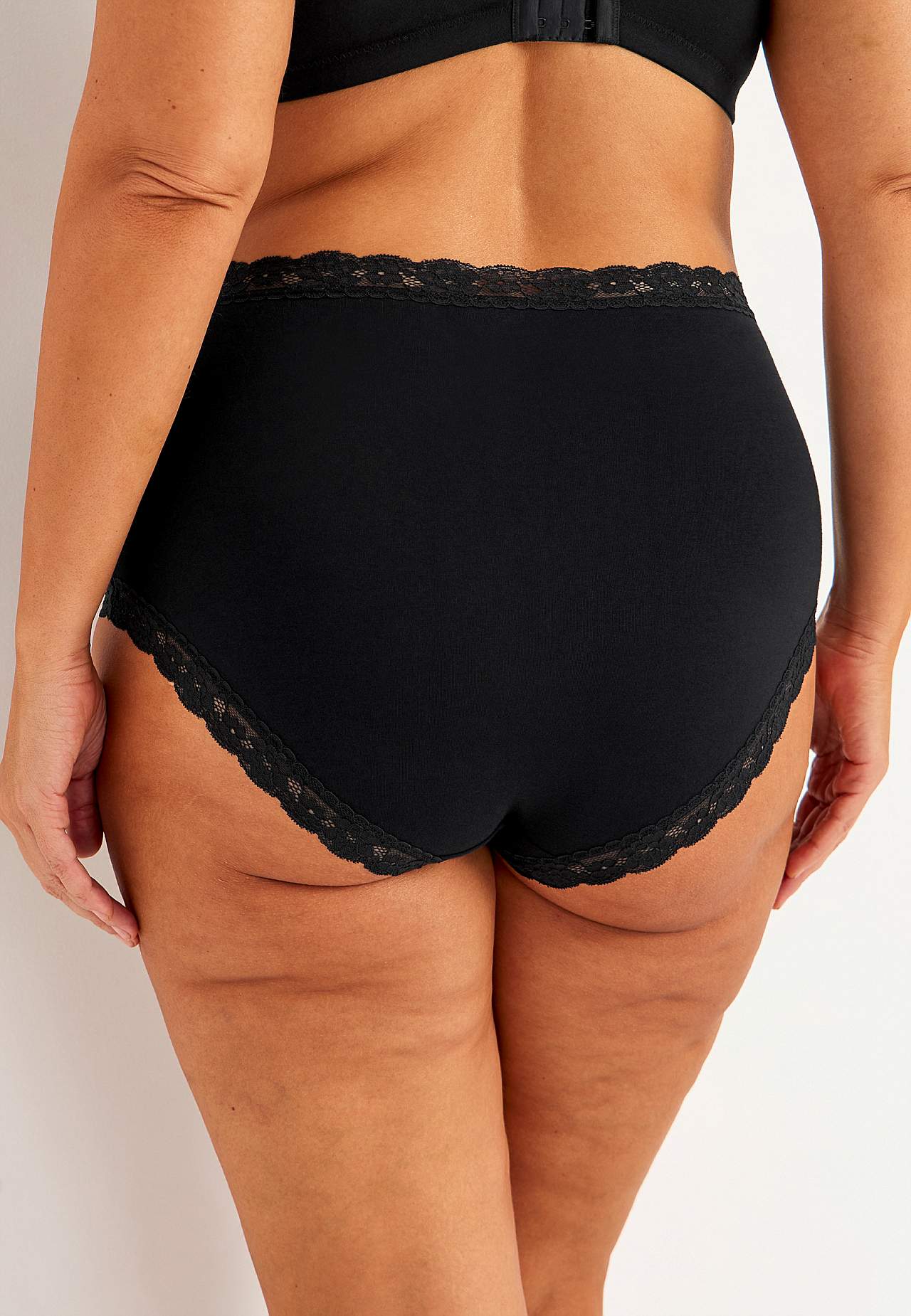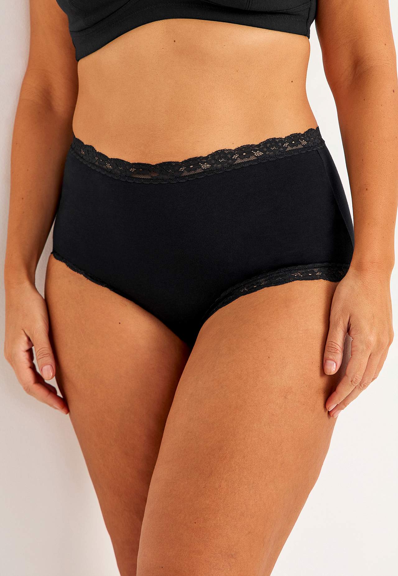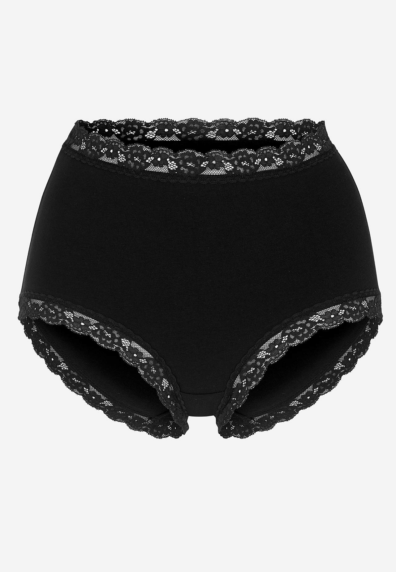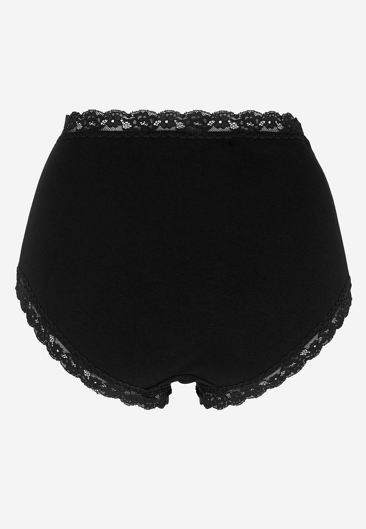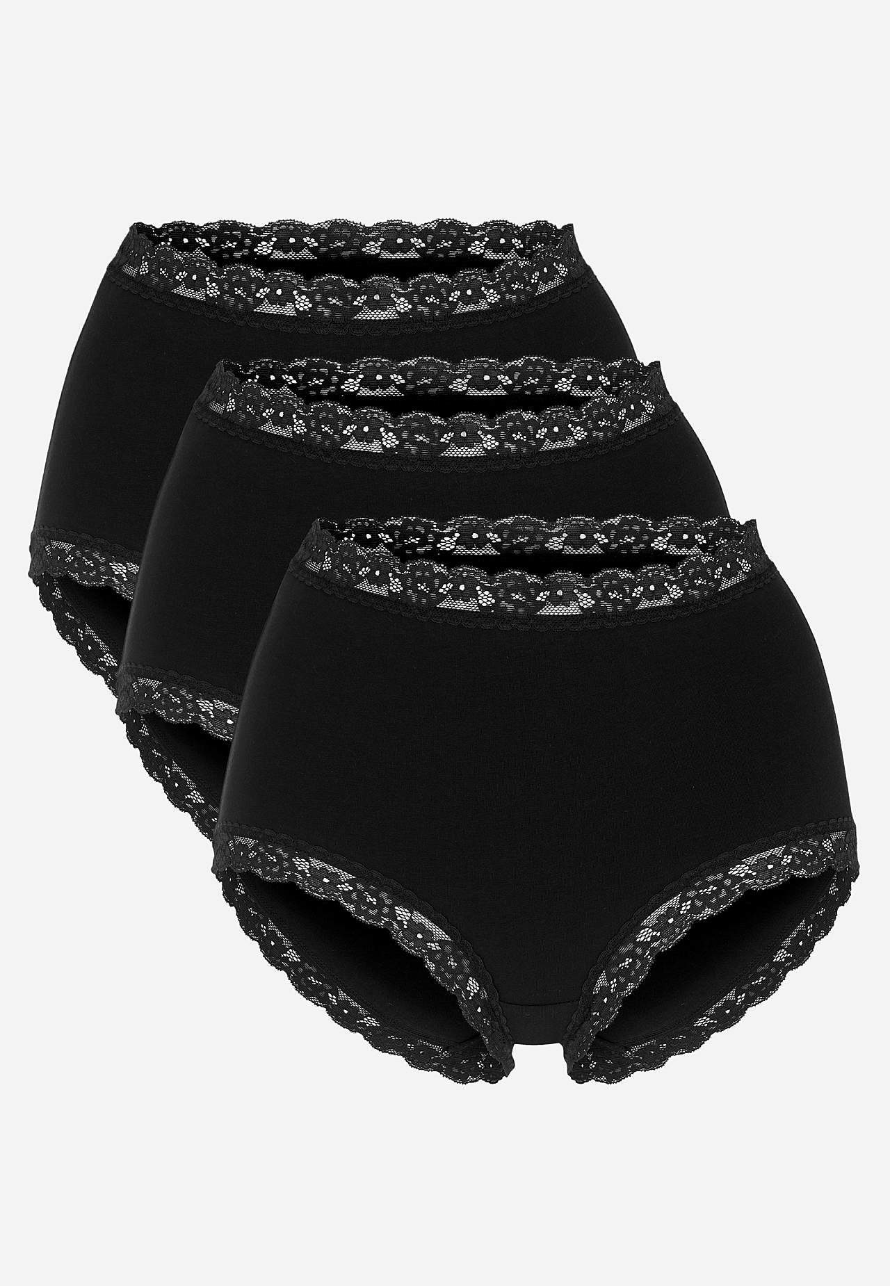 Müüakse 3-kaupa pakendites. Pehme kõrge vöökohaga aluspüksid. Puuvillavoodriga vahetükk.