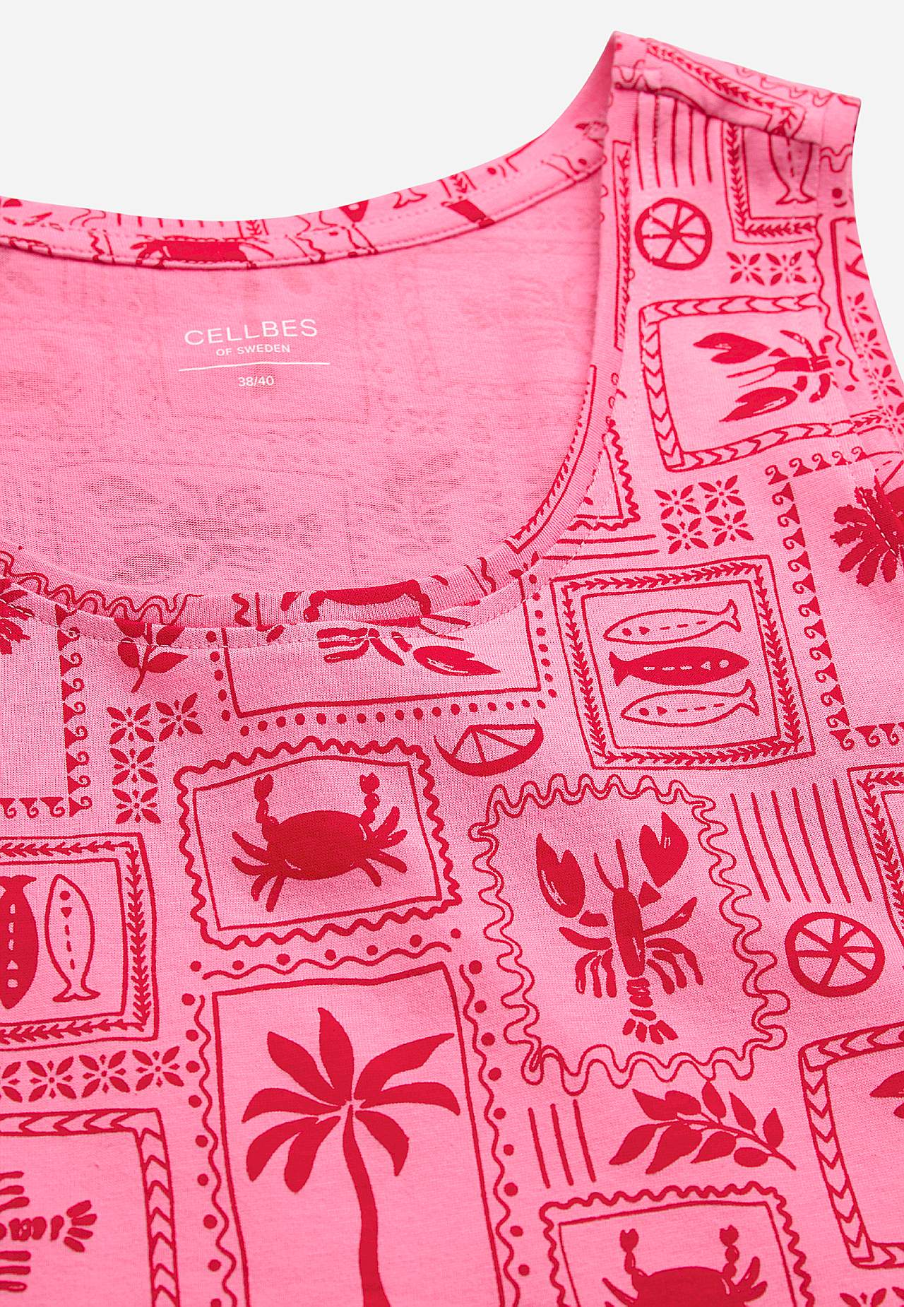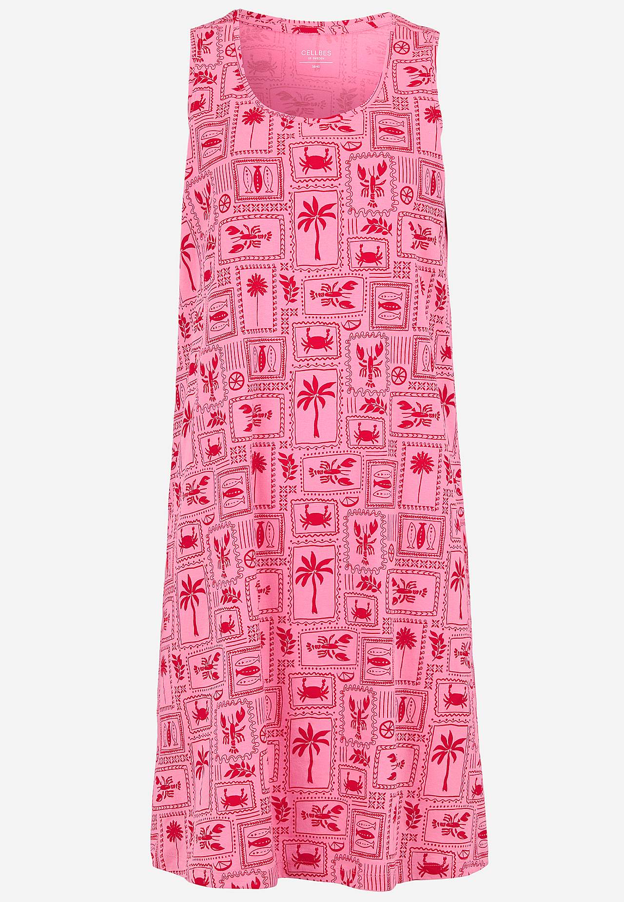 Pehmest orgaanilisest puuvillast lühike öösärk. Avaram mudel. Mustriline. Ümar kaelus. Varrukateta mudel. Sirge alläär, külgedel lõhikud. Pikkus tagant õlast vastavalt suurusele u 94-101 cm.