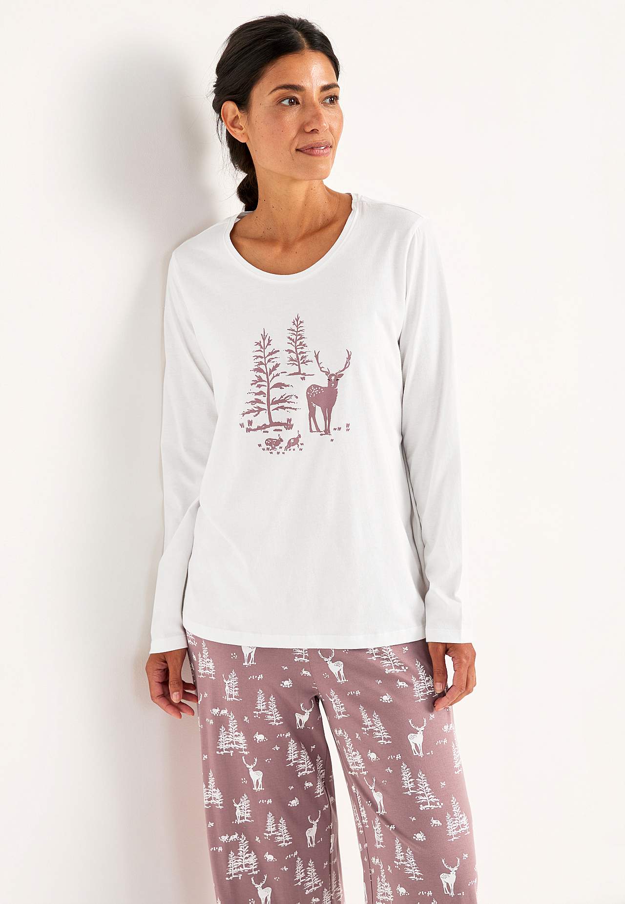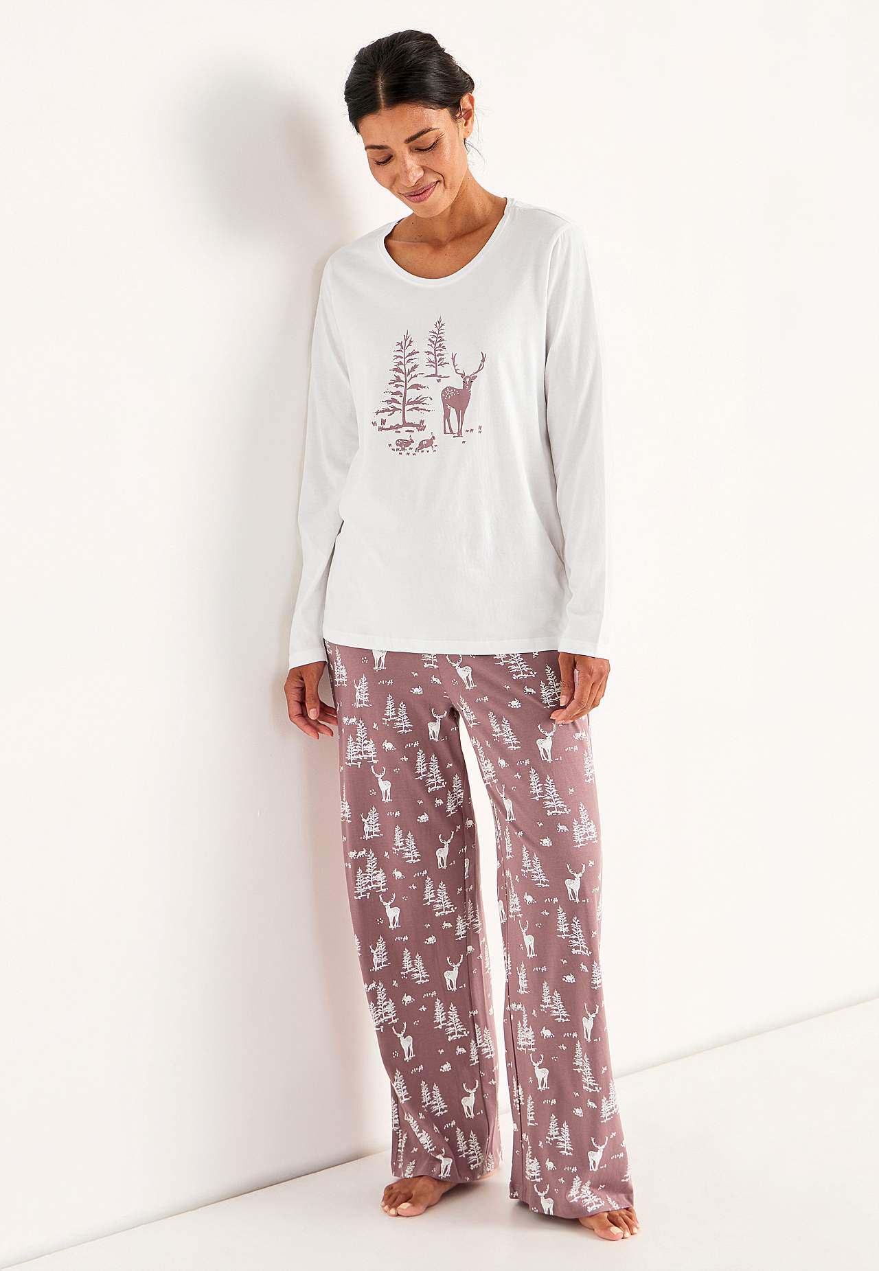 Pikkade varrukatega topp. Pikad püksid. Ülemine osa: Ümara kaelusega topp. Pikkus õlast vastavalt suurusele u 67-79 cm.