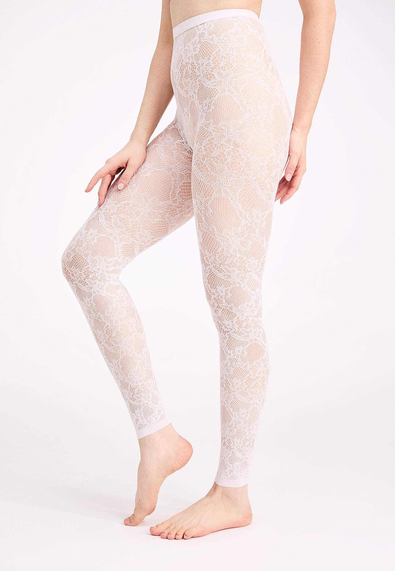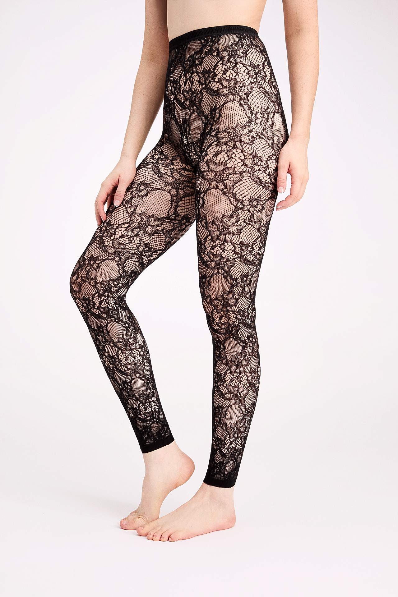 Läbipaistvad, elastsest materjalist, elegantse mustriga pitsilised retuusid. Kitsas lõige. Tavakõrguses elastne vöökoht. Voodriga vahetükk. Poolmatt viimistlus. Sirgete säärtega. 60 den.