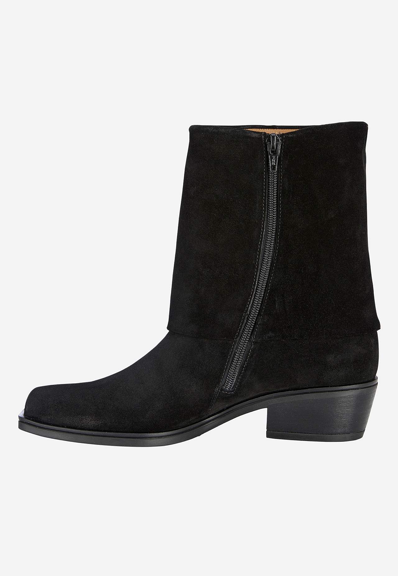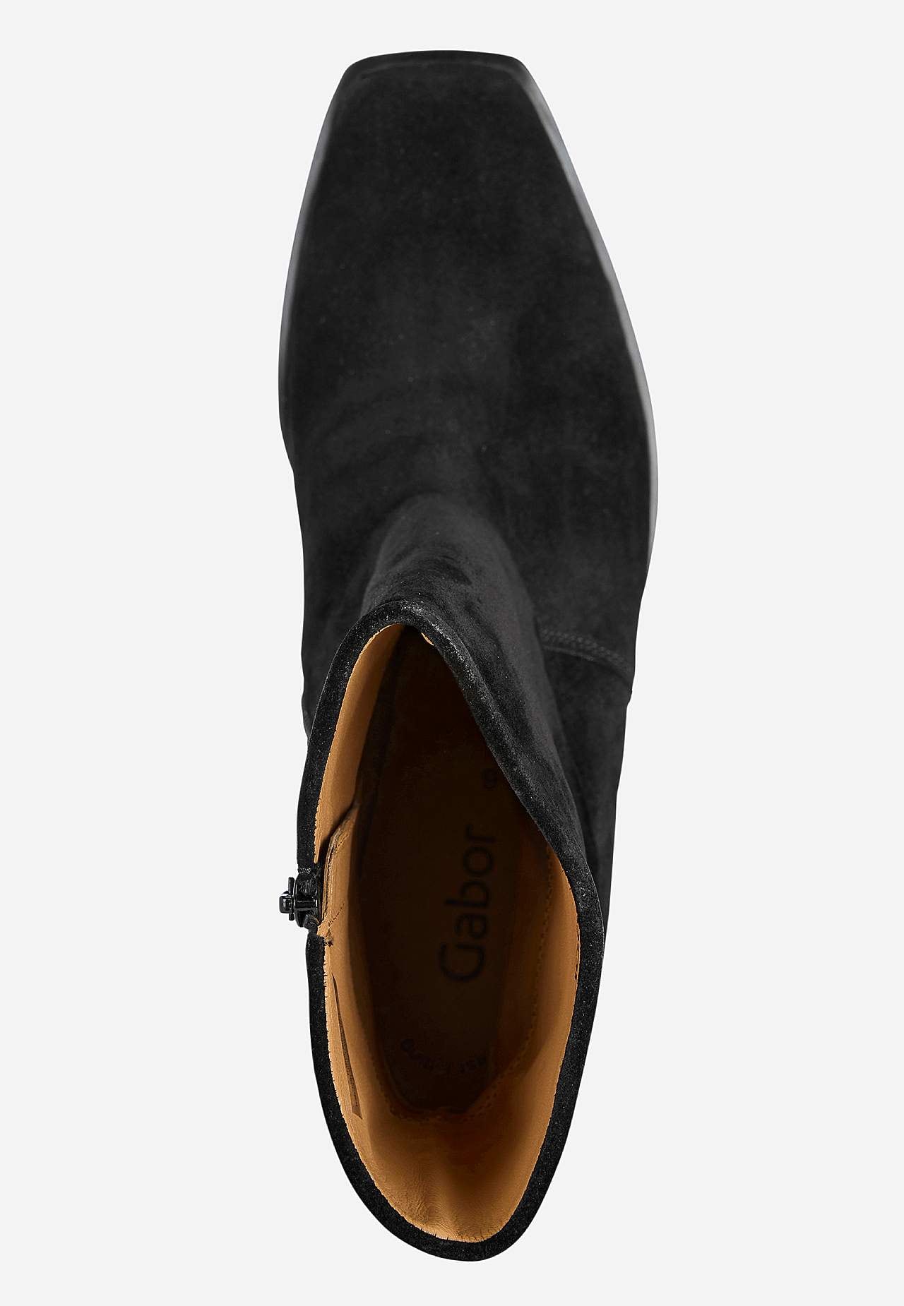 Seemisnahast poolsaapad. Allakeeratud, kinniõmmeldud sääreosa. Siseküljel tõmblukk. Sama tooni õmblused. Pehme sisetald. Hea haarduvusega välistald ja kand. Gabor Best Fitting Vaata altpoolt. Pealised nahast. Vooder tekstiilist ja nahast. Sisetald tekstiilist. Välistald sünteetilisest materjalist. Best Fitting