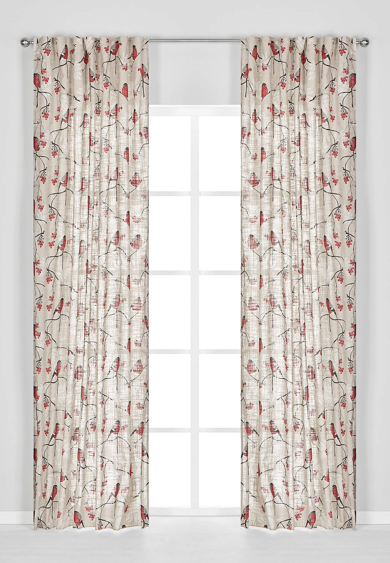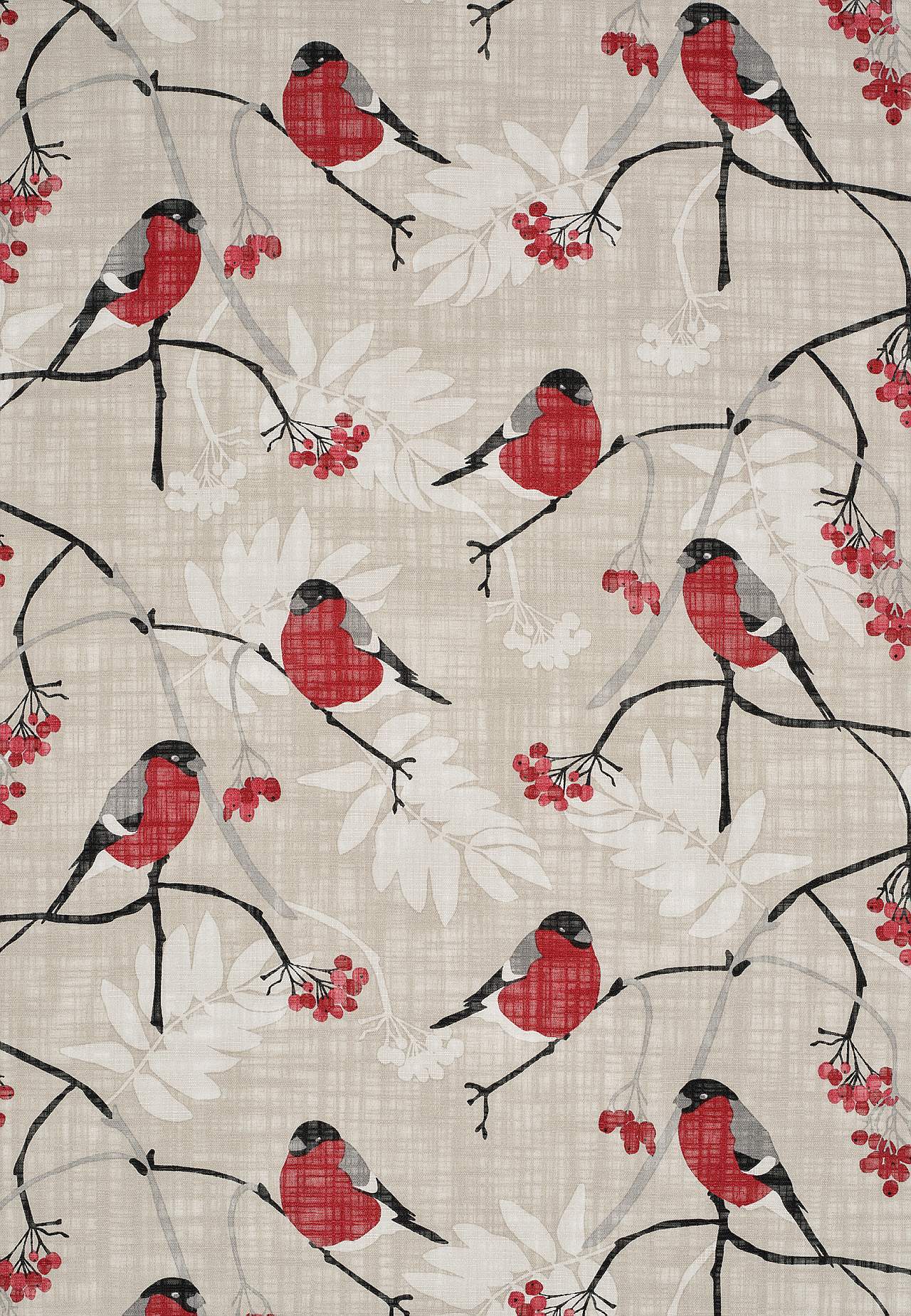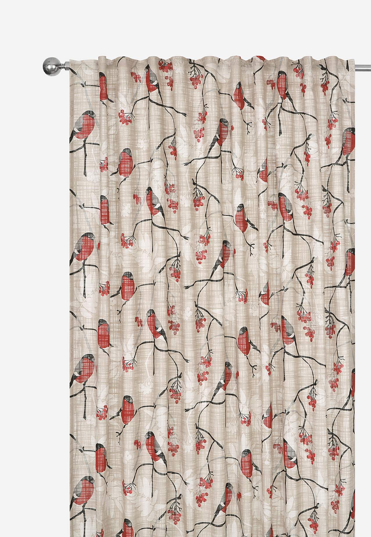Trükimustriga kardinad armsate leevikeste, lehtede ja punaste marjadega. Sissekootud niidid tagavad kauni struktuuri. Lasevad hästi valgust läbi. Trükk on tagaküljel selgelt nähtav. Overlokitud alläär.