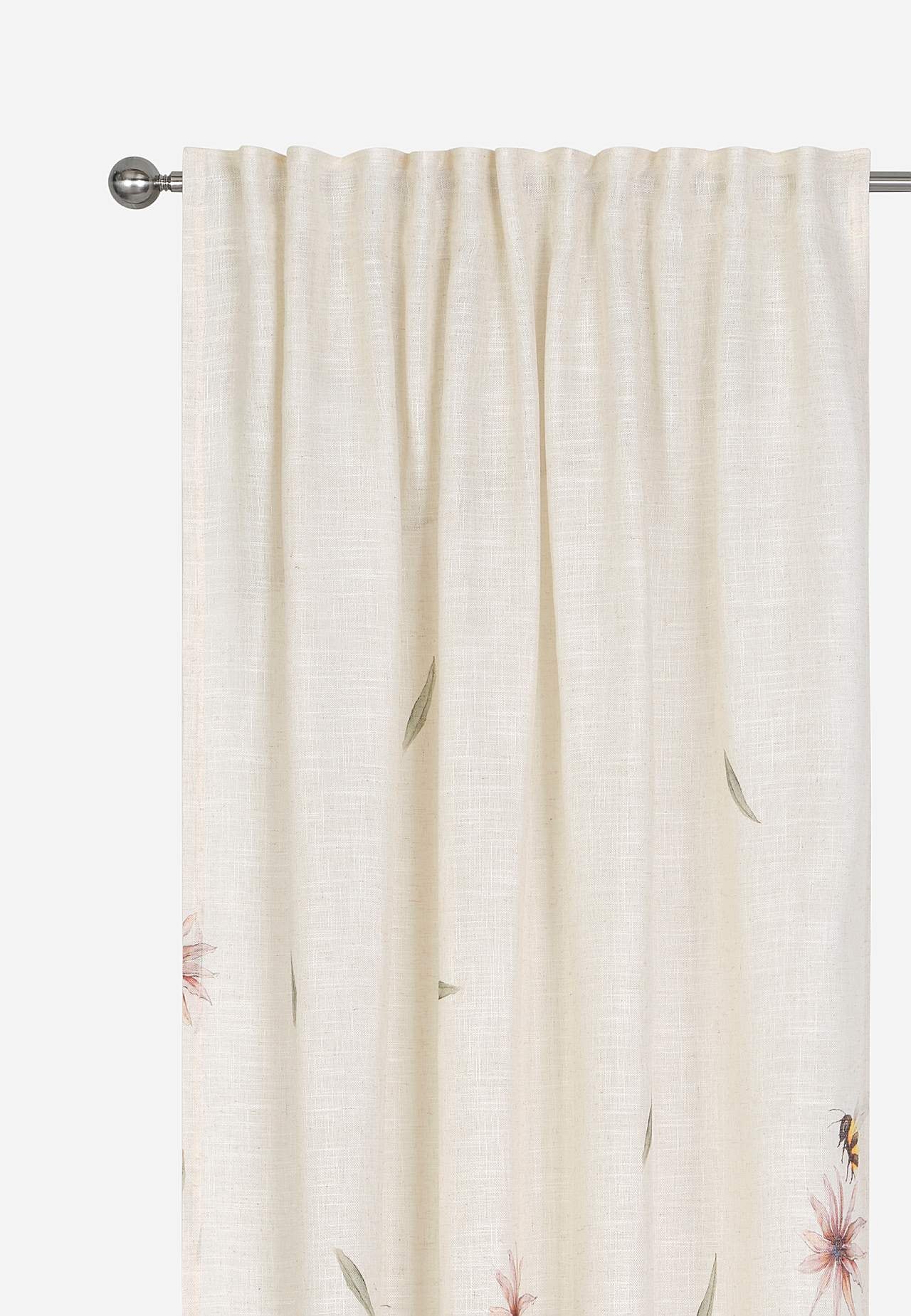 Digitaalse lille-, lehe- ja kimalastega trükimustrilised pikad kardinad. Õhuline, sissekootud veidi tugevamad niidid lisavad struktuuri ja annavad kauni läike. Trükimuster on tagaküljel üsna nähtav. Overlokitud alläär.