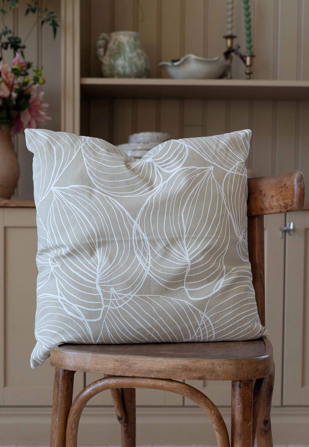 Trükitud graafilise mustriga padjapüür. Kergelt tekstuurse koega veidi paksem puuvillane materjal. Sama muster ees ja taga. Tõmblukk küljel. Suurus: 48x48 cm.