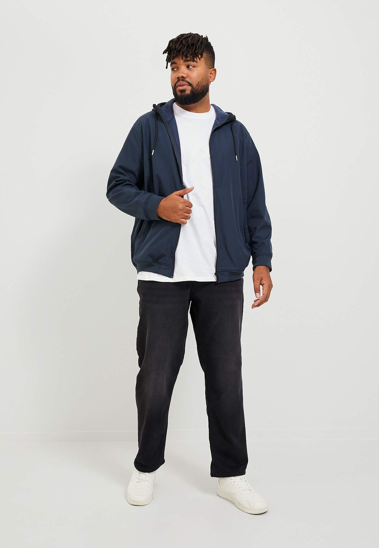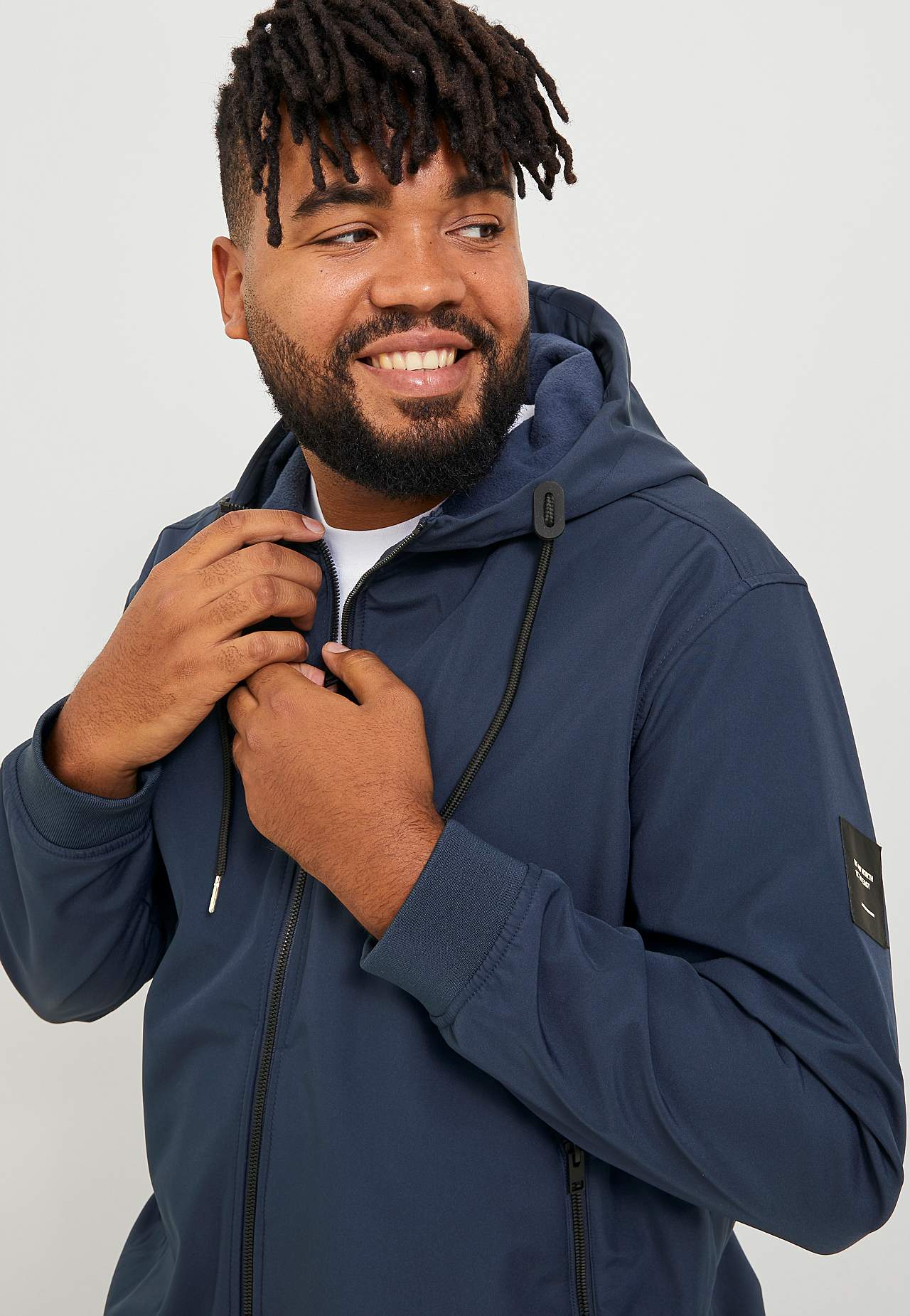 Vetthülgavate omadustega softshell-jakk. Avar tegumood. Mati viimistlusega materjal. Tunnelpaelaga külgeõmmeldud kapuuts. Ees tõmblukk. Viltused tõmblukuga küljetaskud. Pikkade varrukate otstes soonikuga mansett. Soonikuga sirge alläär. Pehme sisemine pool. Polsterduseta. Pikkus õlast umbes 80 cm suurusel 3XL.