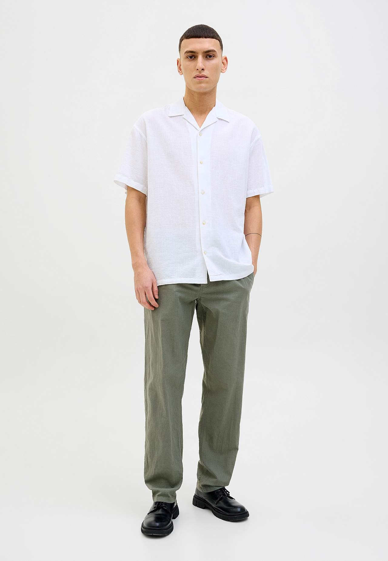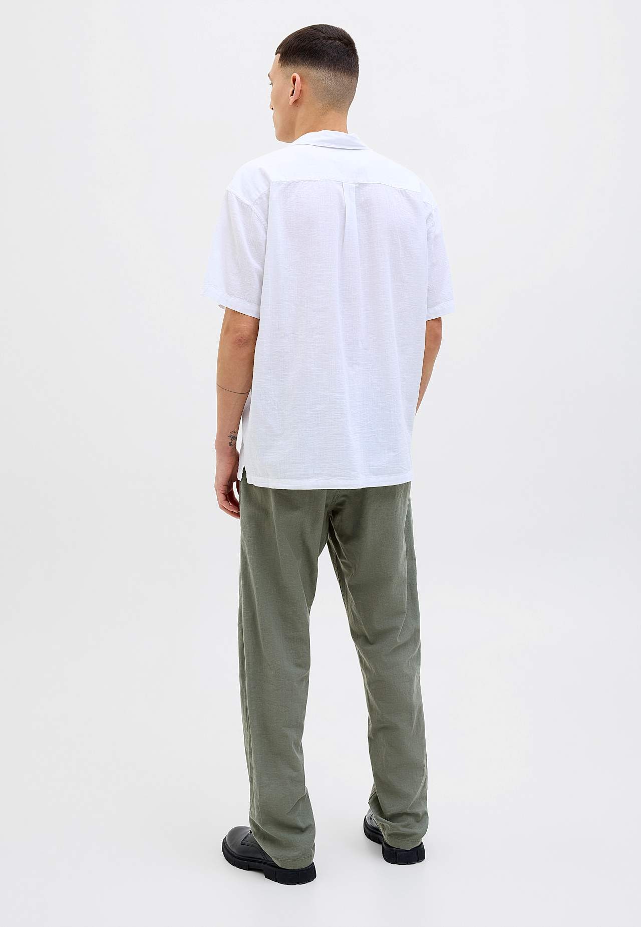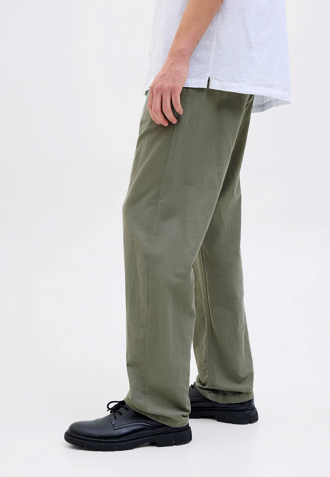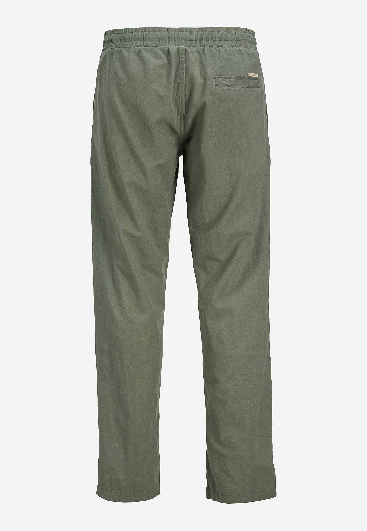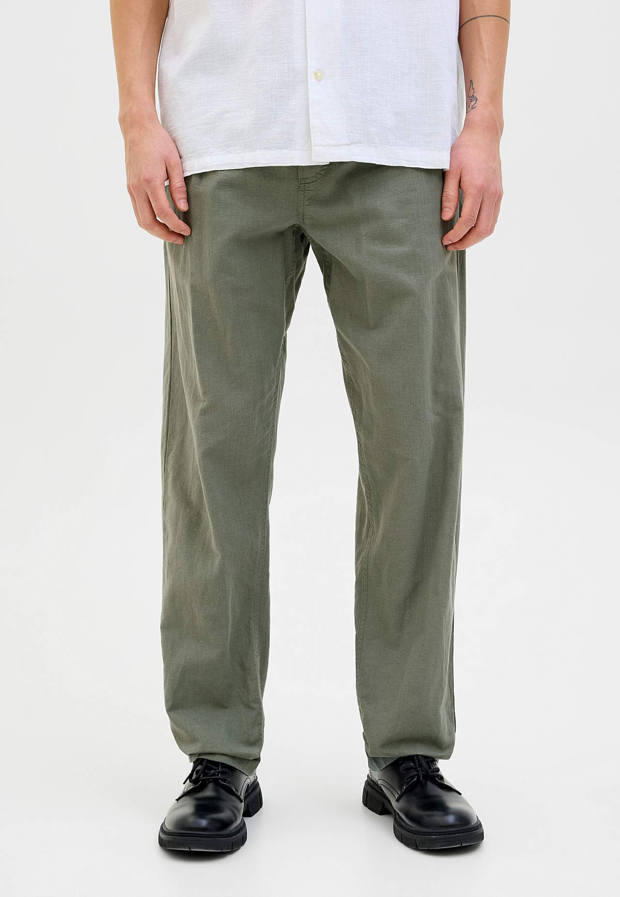 Õhemast ja jahedast linasegusest kangast püksid. Avar tegumood. Kergesti jalgatõmmatav mudel, tavakõrguses pihaosaga. Tunnelpaelaga lai kummivärvel. Viltused küljetaskud. Taga sisseõmmeldud tasku. Sääre sisepikkus suurusel L umbes 78 cm.
