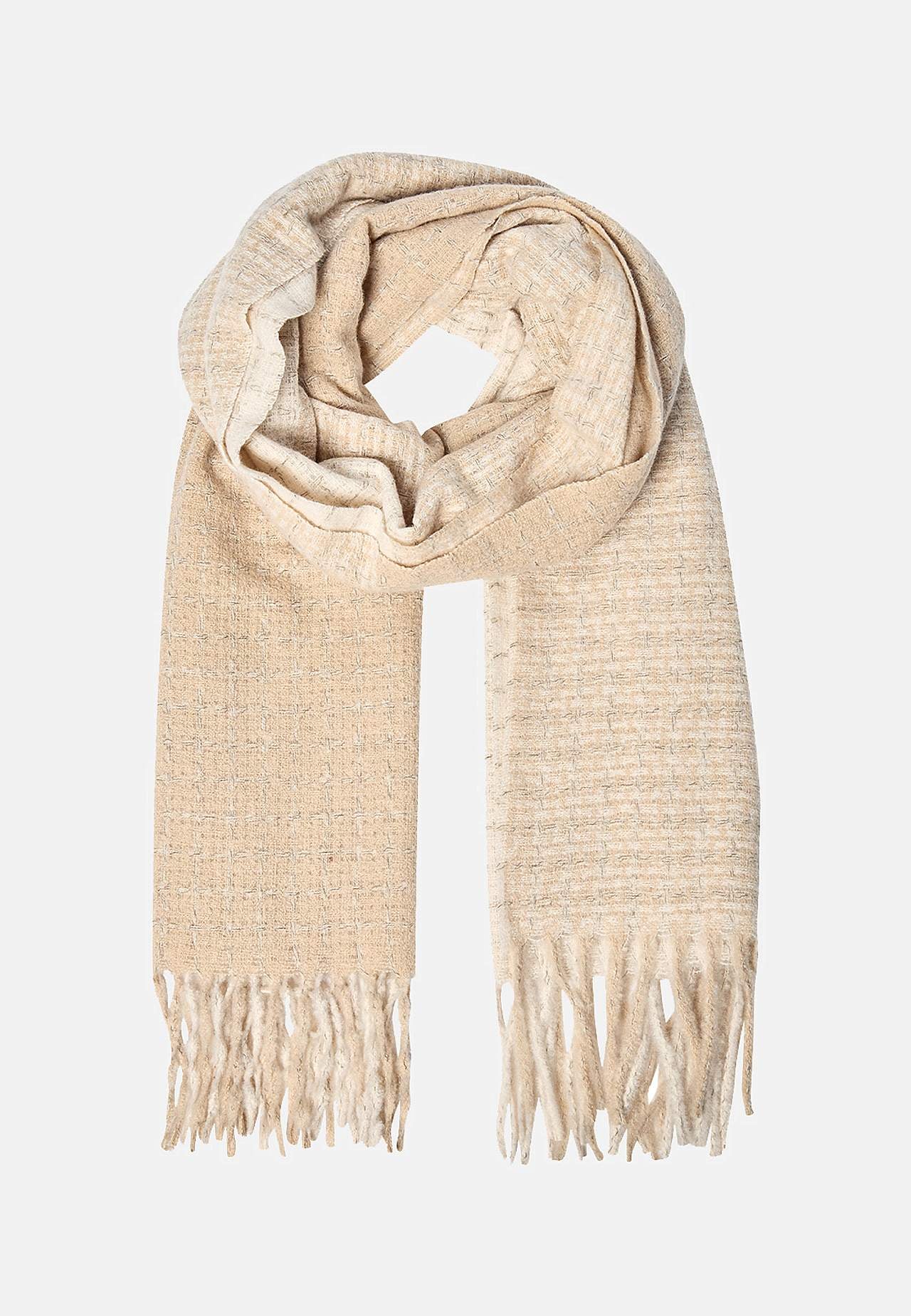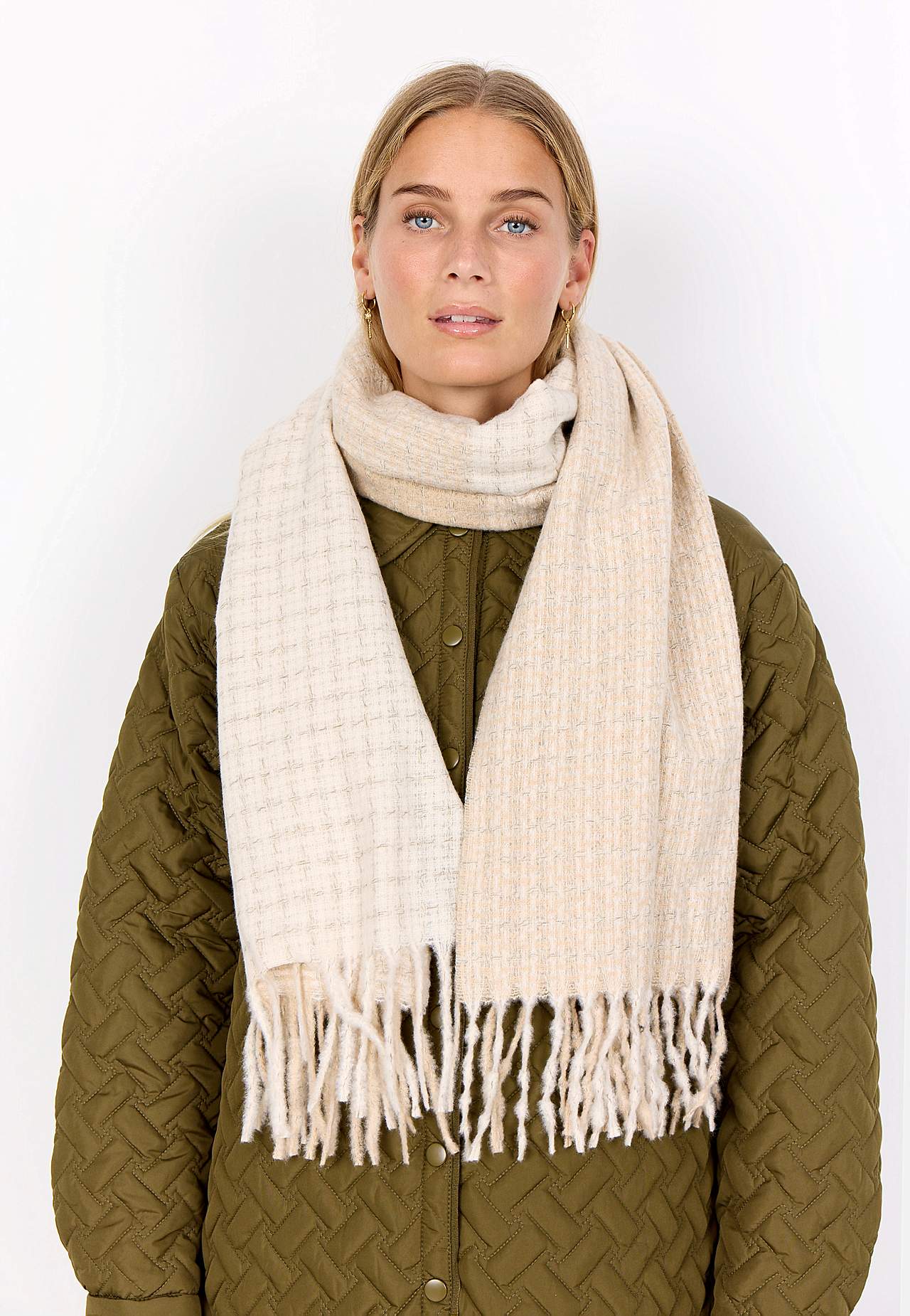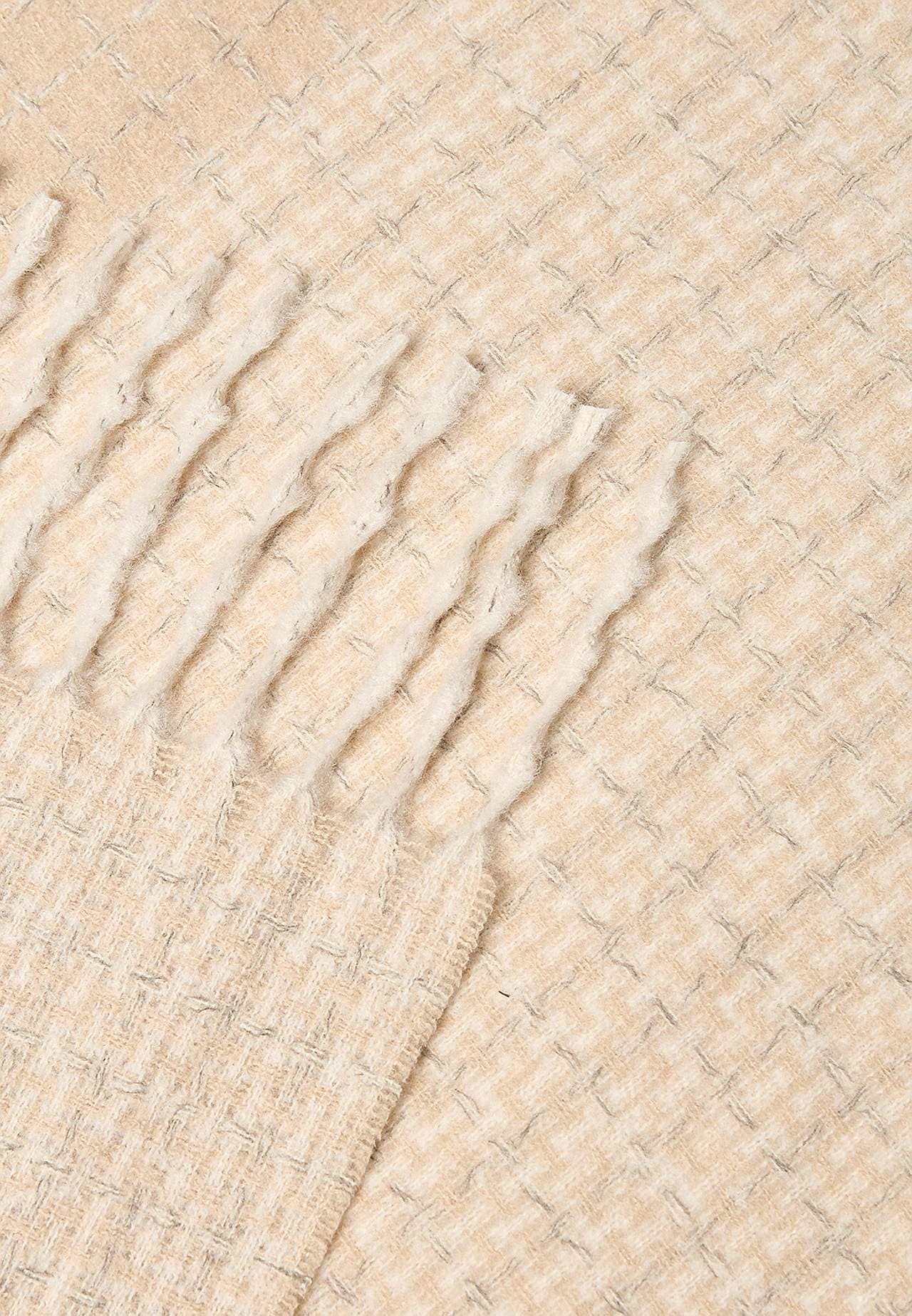 Kootud pehmest materjalist. Ristkülikukujuline. Peene ruudumustriga tekstuurne disain. Lühikestel külgedel ääres narmad.