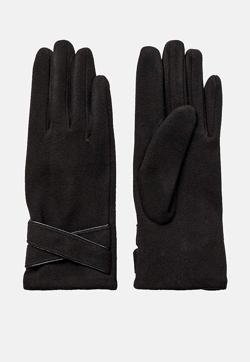 Elegantsed ja stiilse disainiga kindad. Pehmest ja kergelt elastsest materjalist. Sile, mati pinnaga materjal. Dekoratiivsed PU-materjalist paelad. Pehme ja sametine sisemus. Naiste suurus.