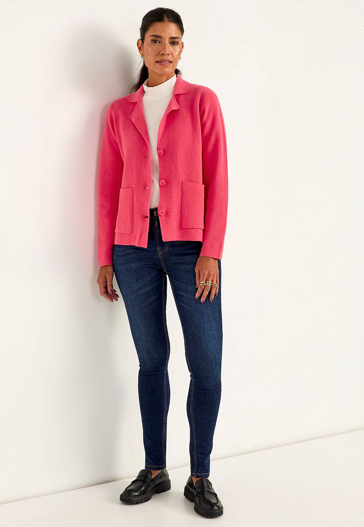 Paksemast pehmest puuvillasest materjalist peenkoes kardigan. Kergelt figuuri järgiv mudel. Puhas ja stiilne disain, mis sobib aastaringselt kandmiseks. Kolm suurt nööpi. Ees taskud. Pikad varrukad. Pikkus õlast vastavalt suurusele: u 61-70 cm.