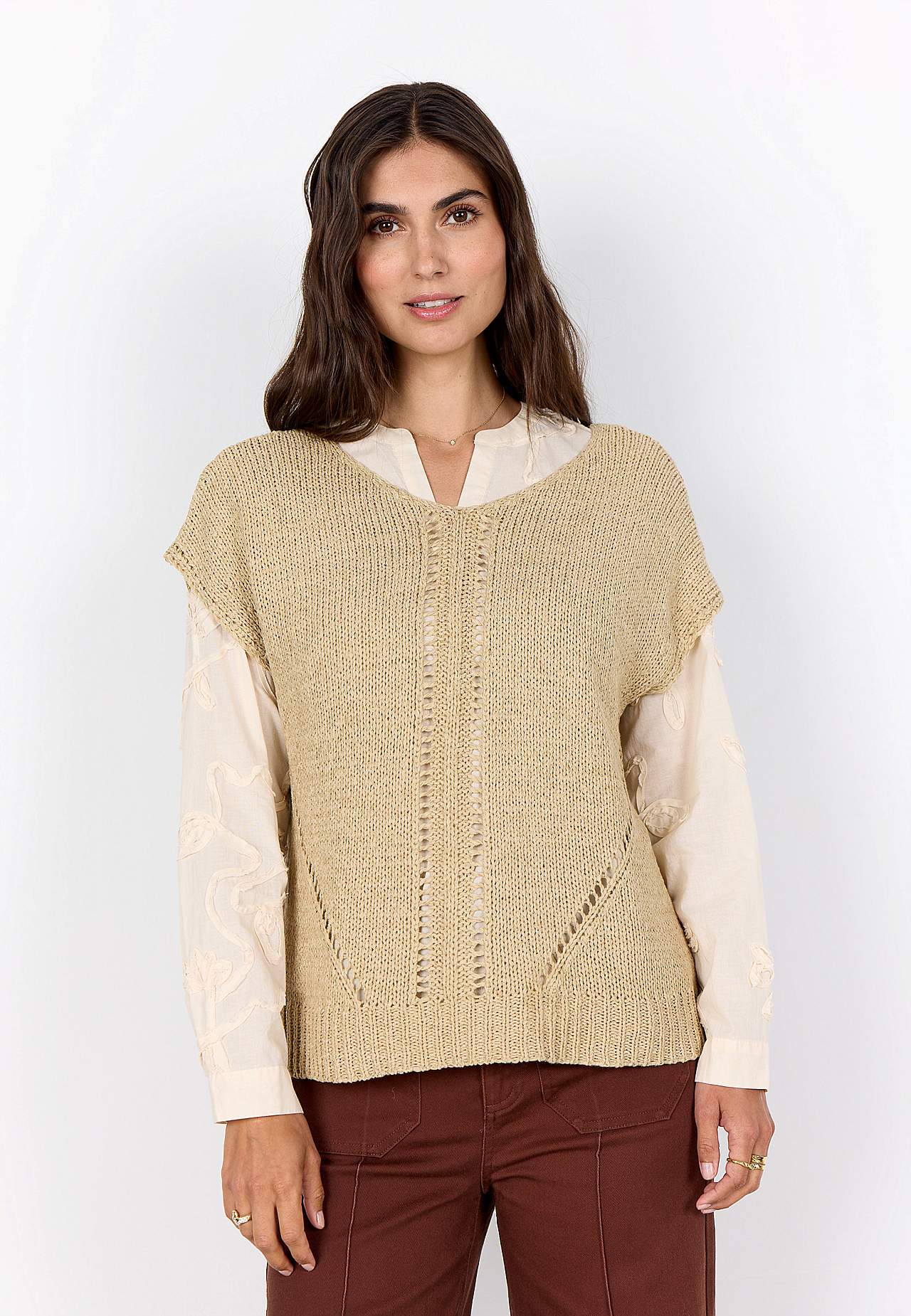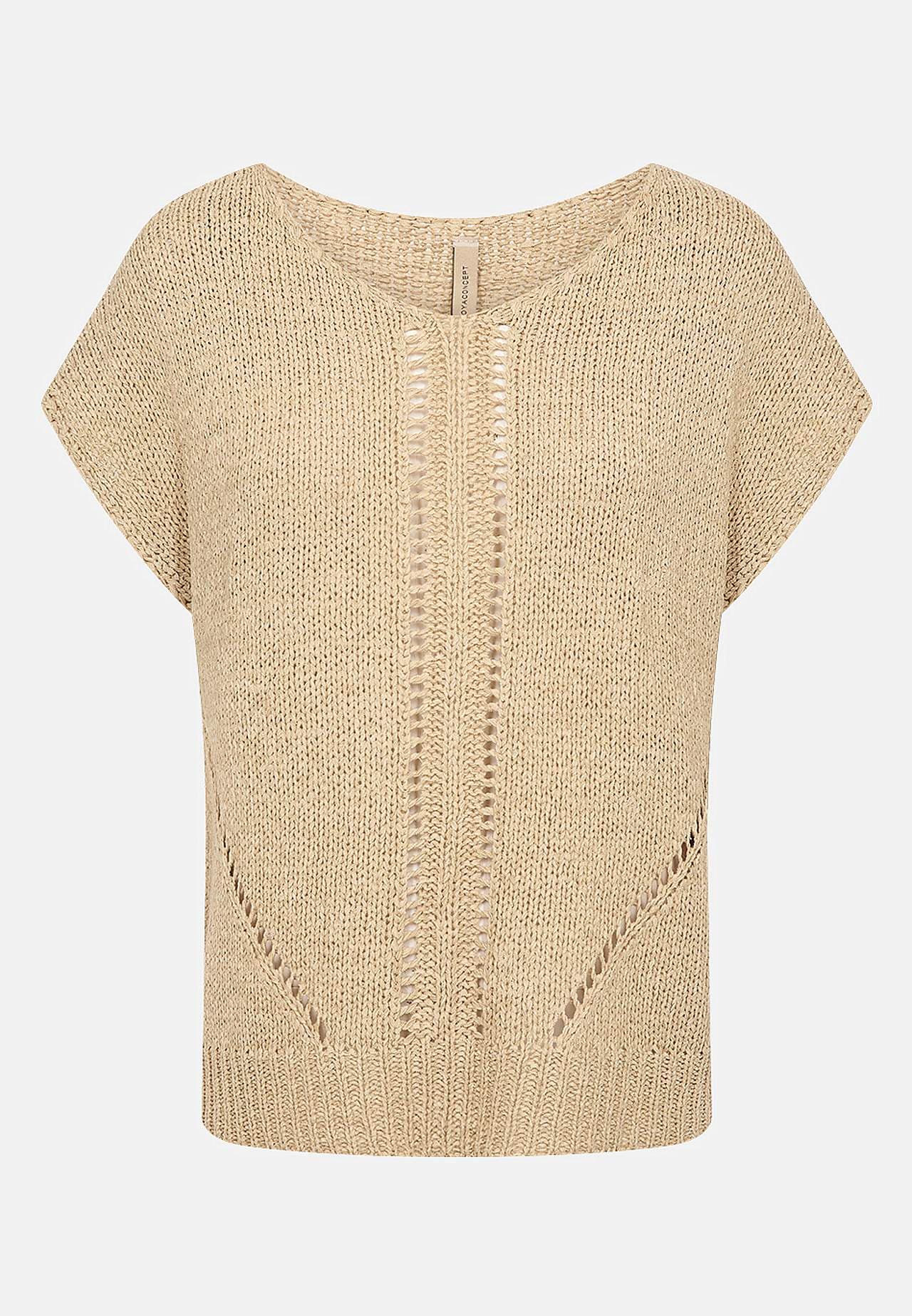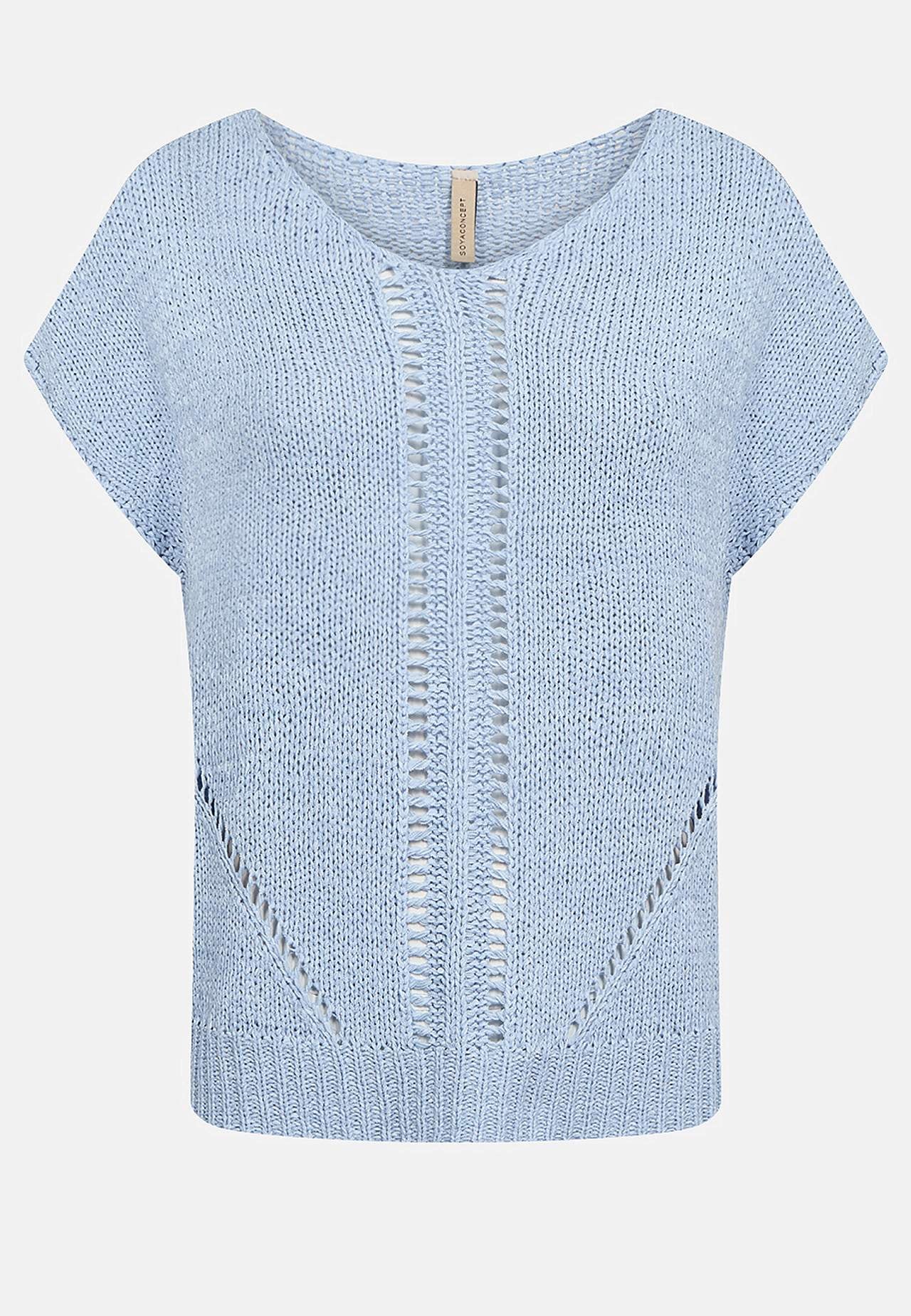 Õhuline ja pehme, eest pitsilise mustriga džemper. Suurepärane kanda topi või särgiku peal. Avaram mudel. Ümar kaelus. Lühikesed varrukad. Sirge soonikkoes alläär. Pikkus õlast u 57 cm suurusel 38/40 (S/M).