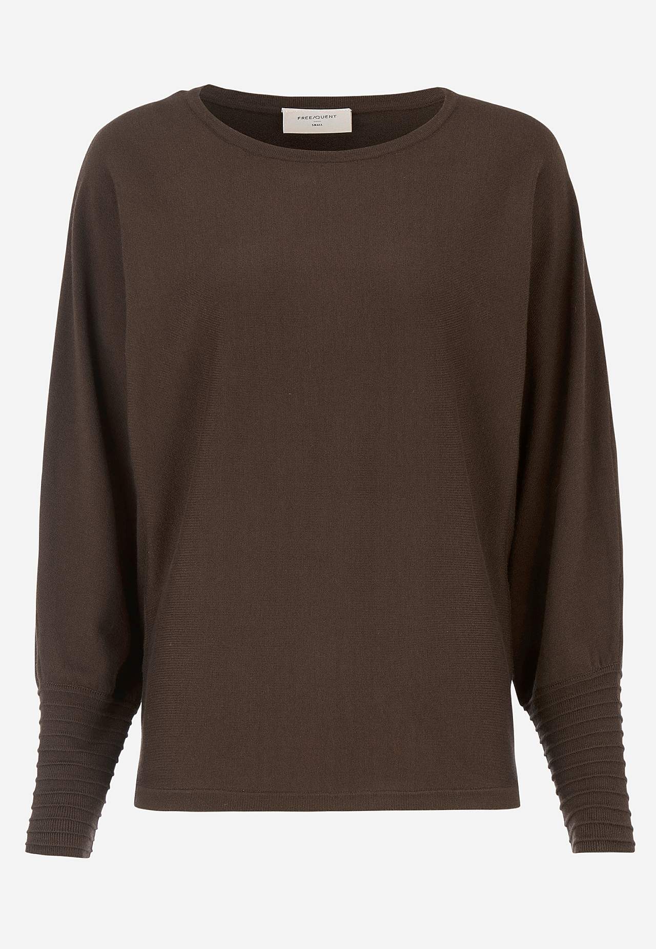 Džemper elegantsete pingviinvarrukate ja dekoratiivsete mansettidega. Peenkoes, pehme ja sile materjal. Avar tegumood. Ümar ja avar kaelus. Pikad pingviinvarrukad dekoratiivse laia mansetiga, millel on kaunid voldid. Kitsama soonikuga sirge alläär. Pikkus õlast u 62 cm suurusel S (38).