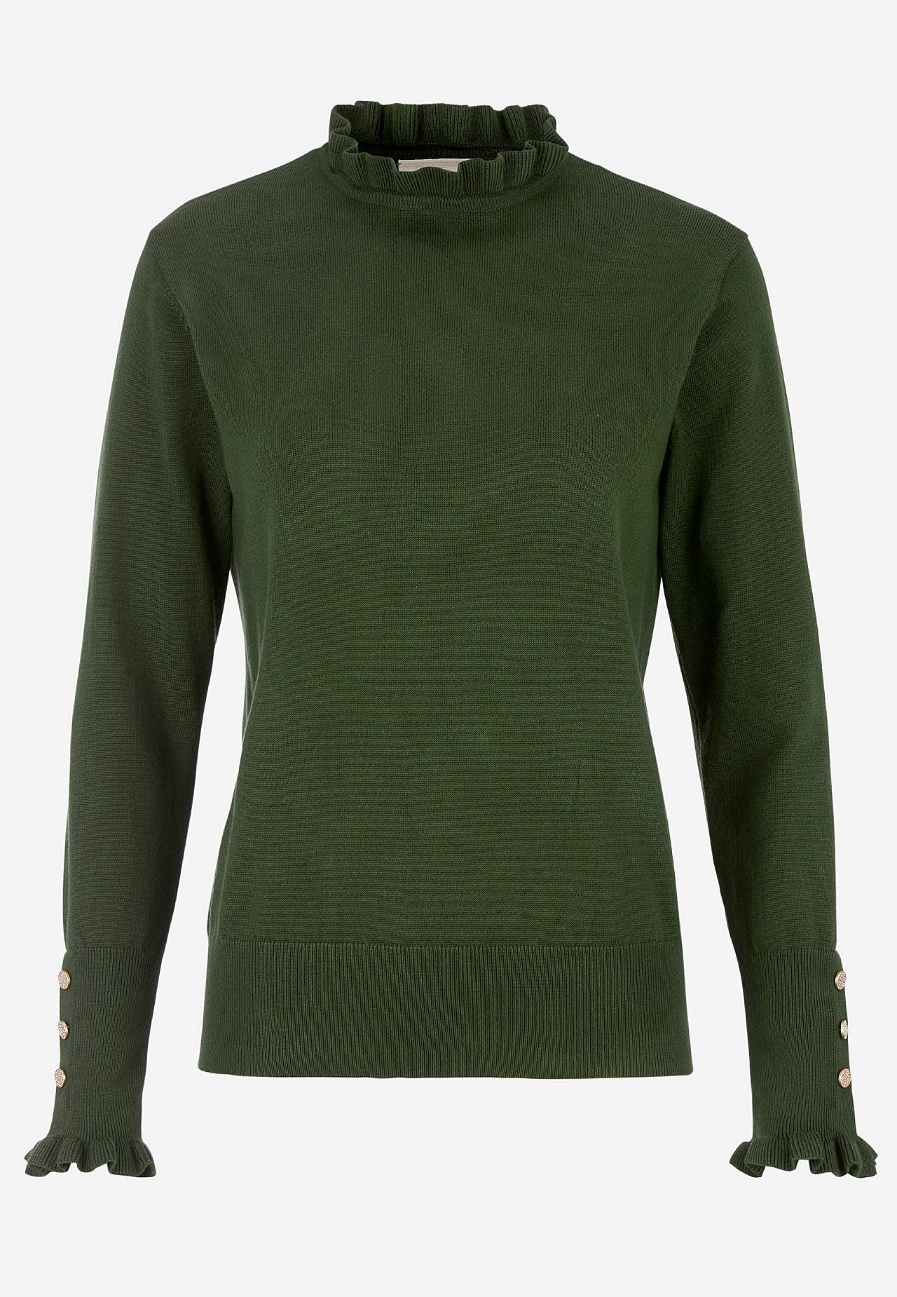 Elegantne pikkade varrukatega džemper. Laiad soonikud nööpidega annavad stiilse aktsendi. Suurepärane igapäevaseks kandmiseks, kui ka pidulikeks sündmusteks. Pehme ja kergelt läikiv materjal. Peenkoes ümar kaelus. Kitsas tegumood. Lainelise sevraga ümar kaelus. Pikkade varrukate otstes kolm dekoratiivset nööpi, laineline al... Loe rohkem