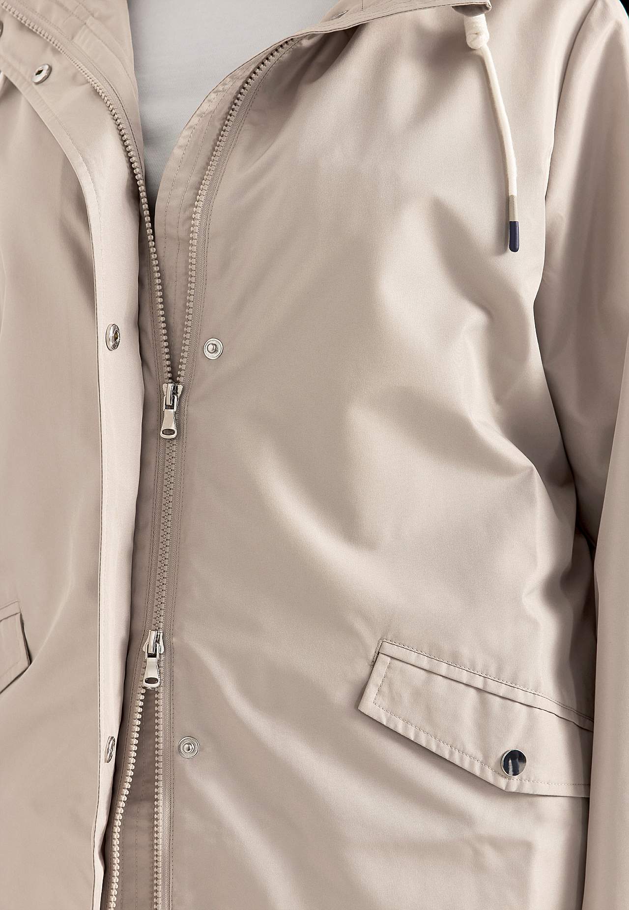 Stiilne jakk. Tavasuurus. Tuule- ja veekindel. Pealismaterjal kergelt läikivast mikropopliinist. Pehmest polüestrist vooder, ülaosas võrgukangast vooder. Eemaldatav kapuuts peidetud tõmblukuga, allakeeratava sirmi ja keerdtetailiga reguleeritava tunnelpaelaga. Ees praktiline, kaitset pakkuva tuuleliistuga kahesuunaline tõmb... Loe rohkem