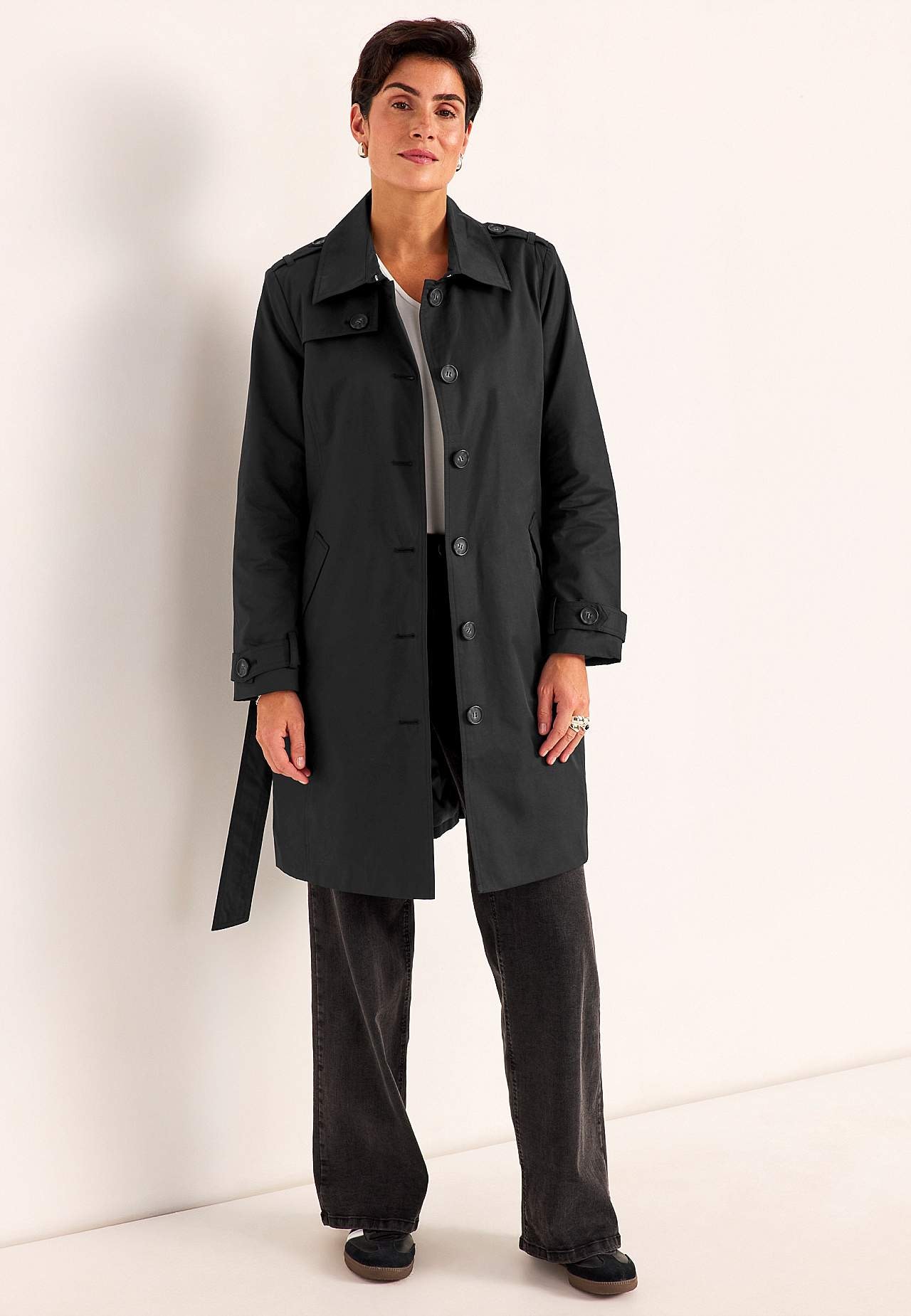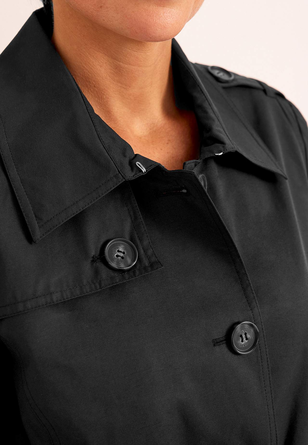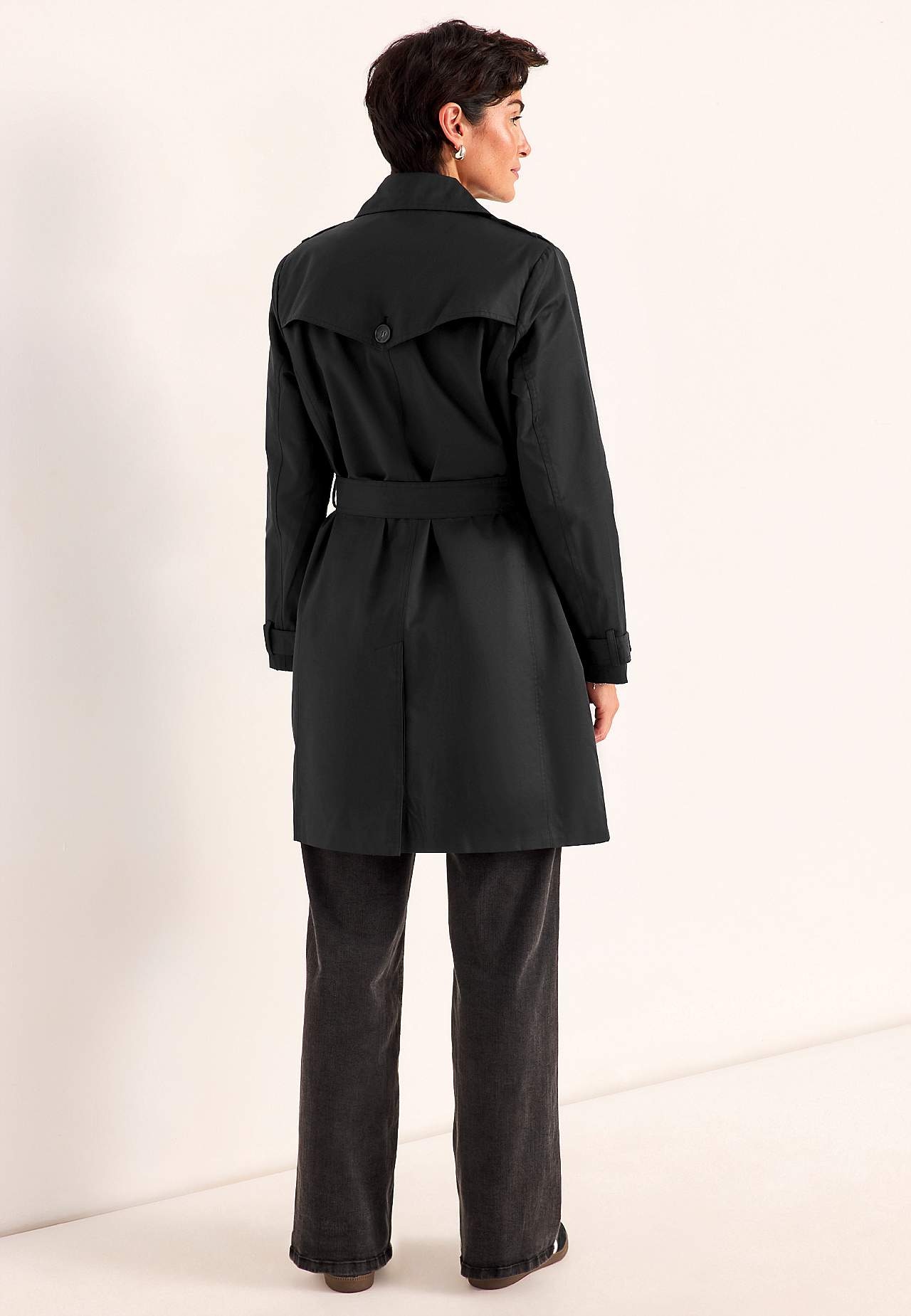 Vett hülgav, täielikult voodriga trentšmantel. Seespool õhukesed õlakud. Küljeõmblustes taskud. Sisetasku. Sirge lõikega alläärel on taga kahe nööbiga lõhik. Pikkus õlast vastavalt suurusele ca 97-111 cm.