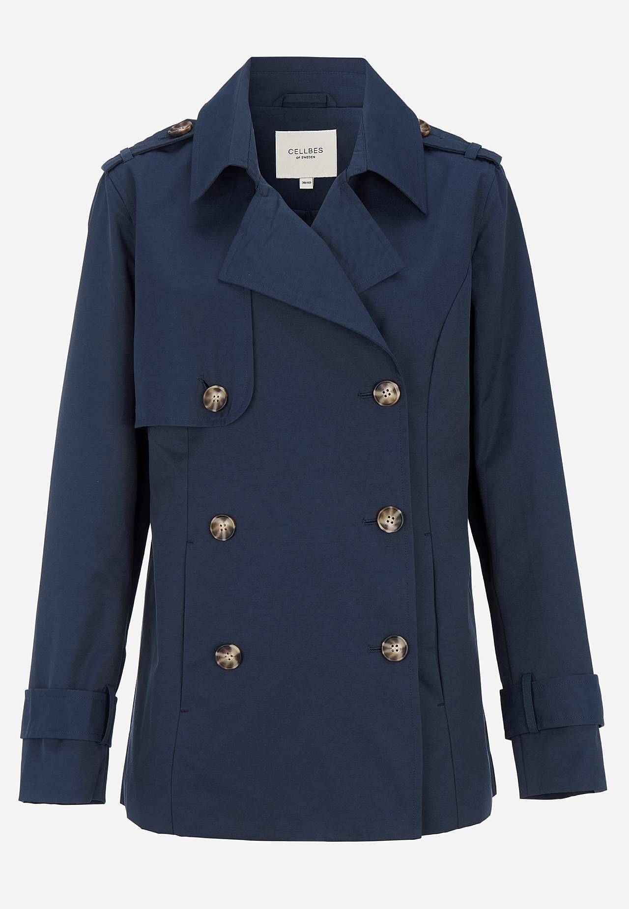 Kahe nööbireaga trentšmantel kraega ja täisvoodriga. Stiilne kevadmantel, sobib ka sügiseks. Seljaosa pikkus vastavalt suurusele: u. 73-85 cm.
