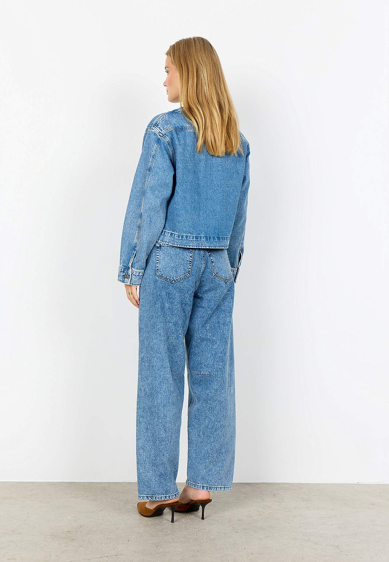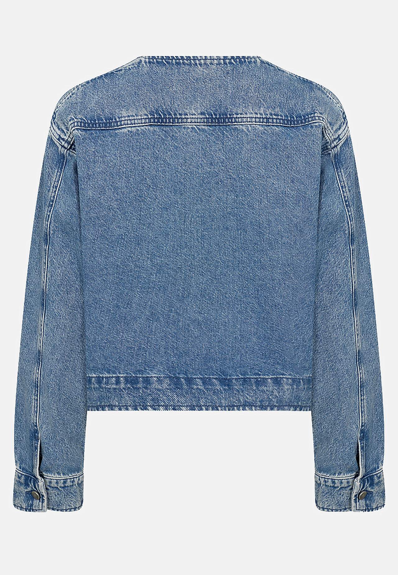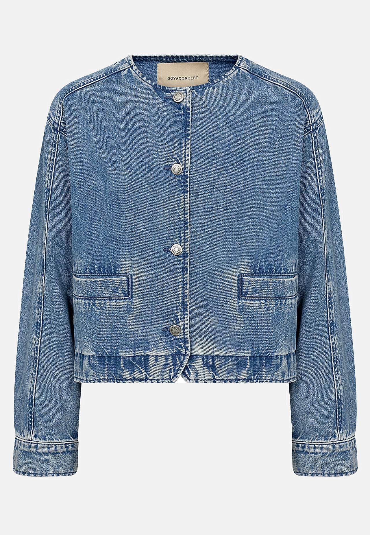 Teksariidest jakk. Sirge avara lõikega. Stiilne kanda kleidi peal. Ümara kaelusega ja ees nööbiliist. Pikendatud õlaosa. Taga passe. Pikkade ja laiade varrukate otstes nööbiga mansetid. Kaks taskut ees. Pikkus õlast u. 53 cm suurusel S (38).