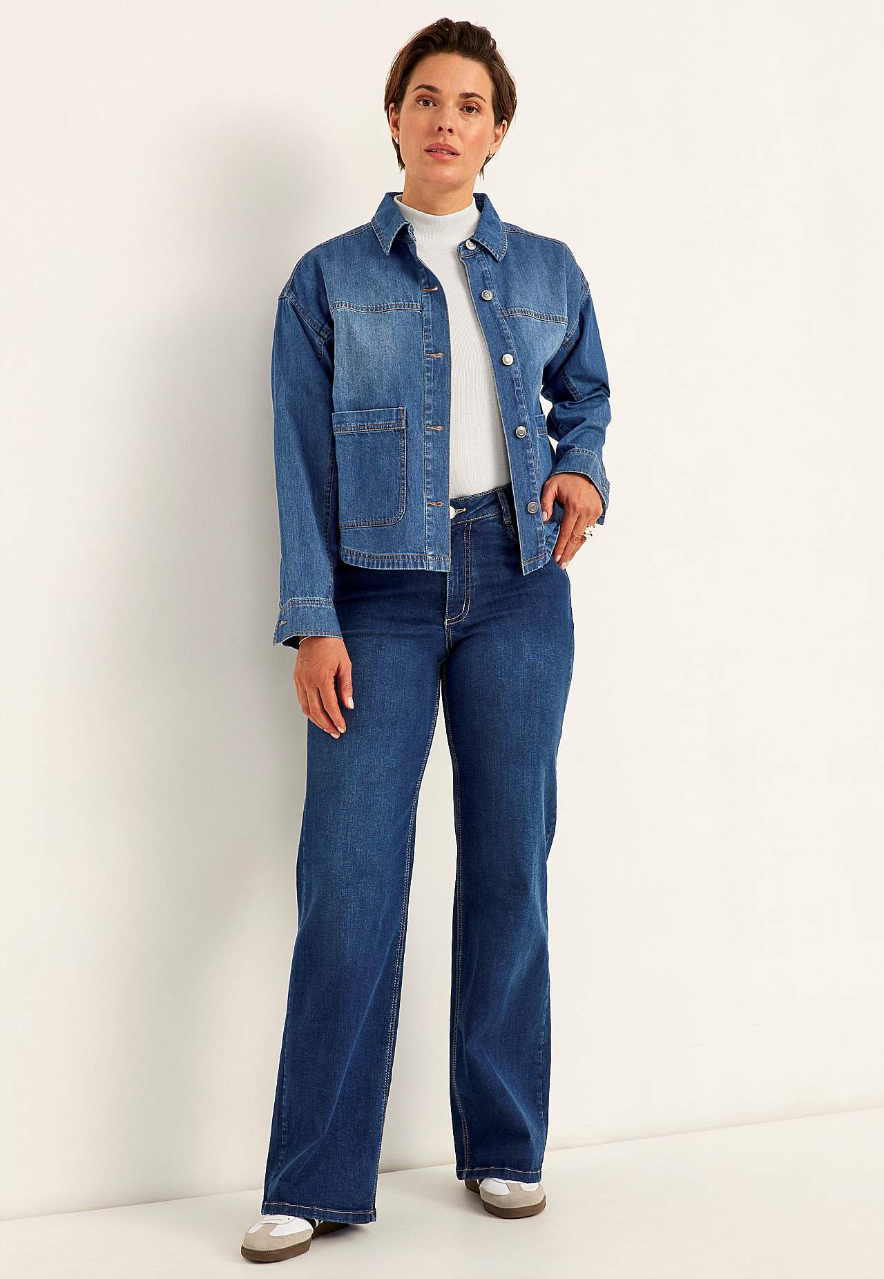 Pehmest, veidi paksemast ja mitteelastsest teksariidest jakk. Veidi avarama lõikega. Nööpidega mudel, klassikalise kraega. Kergelt pikendatud õlaosa. Kitsad dekoratiivõmblused. Tugevdatud passe ees ja taga parema istuvuse tagamiseks. Pikkade varrukate otstes nööbiga mansett. Suured pealeõmmeldud esitaskud. Kaarjas alläär. P... Loe rohkem