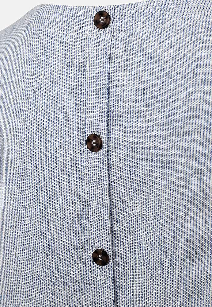 Kleidil on küljel taskud ja taga nööbid. Jahutav viskoosi- ja linasesegune materjal. Avaram tegumood. Sirge lõige. Ümar kaelus. Lühikesed varrukad. Rinna kohal sissevõtted. Külgedel taskud. Sirge alläär. Pikkus õlast u. 95 cm suurusel S (38).