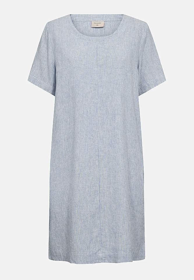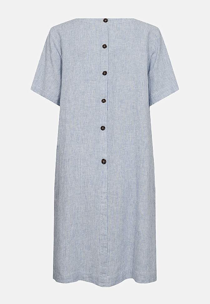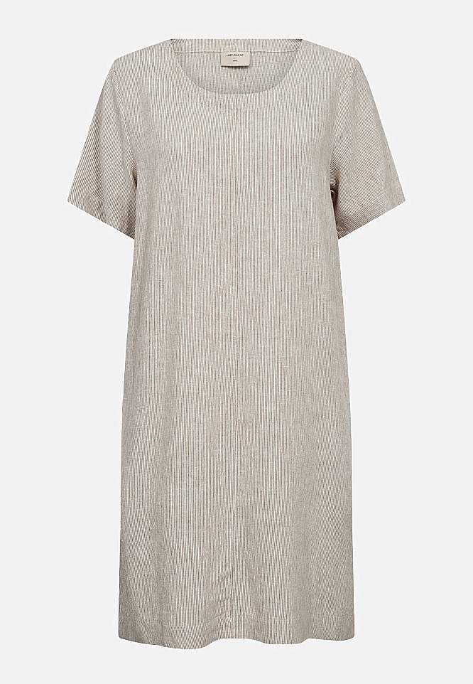 Triibuline linasest kangast kleit taskutega