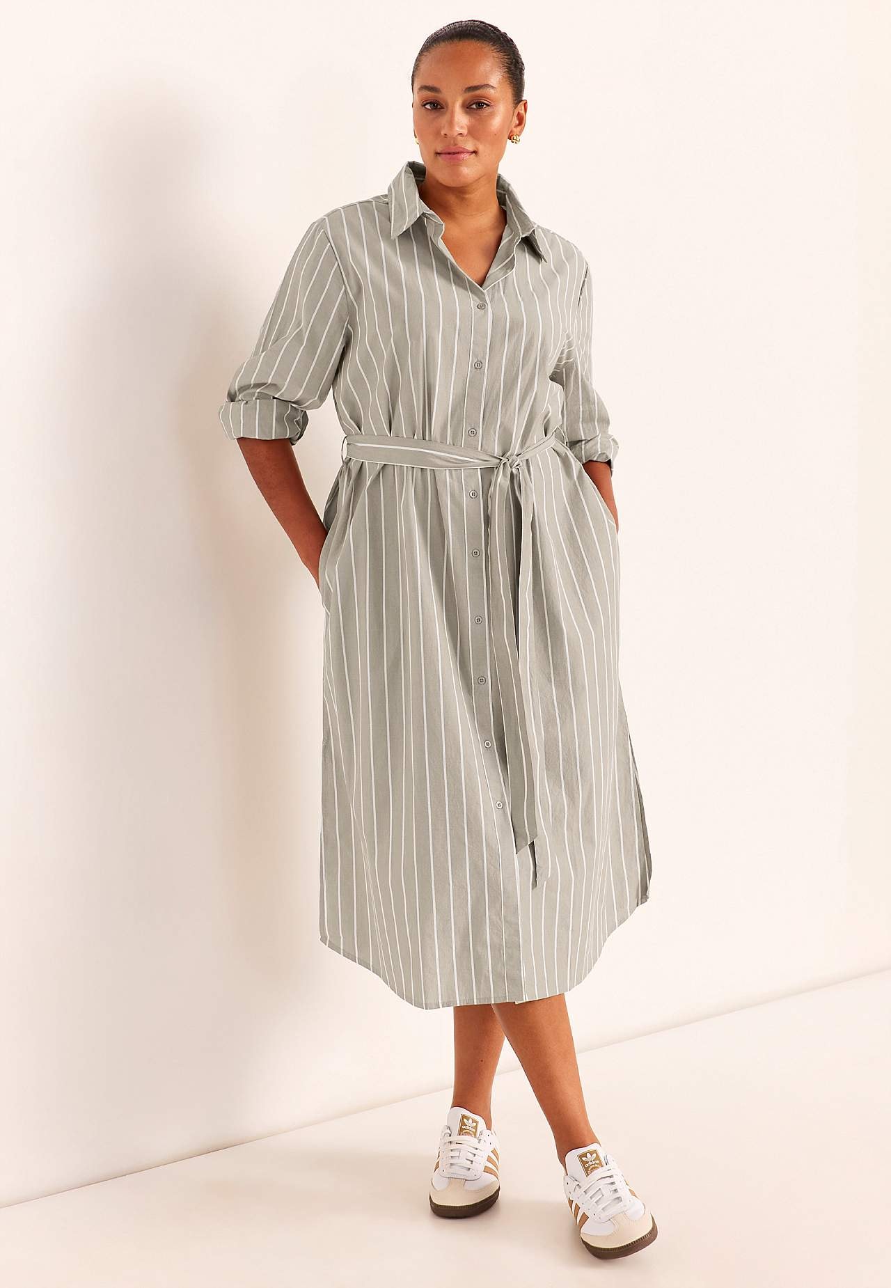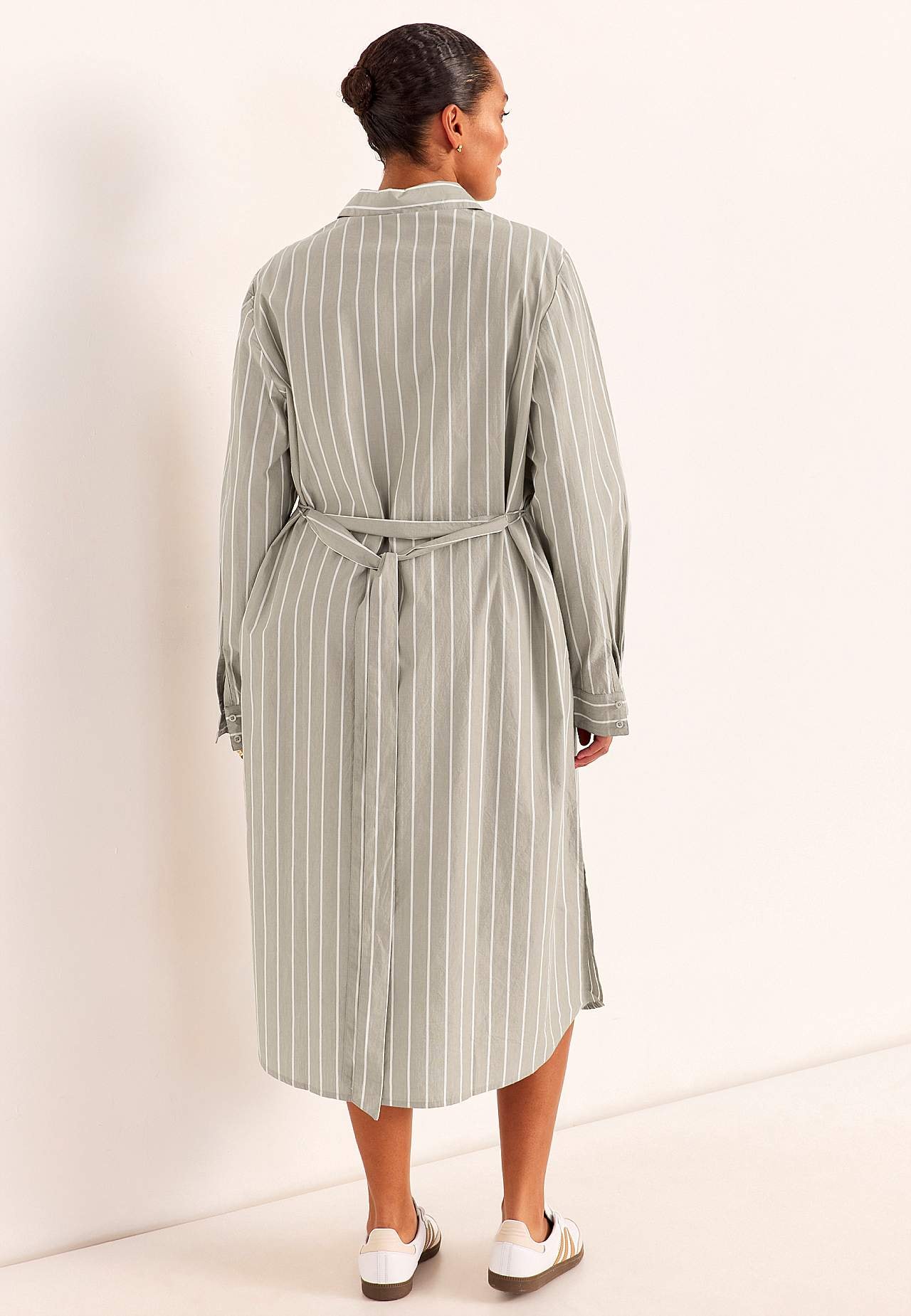 Klassikalise krae ja eemaldatava seosvööga särkkleit. Pehme, karge tekstuuriga materjal. Triibuline. Avarama vabaaja lõikega. Klassikaline krae. Pikk nööbiliist. Pikkade varrukate otstes mansett ja nööp. Eemaldatav seosvöö. Mugav kanda nii vööga kui ka ilma. Küljeõmbluses taskud. Kaarjas alläär, külgedel lõhikud. Seljapikku... Loe rohkem