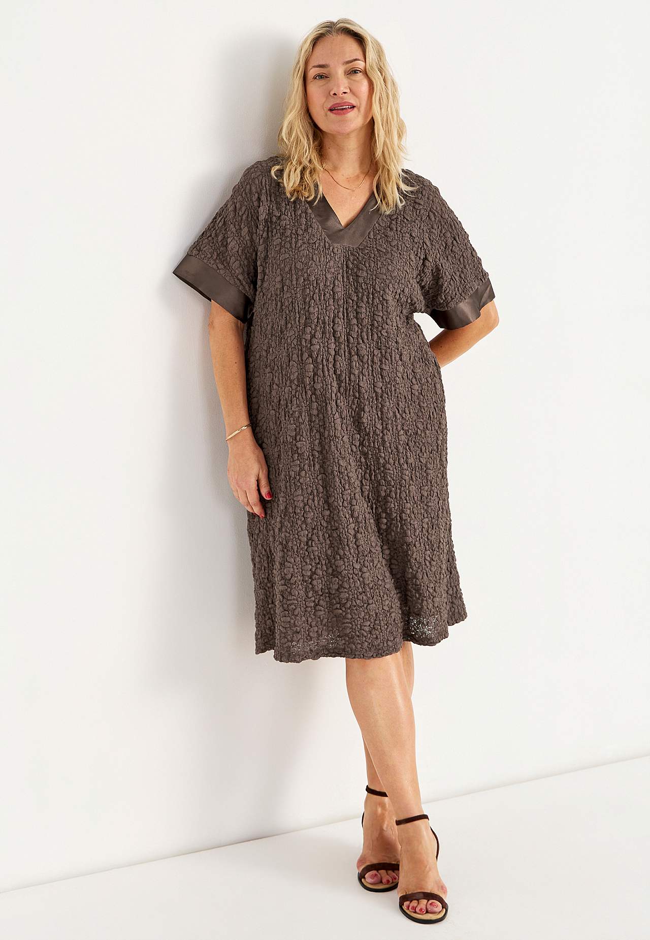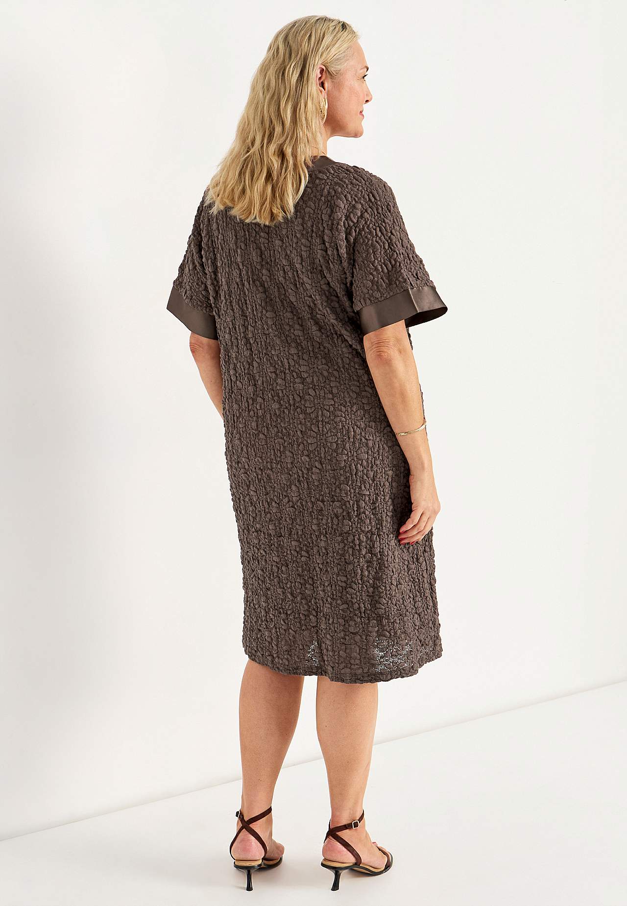 Voodriga, kaunist ja elastsest pitsilisest trikotaažist pidulik kleit. Elegantne satiinist ääris kaelusel ja varrukamansettidel. Pehme ja elastne trikotaažvooder. Kergelt A-lõikeline, alt veidi laieneva ja veidi kitsama ülaosaga. V-kaelus satiinist äärisega. Laiad, satiinist mansettidega voodrita kaftanvarrukad. Sirge allää... Loe rohkem