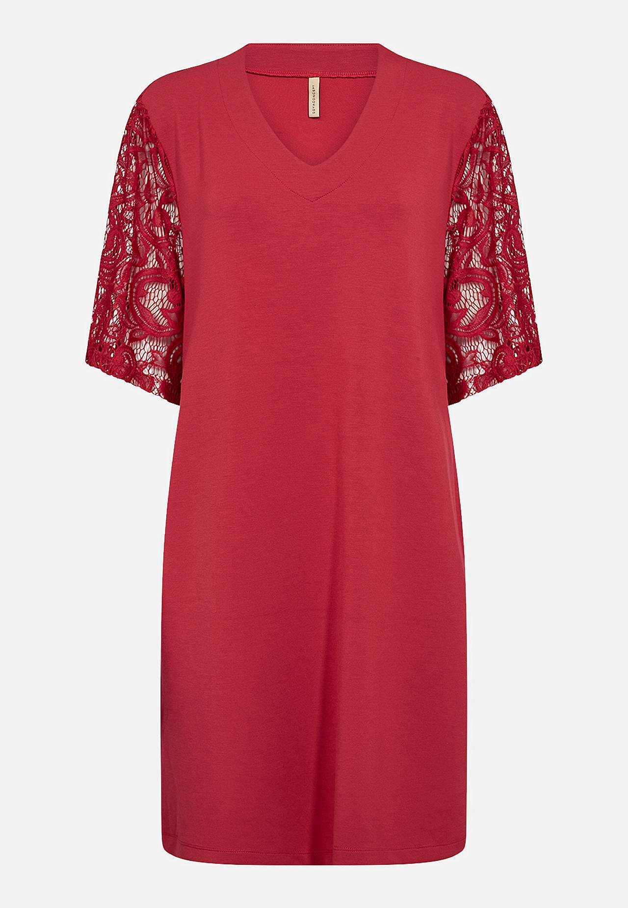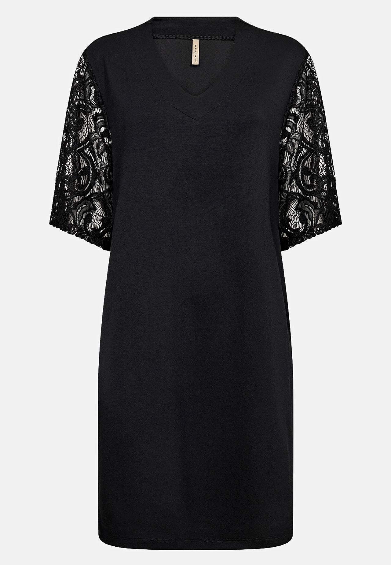 Veidi paksemast modaalisegusest trikotaažist kleit. Sirge lõige. Lühike mudel. V-kaelus. Külgedel taskud. Elegantsed pitsist varrukad. Kolmveerandpikkuses varrukad. Sirge alläär. Pikkus õlast u. 98 cm suurusel S (38).