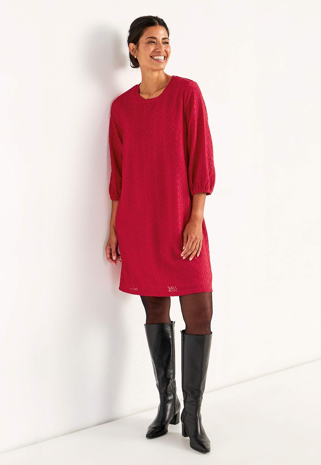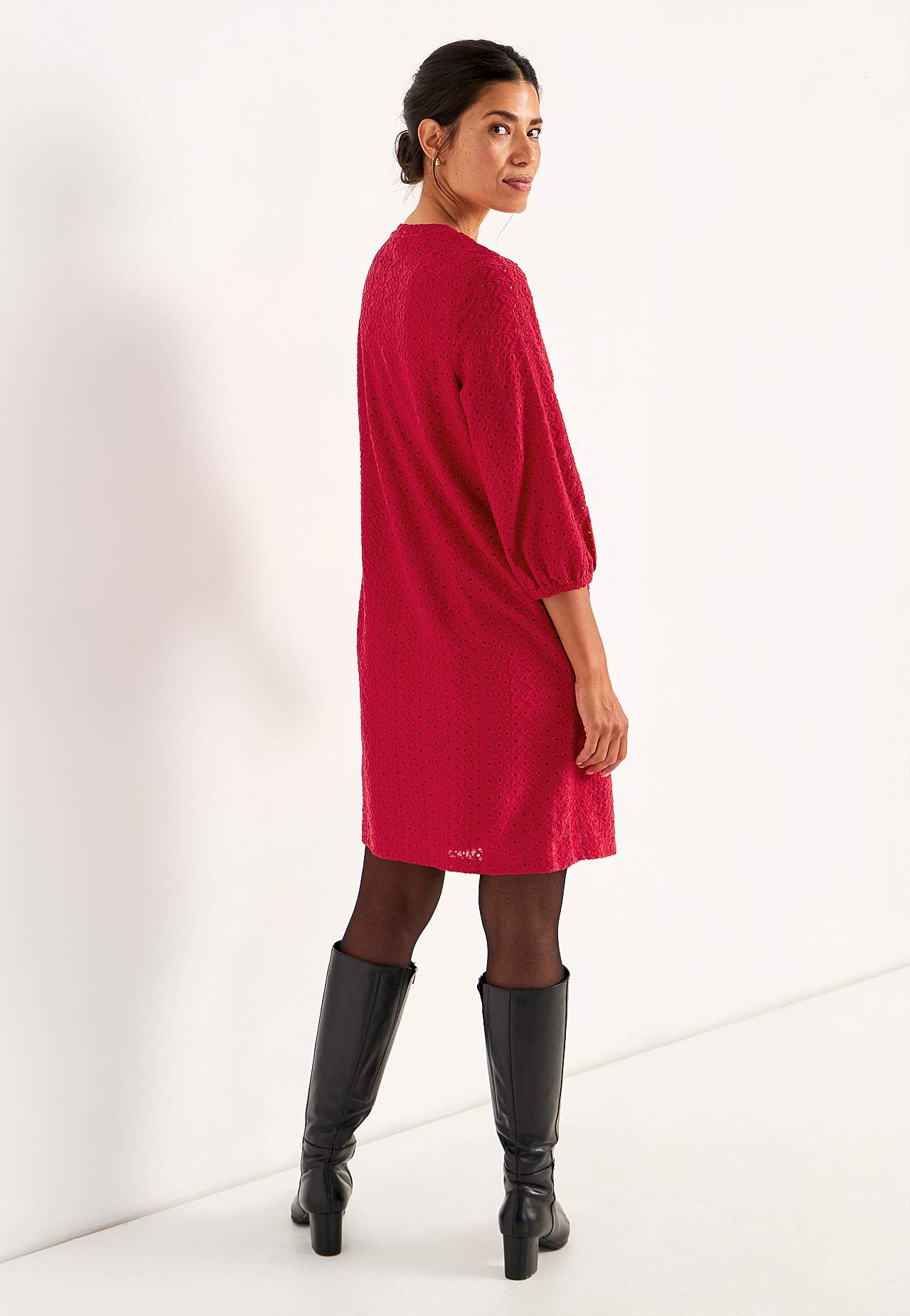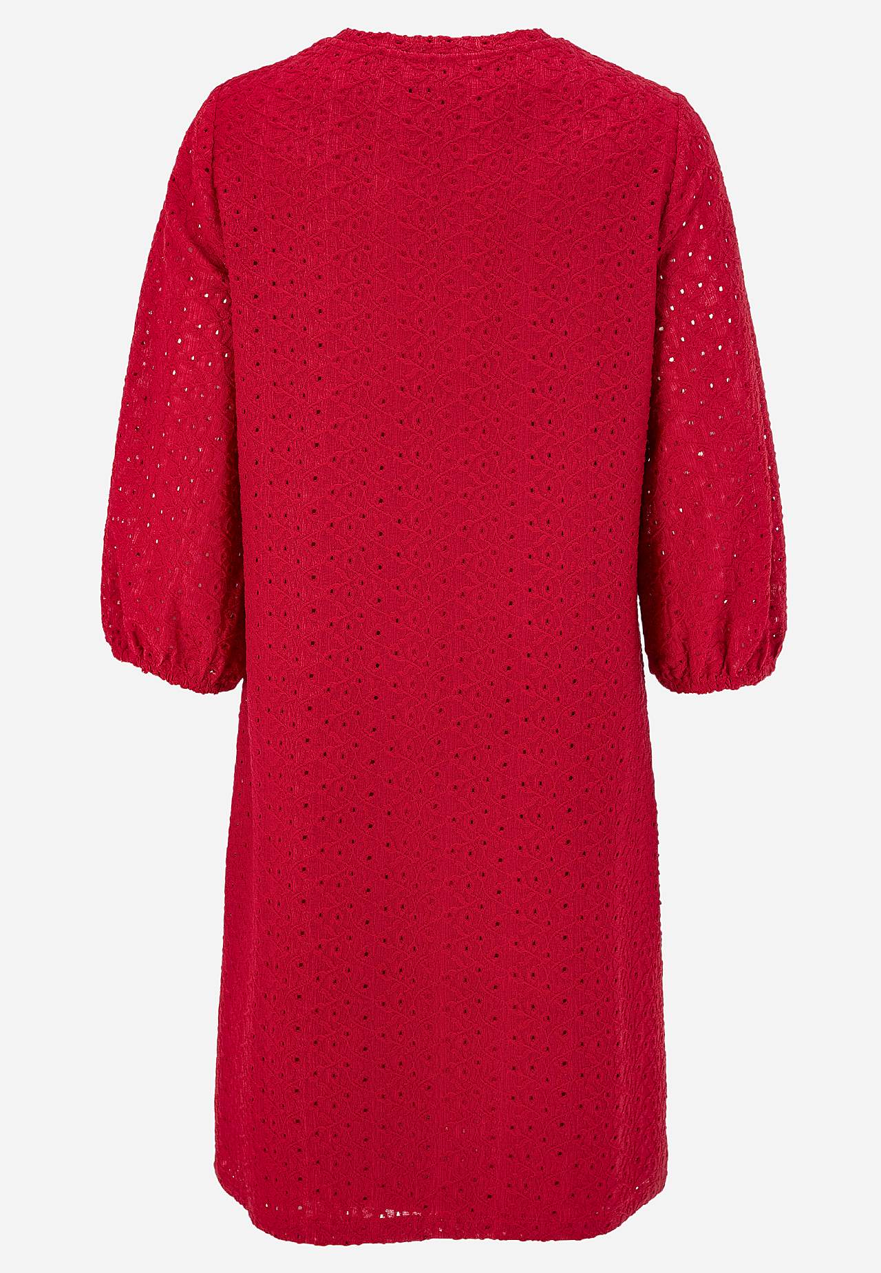 Kauni pitsmustriga kleit. Kergelt A-lõikeline. Ümar kaelus. Kolmveerandpikkuses puhvvarrukate otstes kummipael. Külgeõmmeldud elastne vooder. Sirge alläär. Pikkus õlast vastavalt suurusele umbes 95-107 cm.