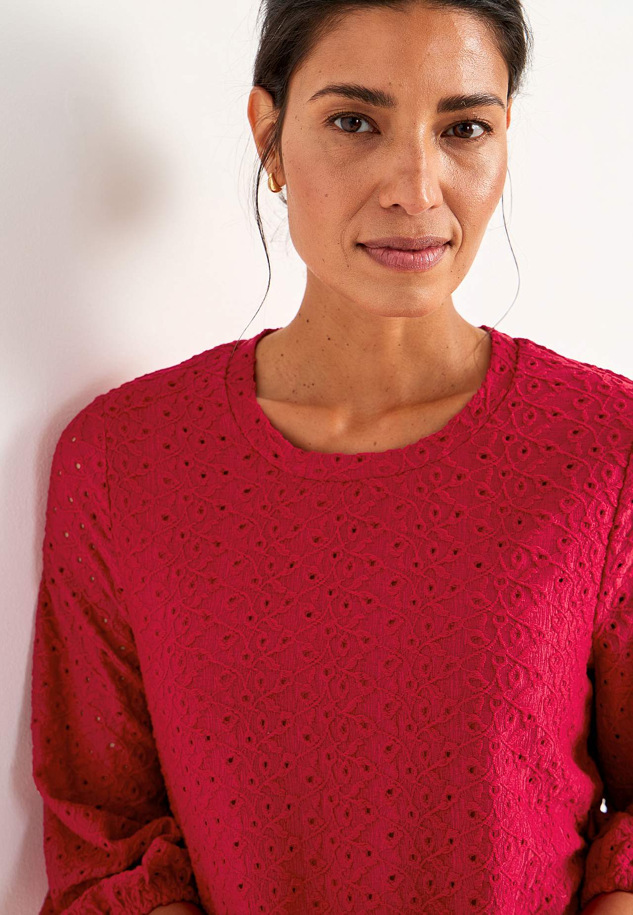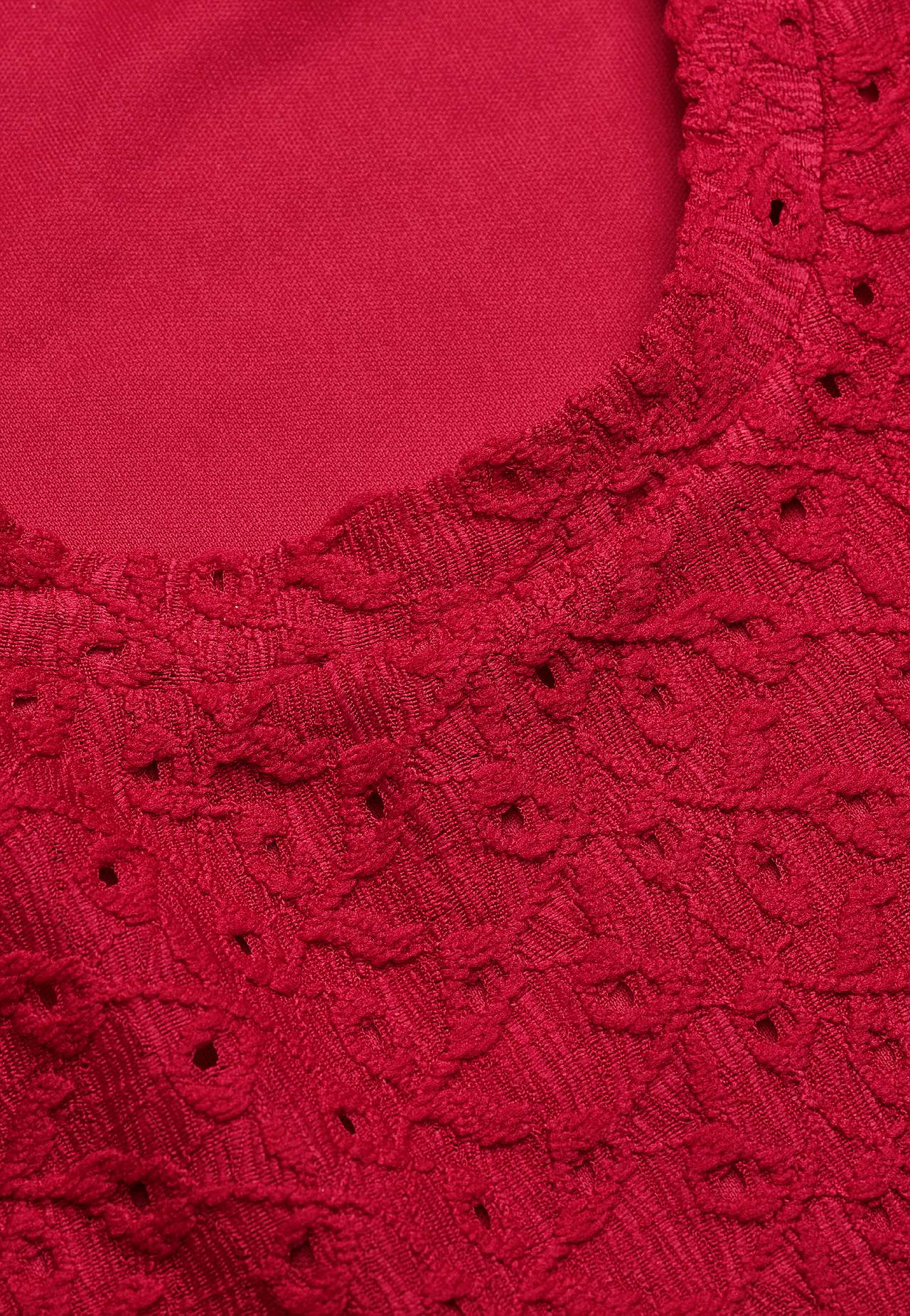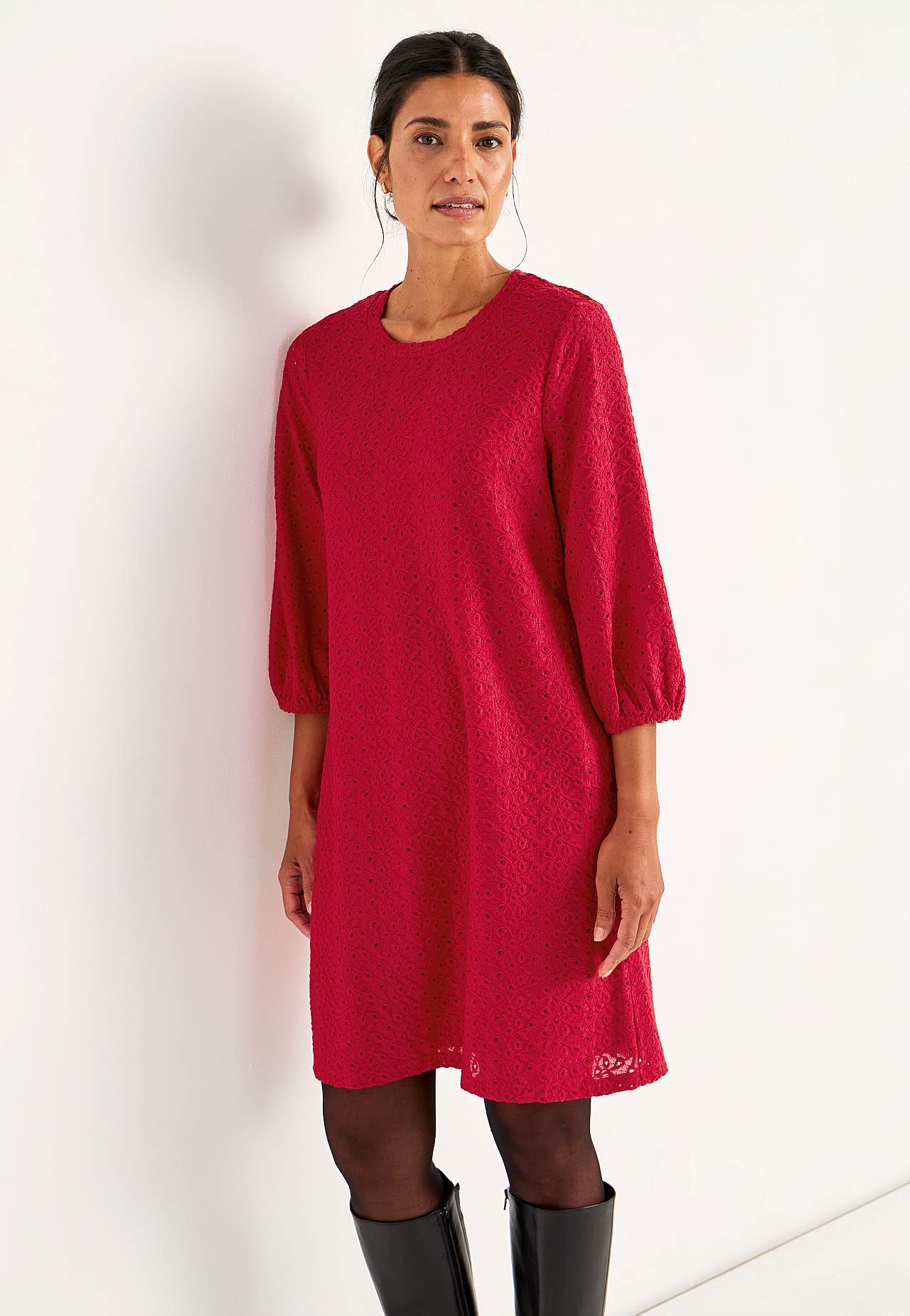Kauni pitsmustriga kleit. Kergelt A-lõikeline. Ümar kaelus. Kolmveerandpikkuses puhvvarrukate otstes kummipael. Külgeõmmeldud elastne vooder. Sirge alläär. Pikkus õlast vastavalt suurusele umbes 95-107 cm.