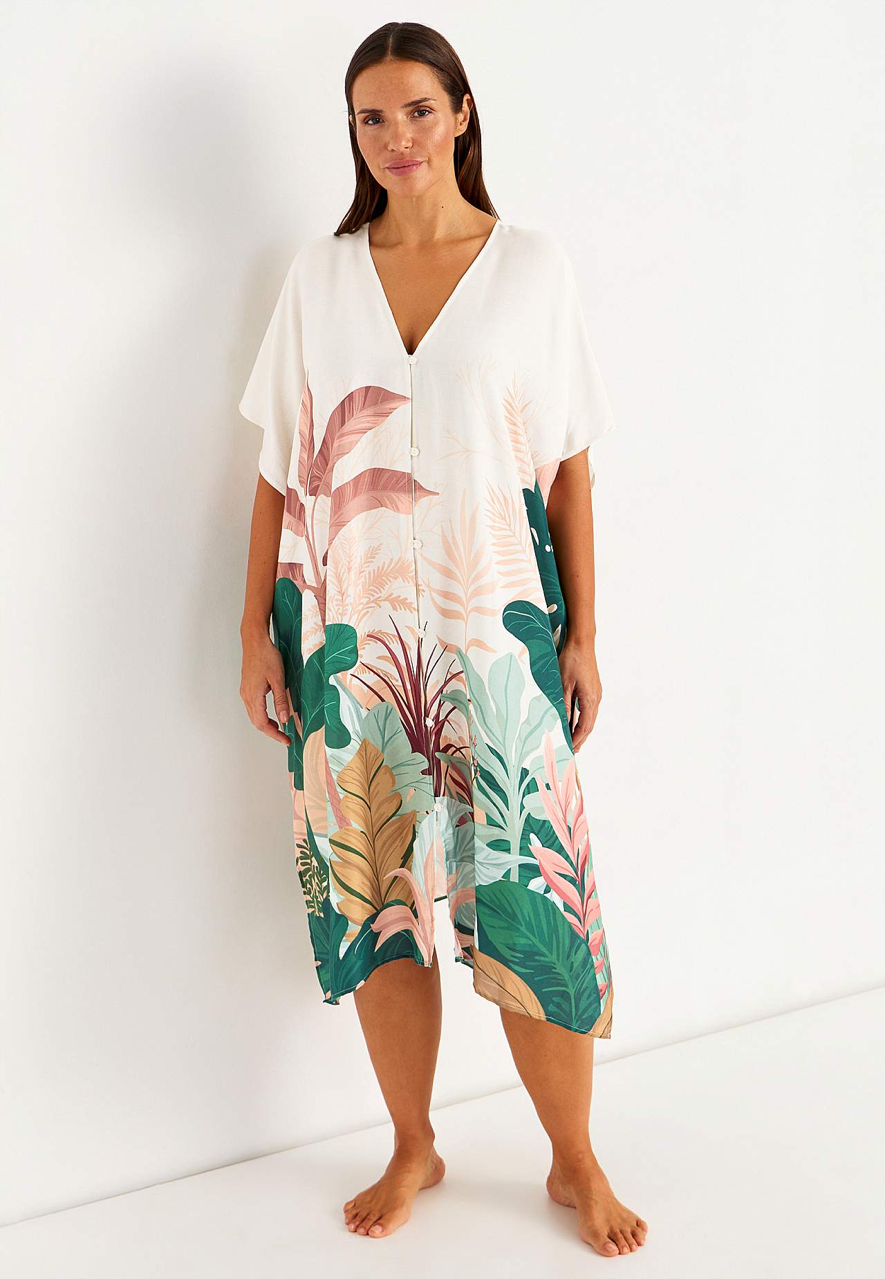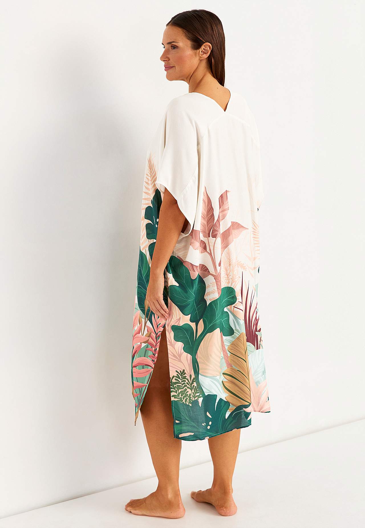Mõnusalt kerge ja pehme kaftan. Kauni langevusega, avar tegumood. Küljelõhikud. Pikkus õlast kõikidel suurustel umbes 115 cm.