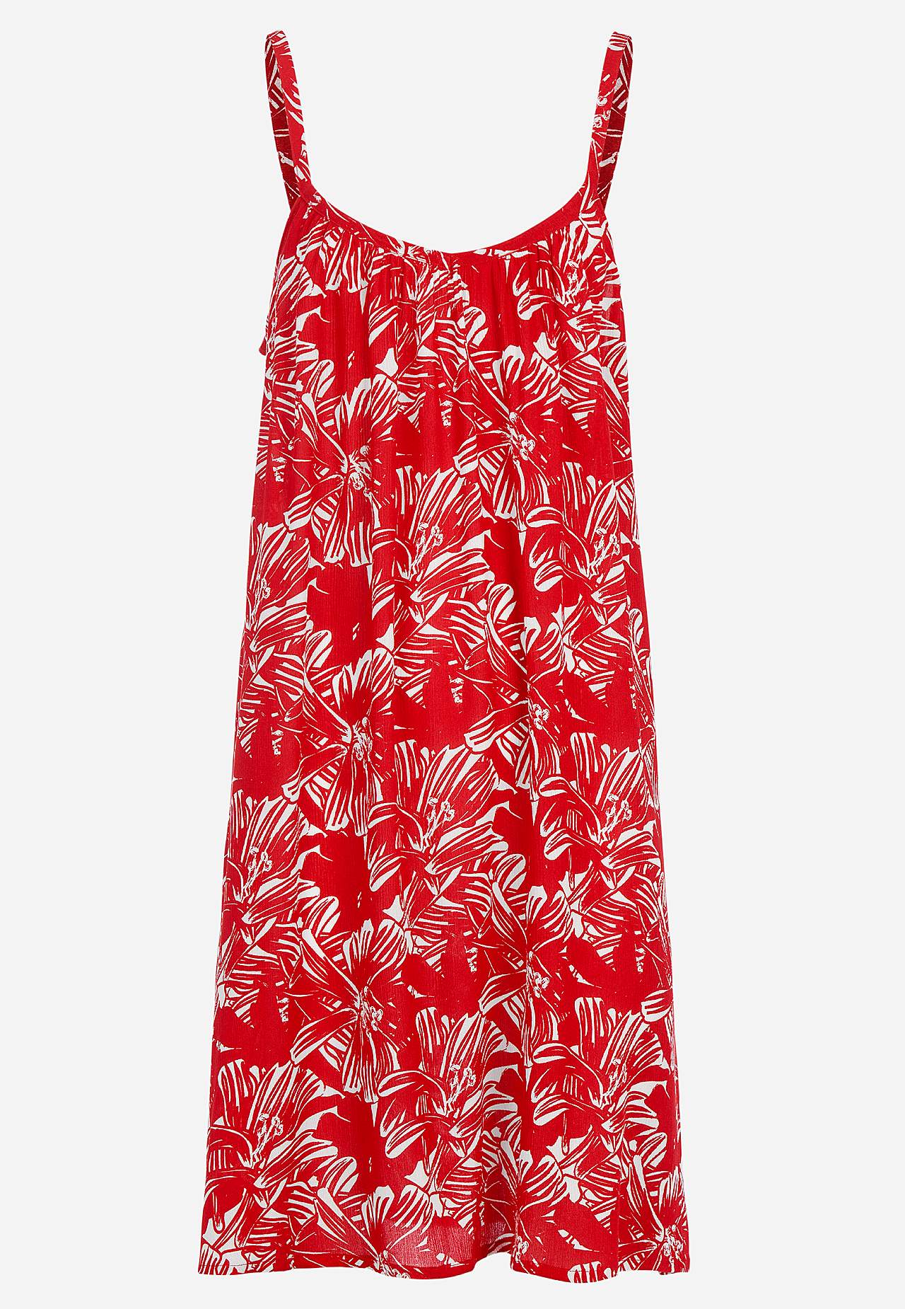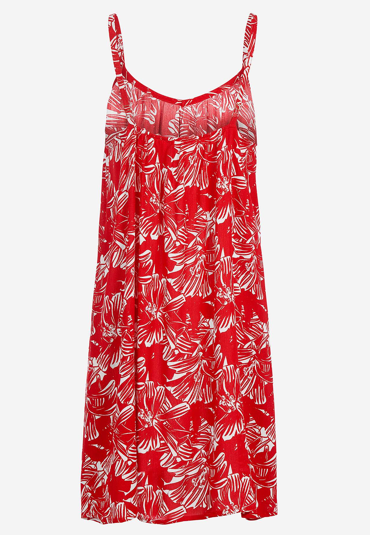 Õlapaeltega, viskooskreppkangast kleit. Õhuline ja pehme materjal. Mõnus, avar A-lõikeline. Reguleeritavad õlapaelad. Kergelt kaarjas alläär. Seljapikkus vastavalt suurusele u 69-76 cm.