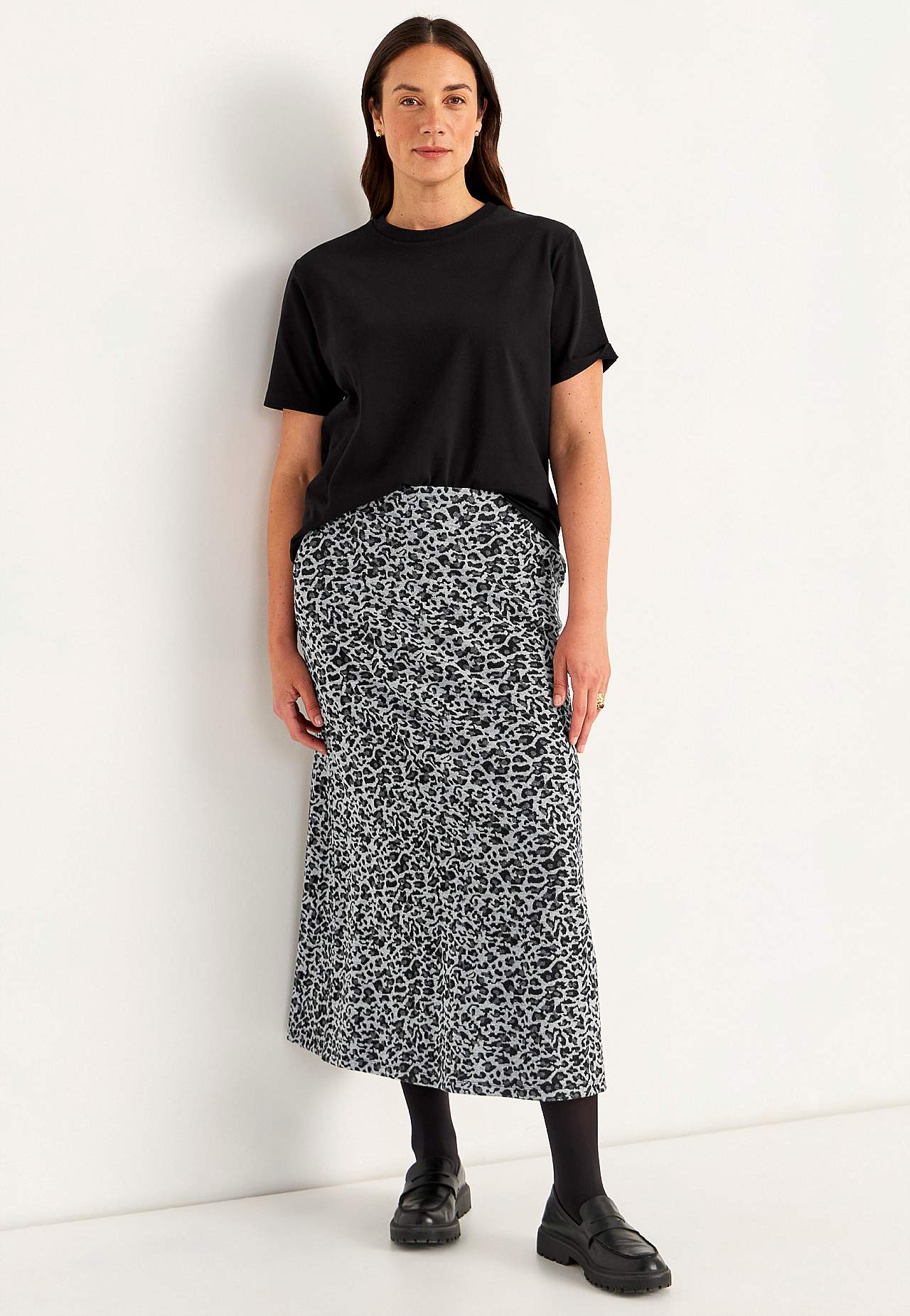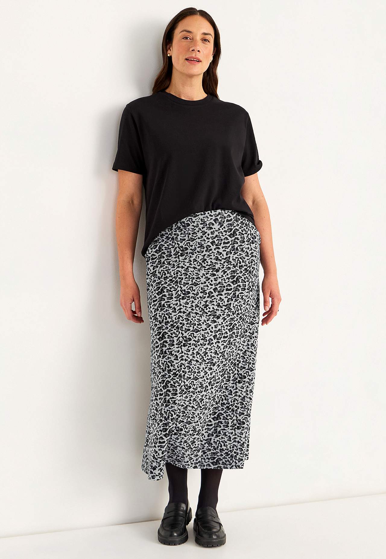 Pehme pinnaga elastsest trikotaažist pikk seelik. A-lõikeline. Laia mugava kummiga vöökoht. Külgedel viltused taskud. Pikkus: 89 cm.