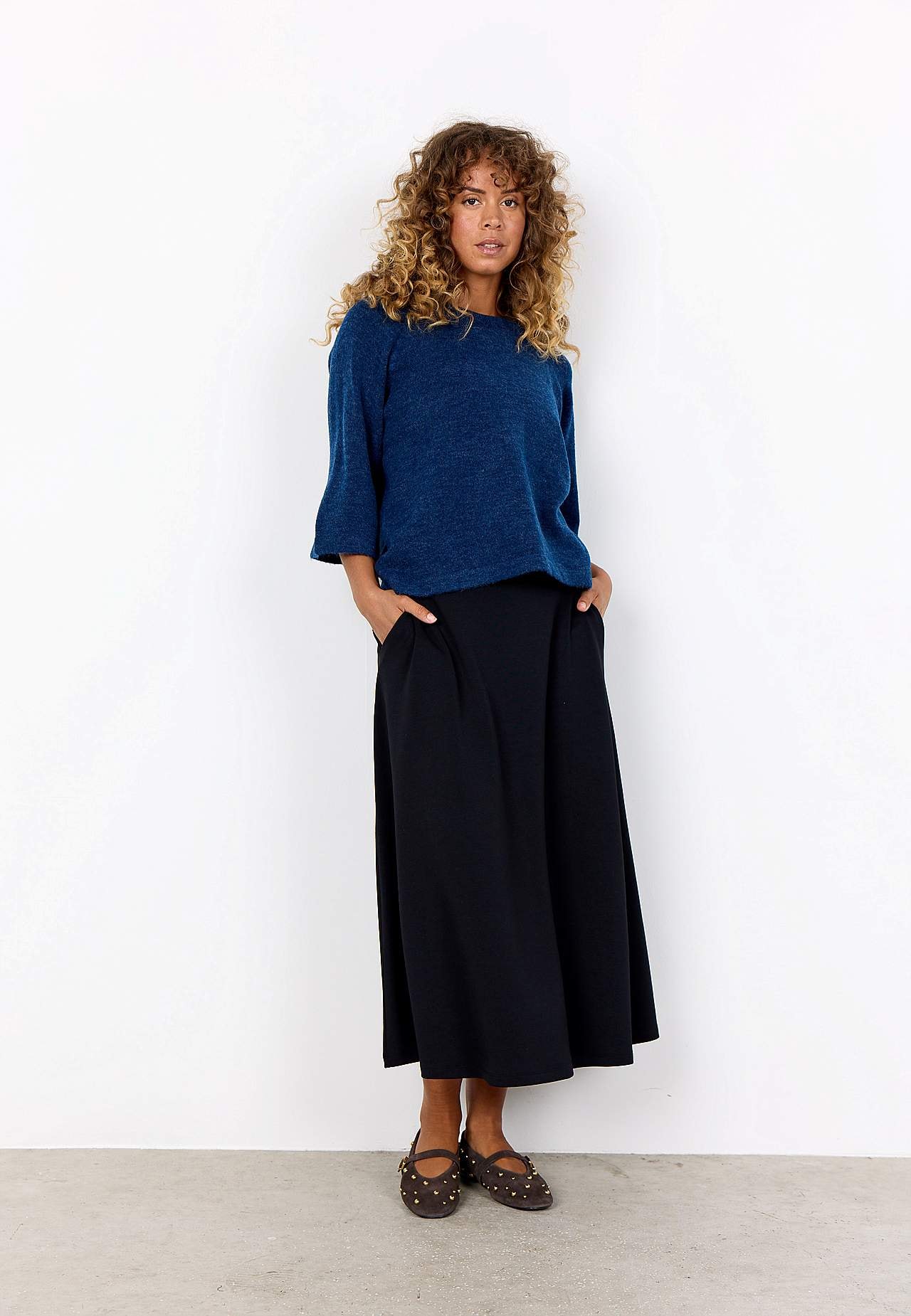 Pehmest ja mõnusast veidi paksemast modaalisegusest trikotaažkangast seelik. A-lõikeline mudel. Taga kummivärvel. Küljetaskud. Sirge alläär. Pikkus ca 85 cm suurusel S (38).