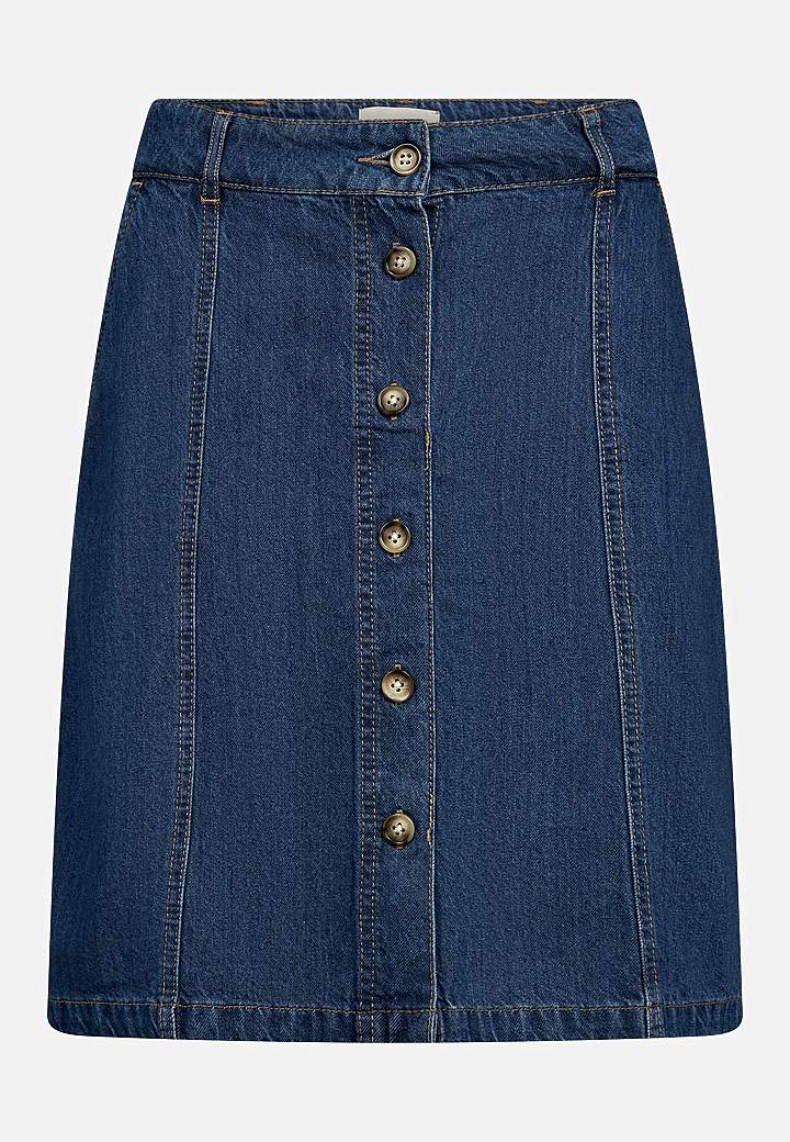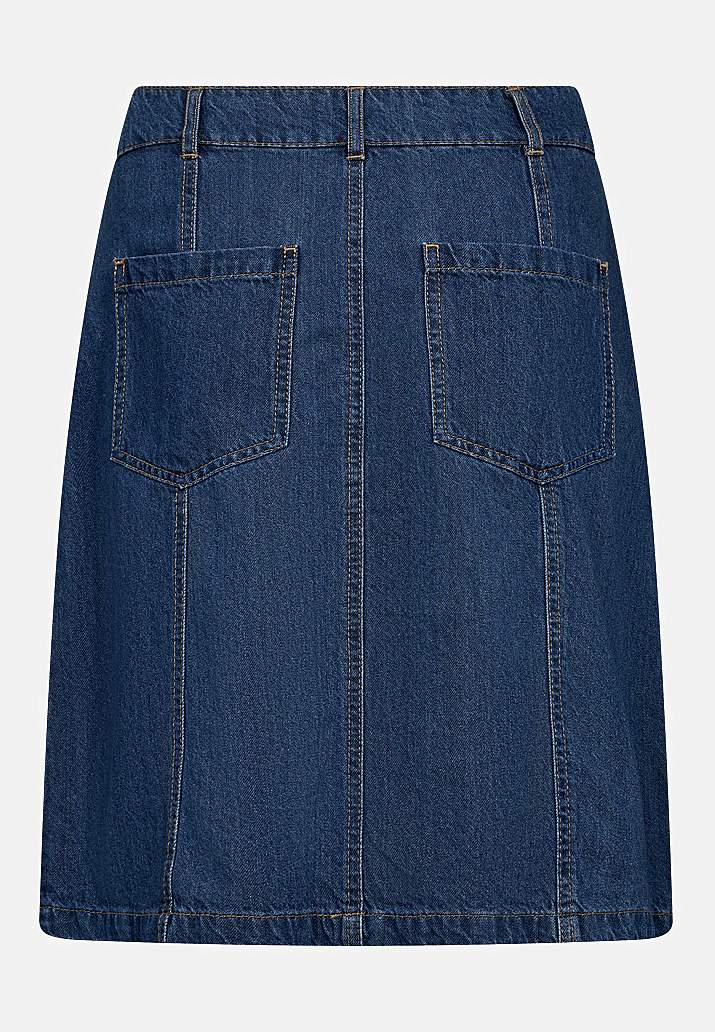 Sirge tegumood. Pehme teksakangas, mitteveniv. Värvlil vööaasad ja nööp. Viltused esitaskud. Taga pealeõmmeldud taskud. Dekoratiivsed õmblused ees ja taga. Sirge alläär. Pikkus keskelt suurusel M (40) u. 51 cm.