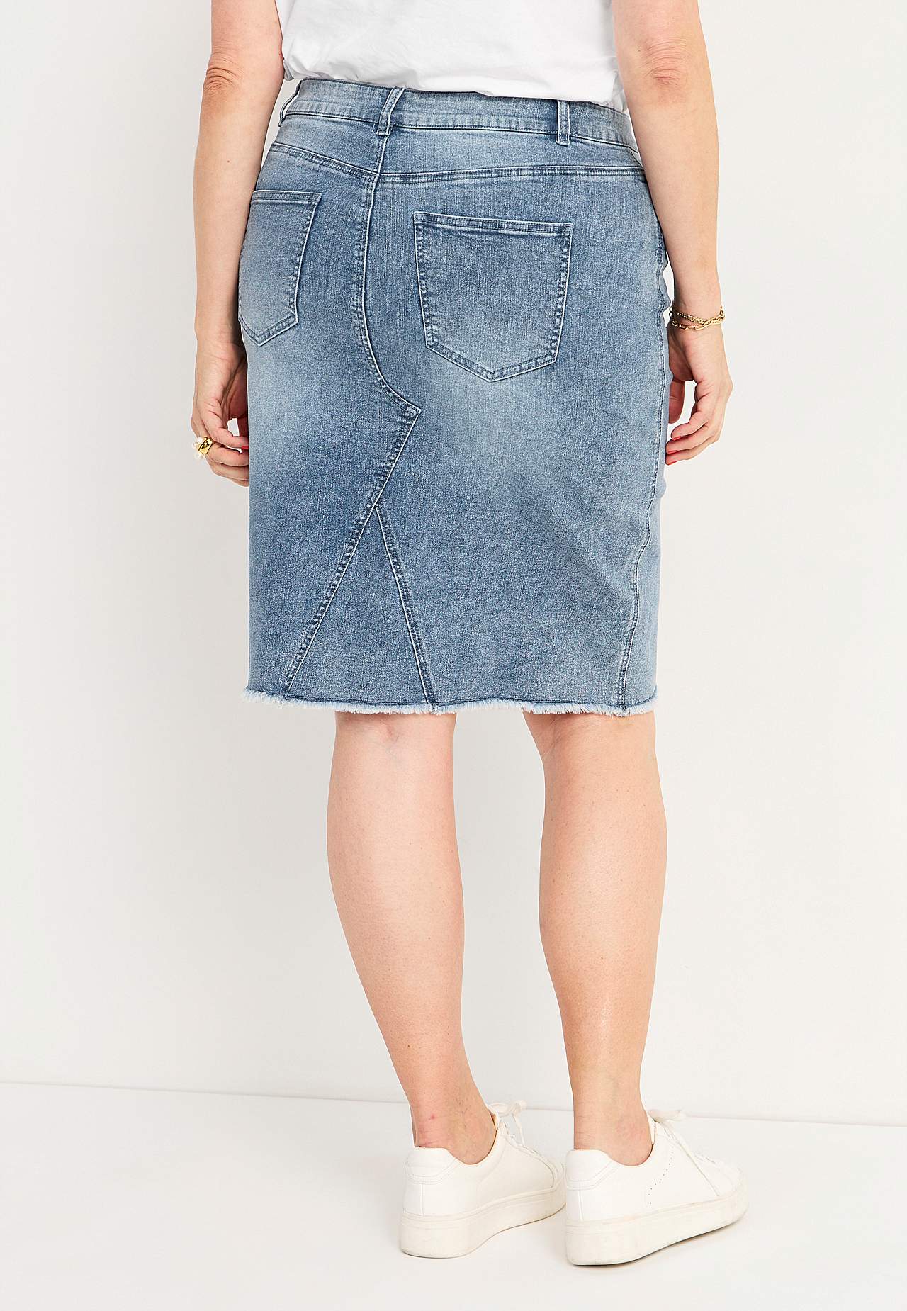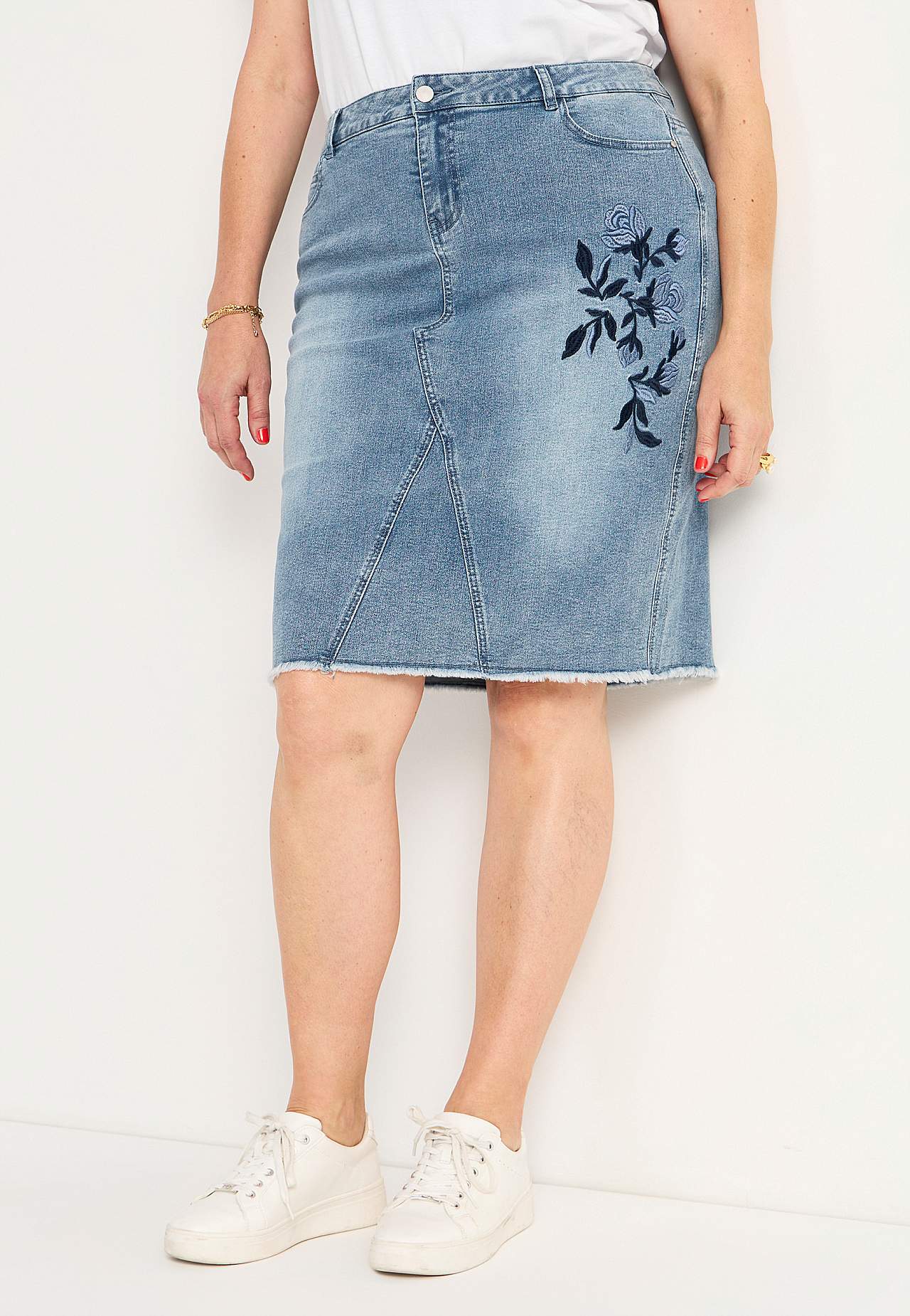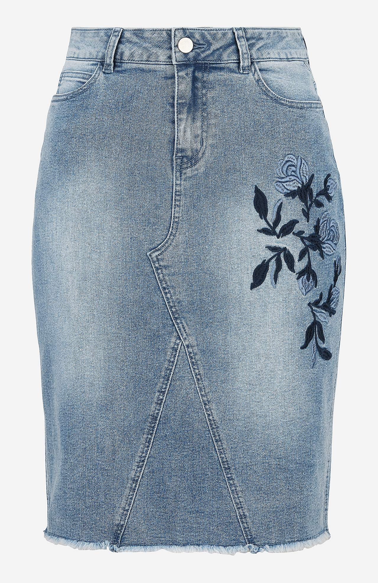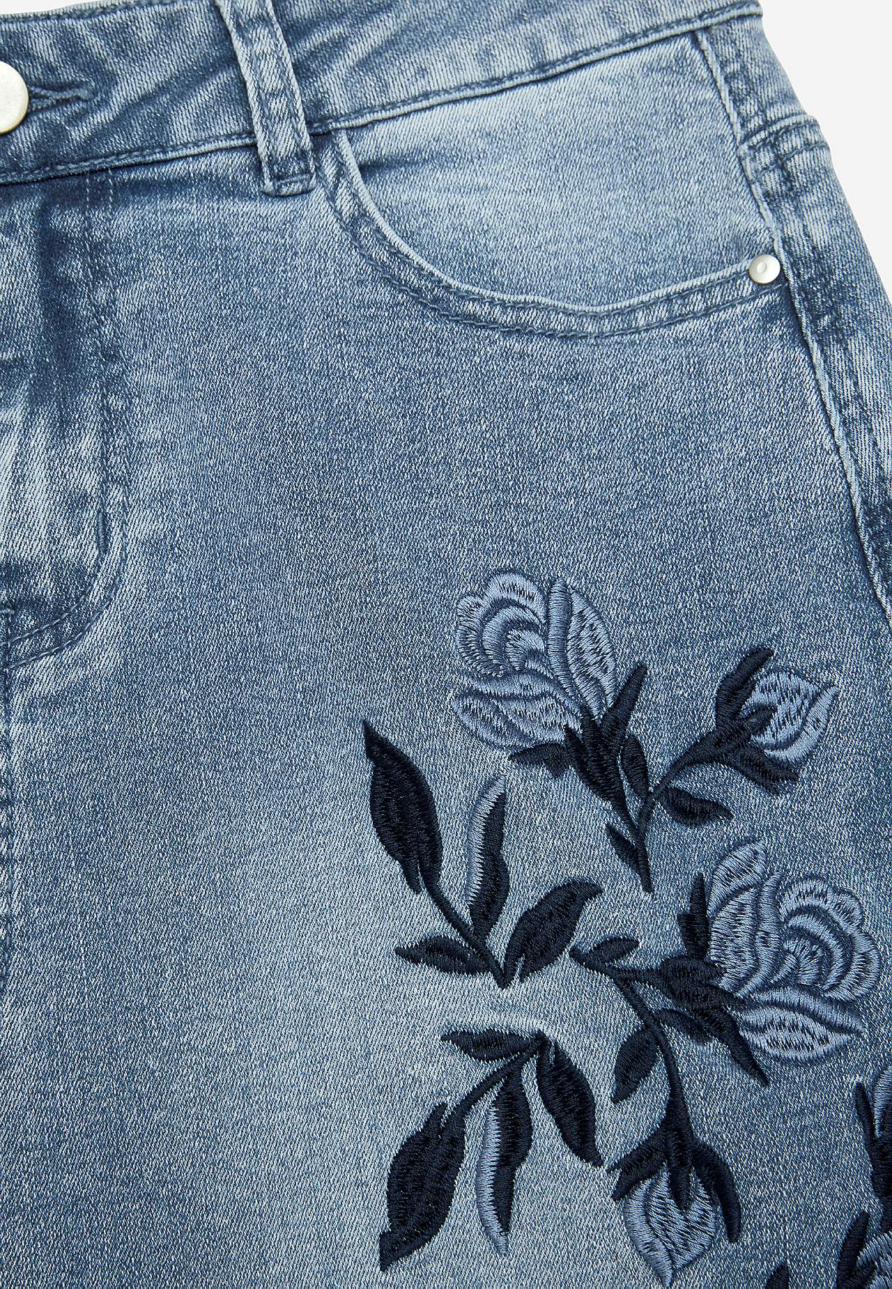 Pehmest ja elastsest teksakangast mugav seelik. Ees dekoratiivne lilletikand. Sirge lõikega tegumood. Viie taskuga mudelil on tavakõrguses pihaosa ja tõmblukukinnis. Taga passe, värvlil vööaasad. Narmastega alläär. Antiikhõbedane nööp. Pikkus vastavalt suurusele ca 53-60 cm.