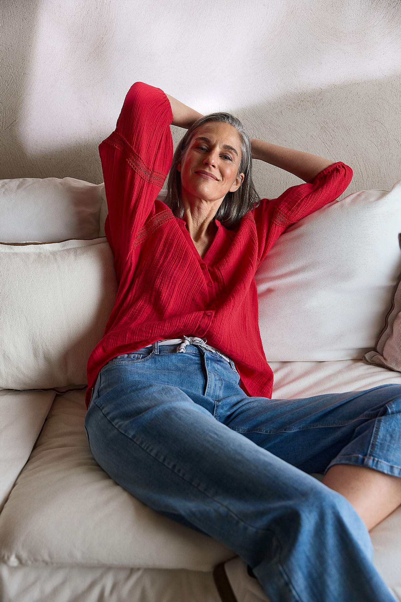 Õhulisest materjalist pluus, varrukatel pitsdetailid. Puuvillasest struktuurkoes musliinkangast. Avaram mudel. Ümar kaelus väikese V-lõhikuga. Ees nööbid. 3/4 pikkuses laiad, elastsete kätistega puhvis raglaanvarrukad. Varrukatel ja raglaanõmbluste juures kaunis pitsist detail. Kaarjas alläär. Selja pikkus vastavalt suuruse... Loe rohkem