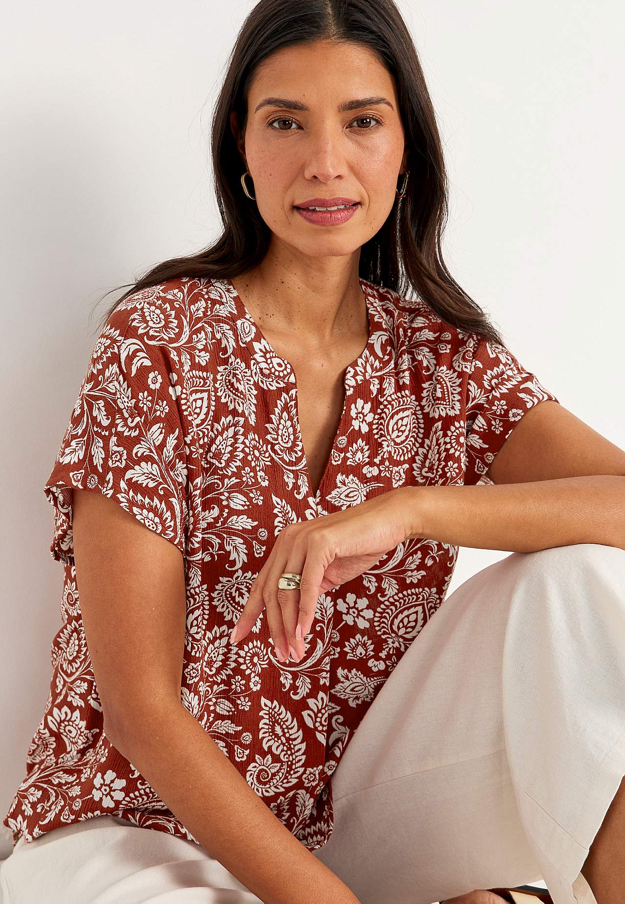 Mati viimistluse ja peene struktuuriga õhuline ja jaheda tundega materjal. Veidi avaram lõige. Ees volt. Lühikesed varrukad. Kaarjas alläär. Sobita toodetega 620625, 702448. Seljapikkus vastavalt suurusele umbes 64–76 cm.