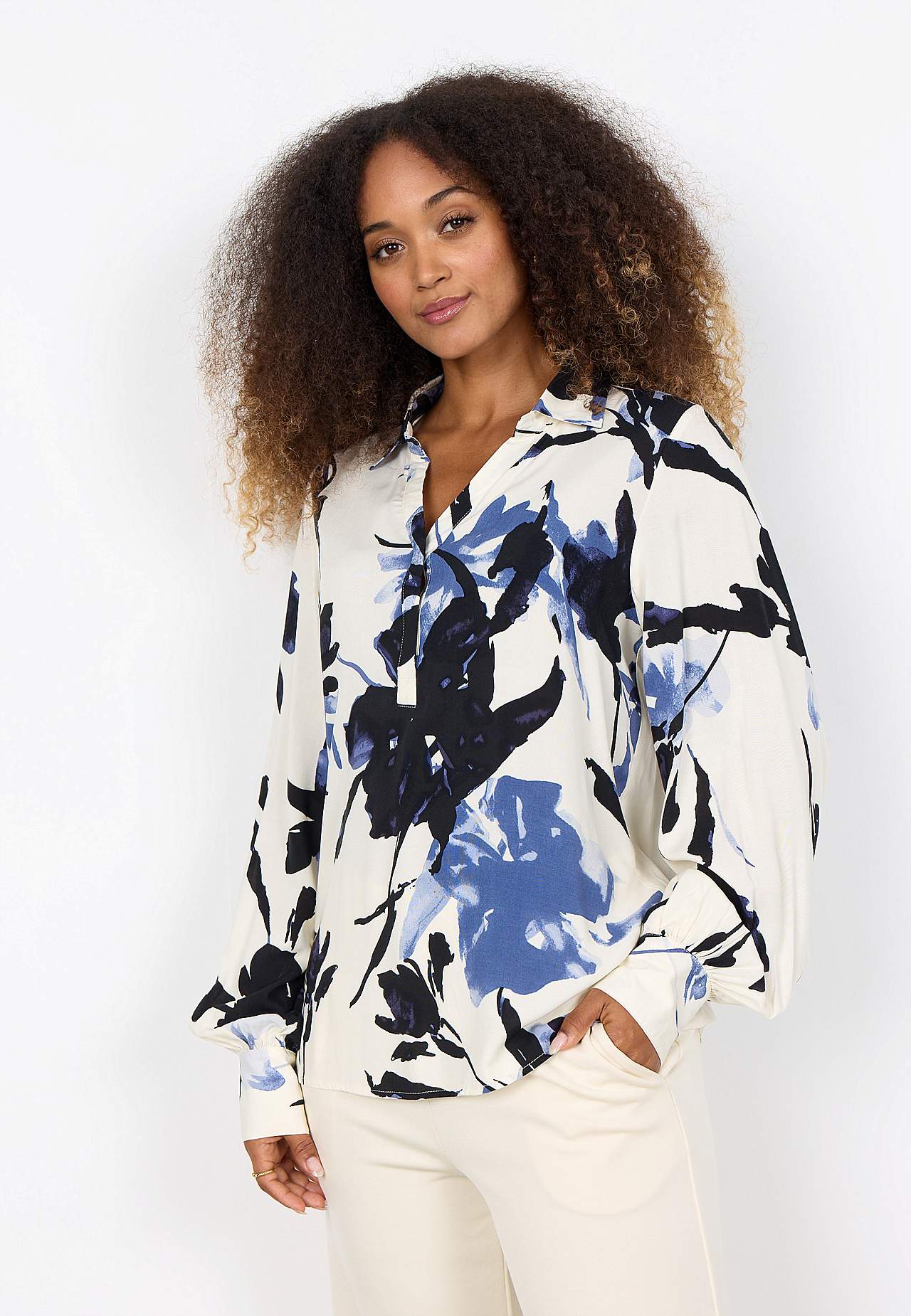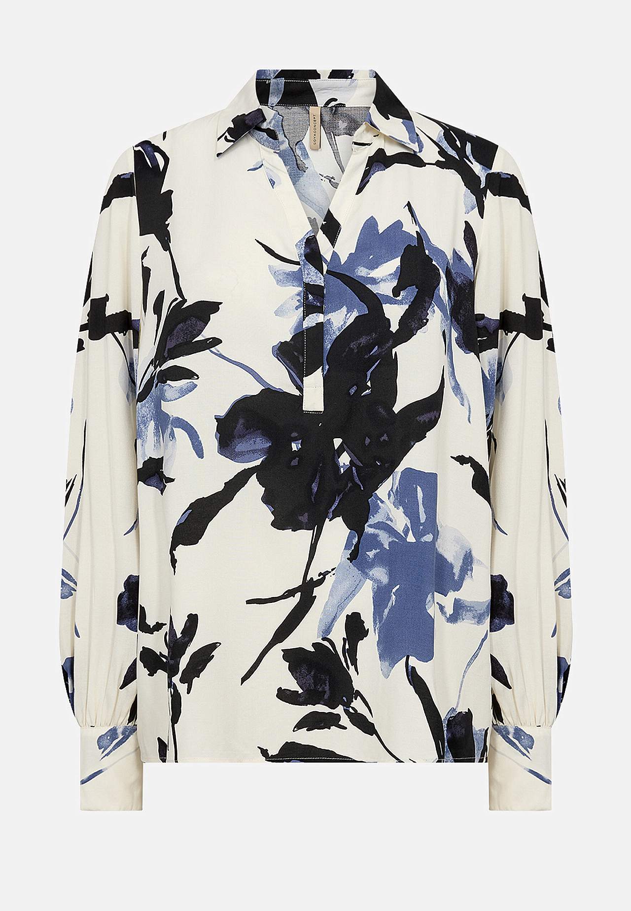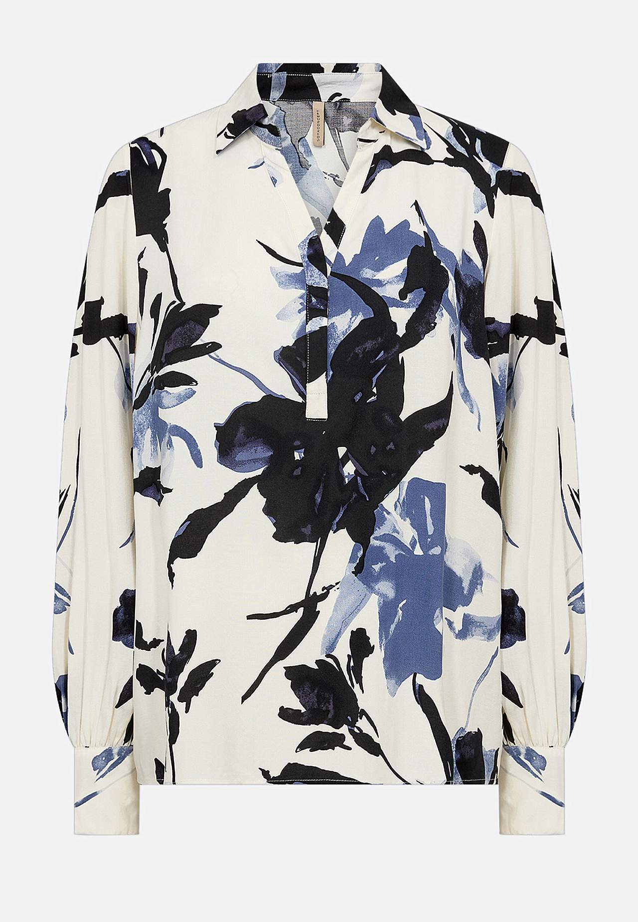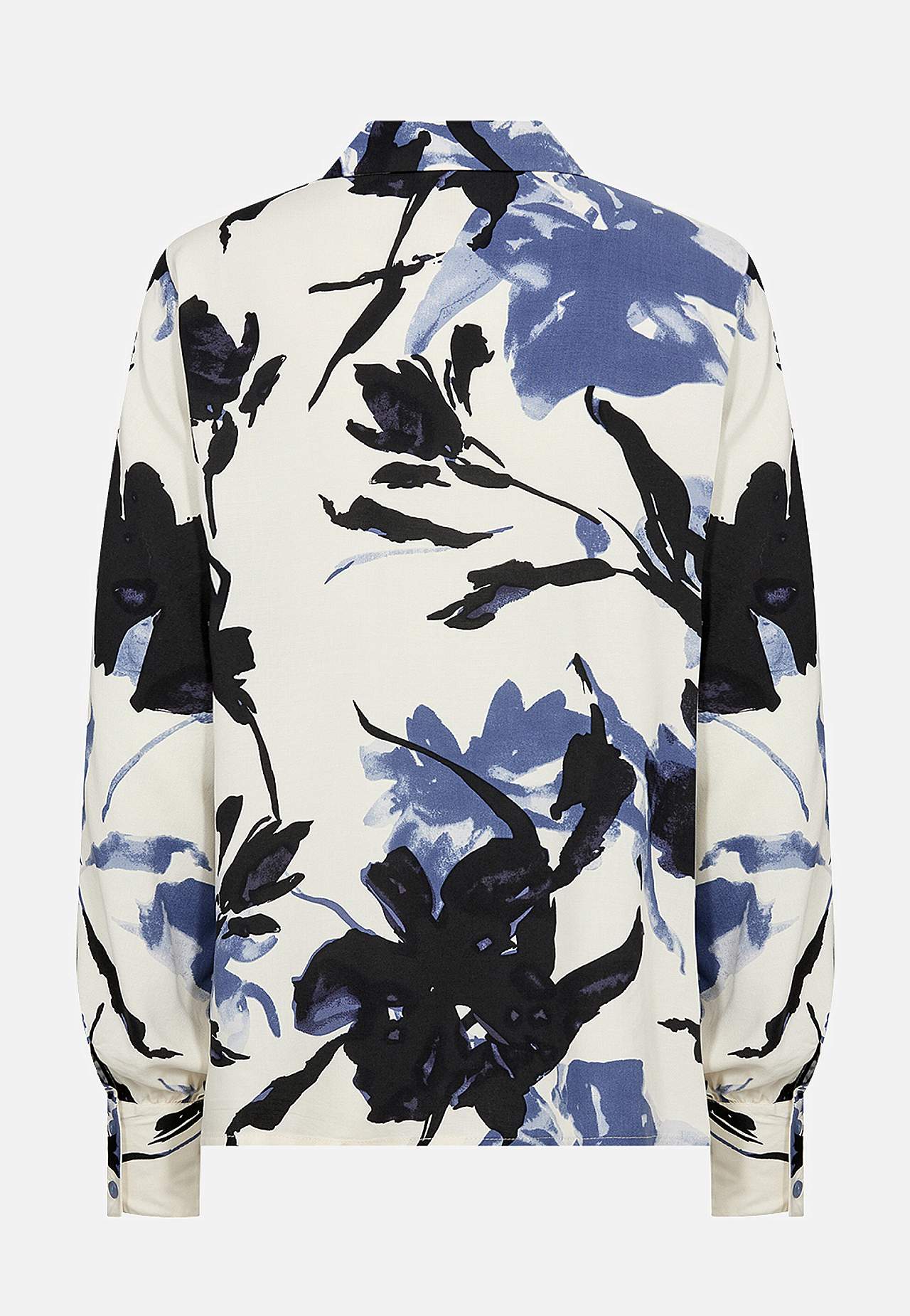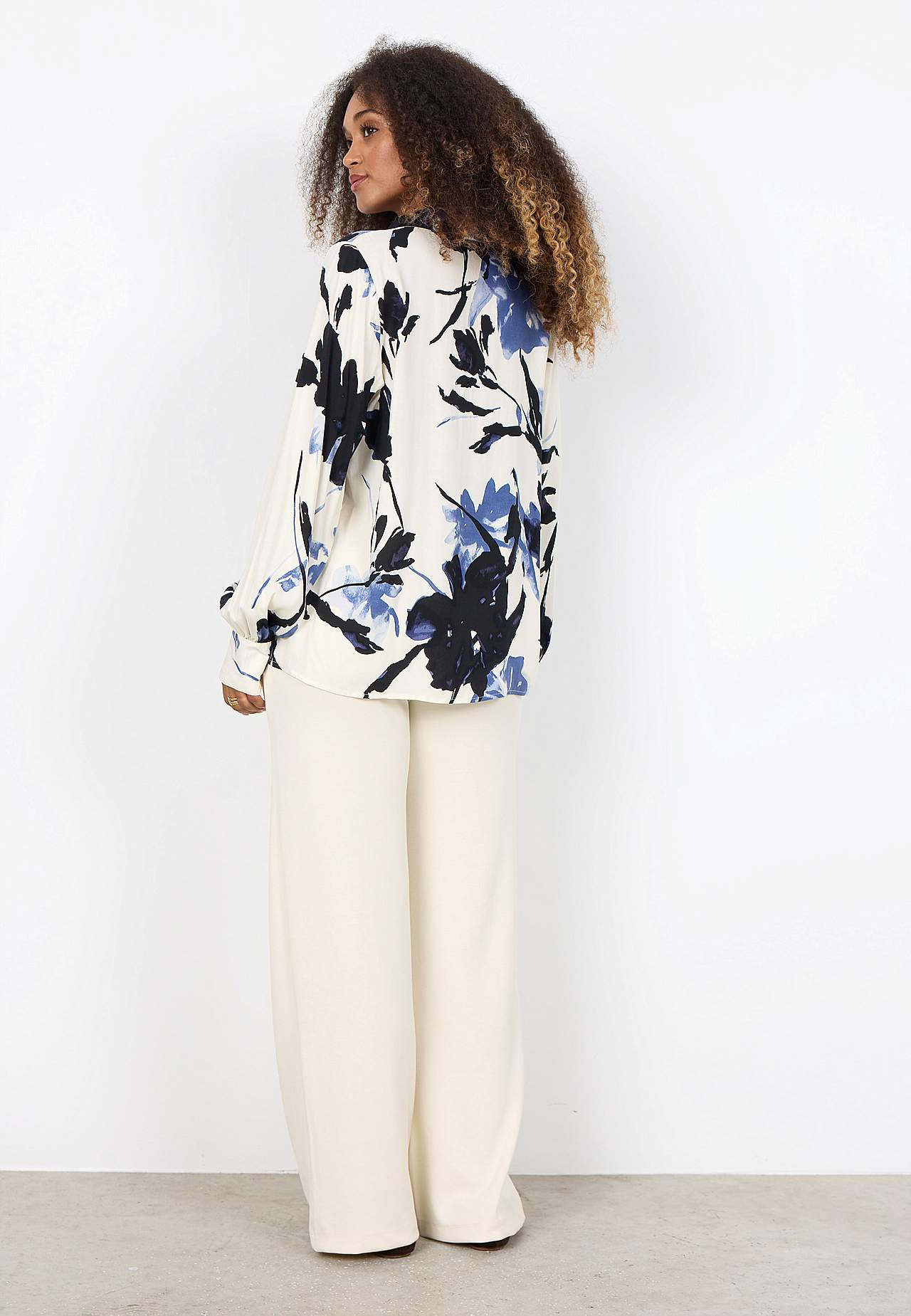 Kauni langevusega õhuline, jahe kangas. Veidi avaram lõige. Klassikaline krae peidetud nööbiliistuga. Pikad laiad varrukad, mille otstes kahe nööbiga mansett. Sirge alläär. Pikkus õlast u. 67 cm suurusel S (38).