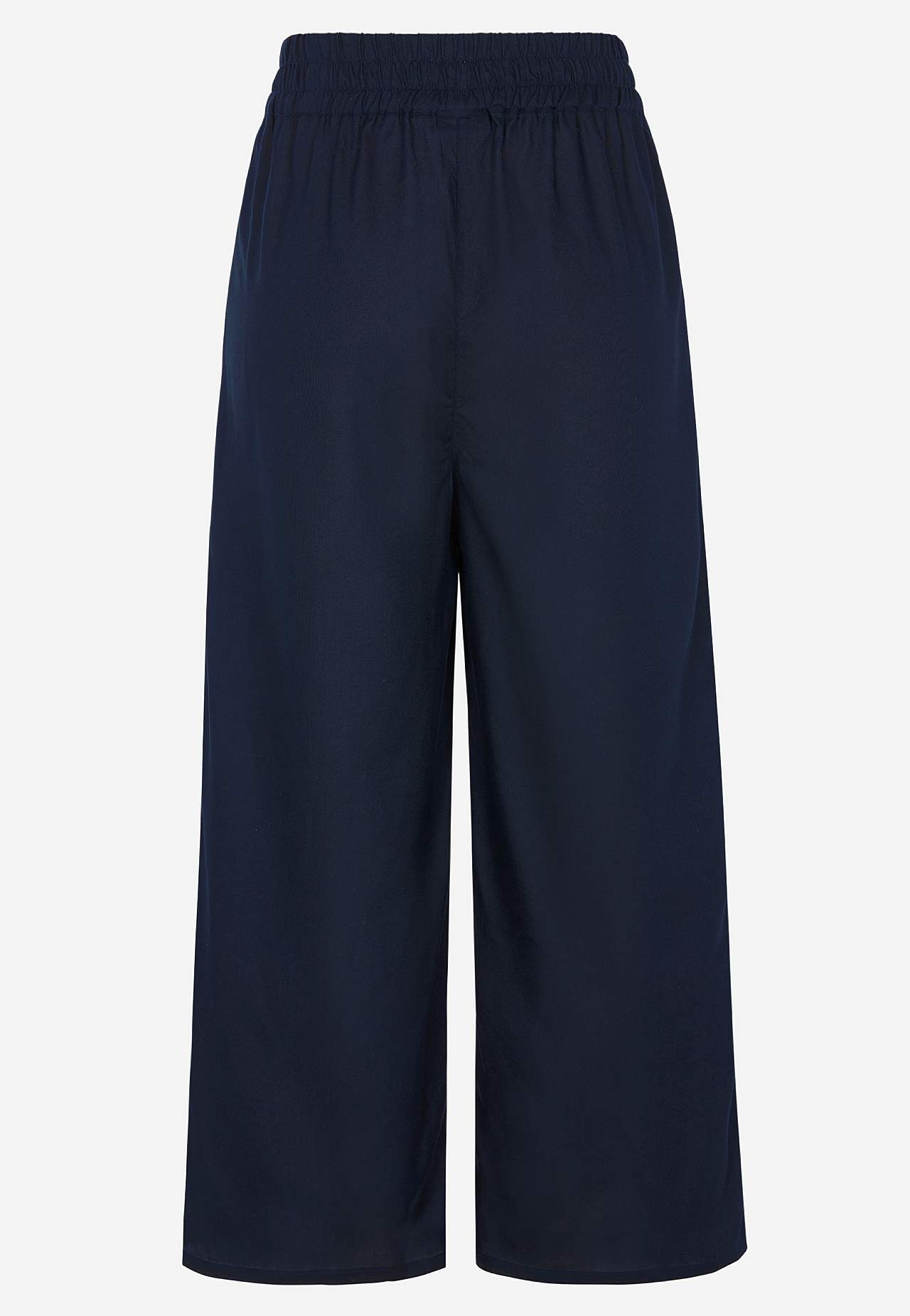 Mõnusad, õhulised culotte-püksid. Sile, pehme ja jahe viskoos. Lai ja pehme elastne vöökoht. Ees viltuse lõikega taskud. Sääre sisepikkus kõikidel suurustel umbes 60 cm. Sobita tootega 702443.