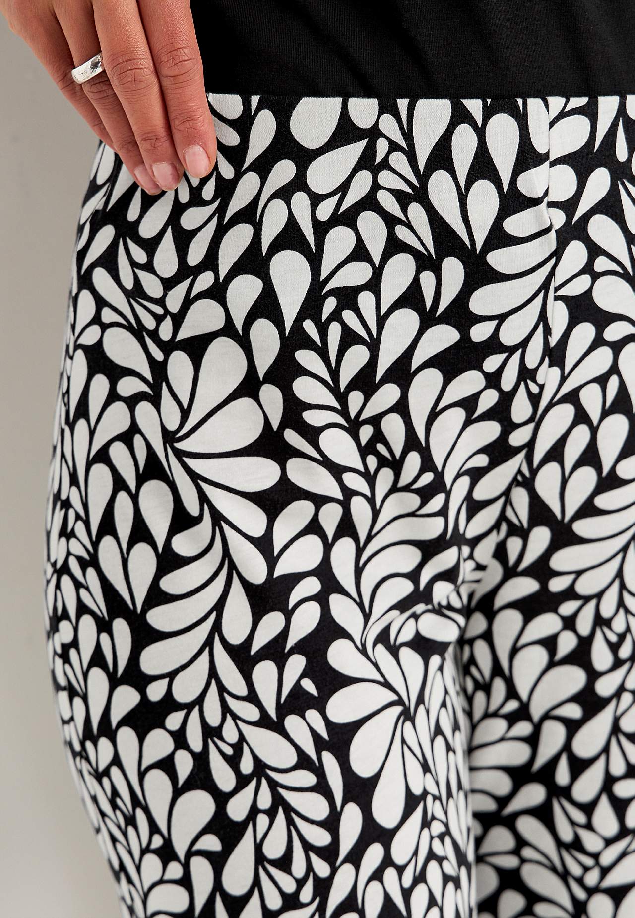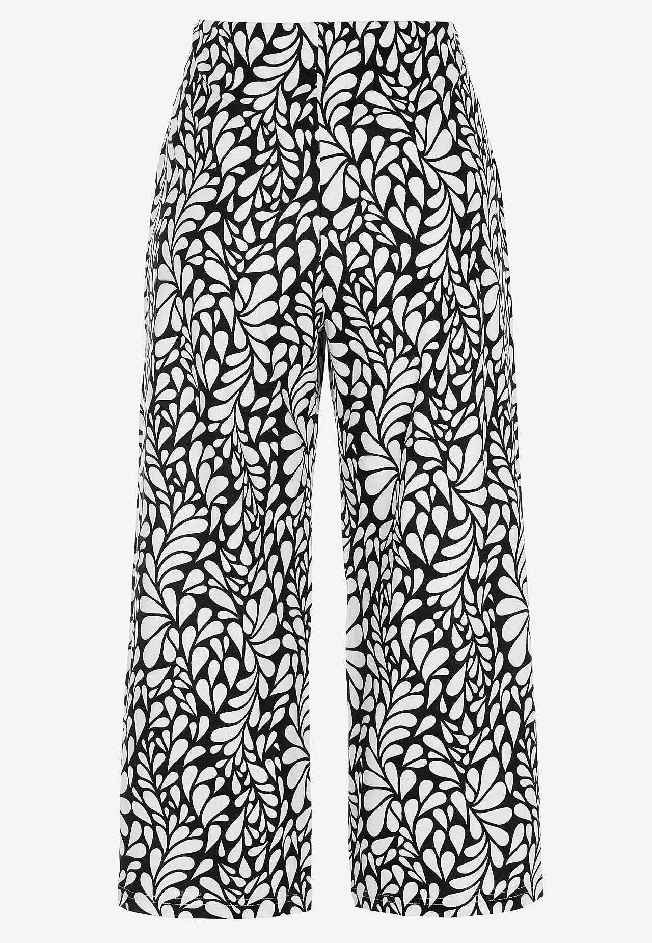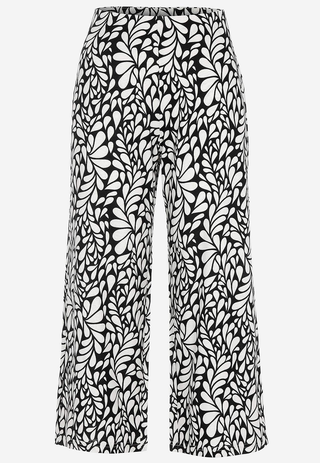 Puuvilla- ja viskoosisegusest trikotaažist Culotte-püksid. Pehme ja elastne materjal. Avaram mudel. Lai ja mugav kõrge elastne vöökoht. Laiad ja sirged sääred. Sobita toodetega 702556, 702638. Sääre sisepikkus kõikidel suurustel u. 58 cm. Hargmiku kõrgus vastavalt suurusele u. 28–37 cm.