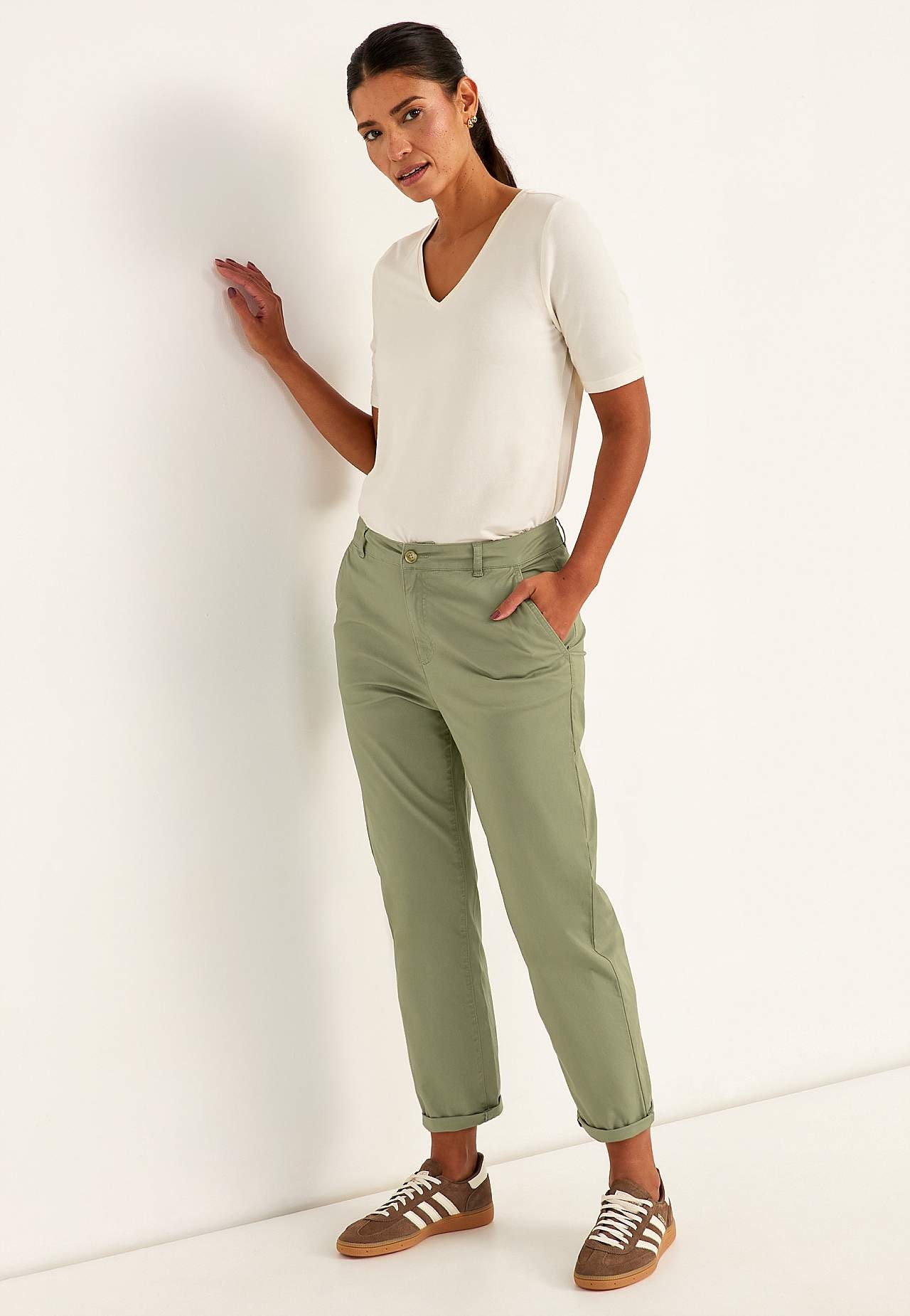Mugavad, elastsest materjalist puuvillased püksid. Stiilne vabaaja disain, sobib kanda ka pidulikumal sündmusel. Sobib T-särgi, pluusi või jakiga. Avara lõikega sirgete, kergelt kitsenevate säärtega. Normaalse kõrgusega vööaasadega vöökoht. Tõmblukk-kinnis. Ees viltuse lõikega taskud. Ehistaskud taga. Sääre sisepikkus u 66 ... Loe rohkem