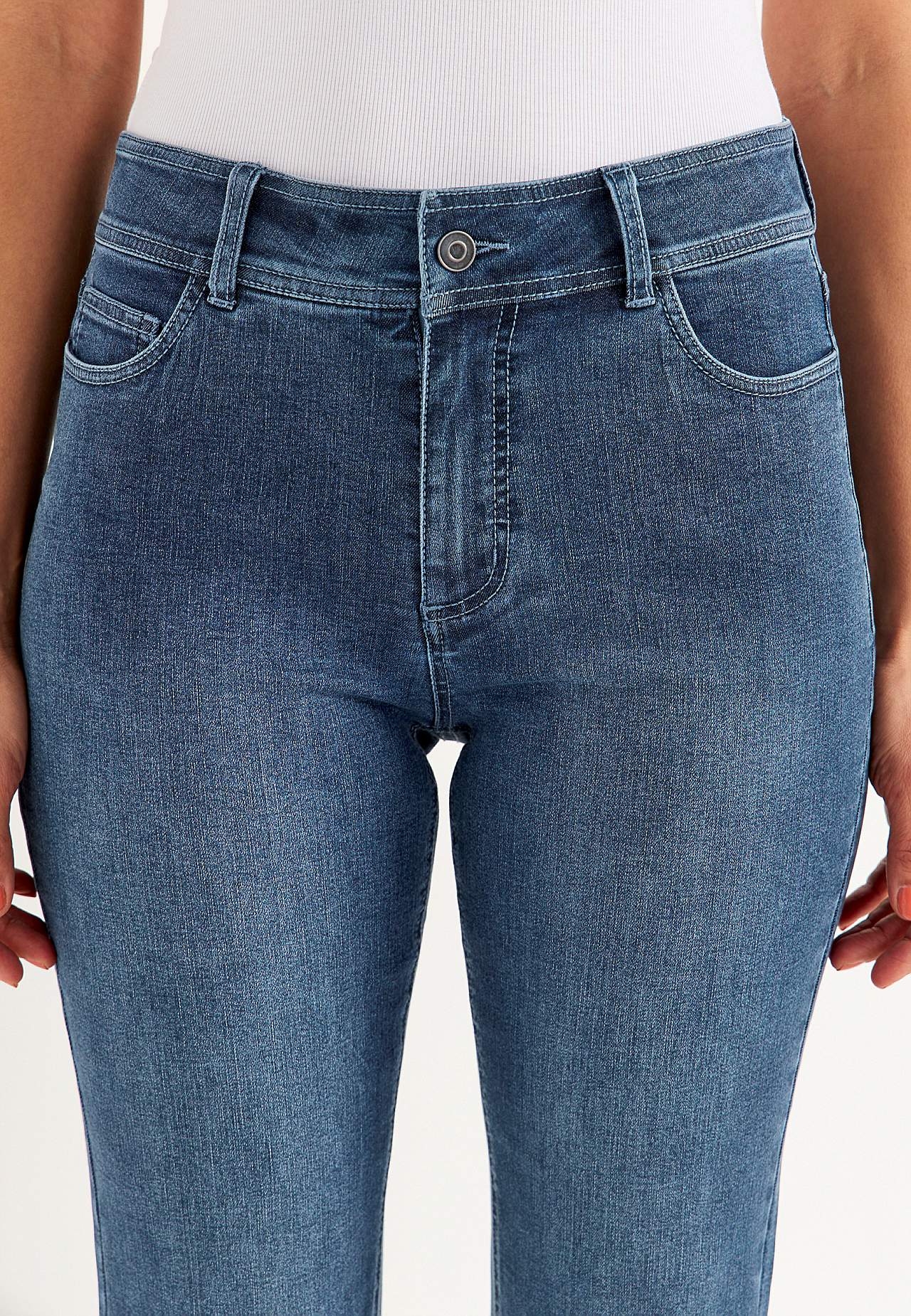 5-taskuga, mugavad ja elastsed teksad. Saadaval kahes pikkuses. Kitsas lõige. Normaalse kõrgusega vöökoht. Tõmblukk-kinnis. Kitsad sääred, pahkluu juurest kergelt laieneva säärega. Kaks sääre sisepikkust : lühike u 61. pikk u 65. Hargmiku kõrgus vastavalt suurusele u 24–35 cm. Toode on suuruselt suurem, seega soovitame vali... Loe rohkem