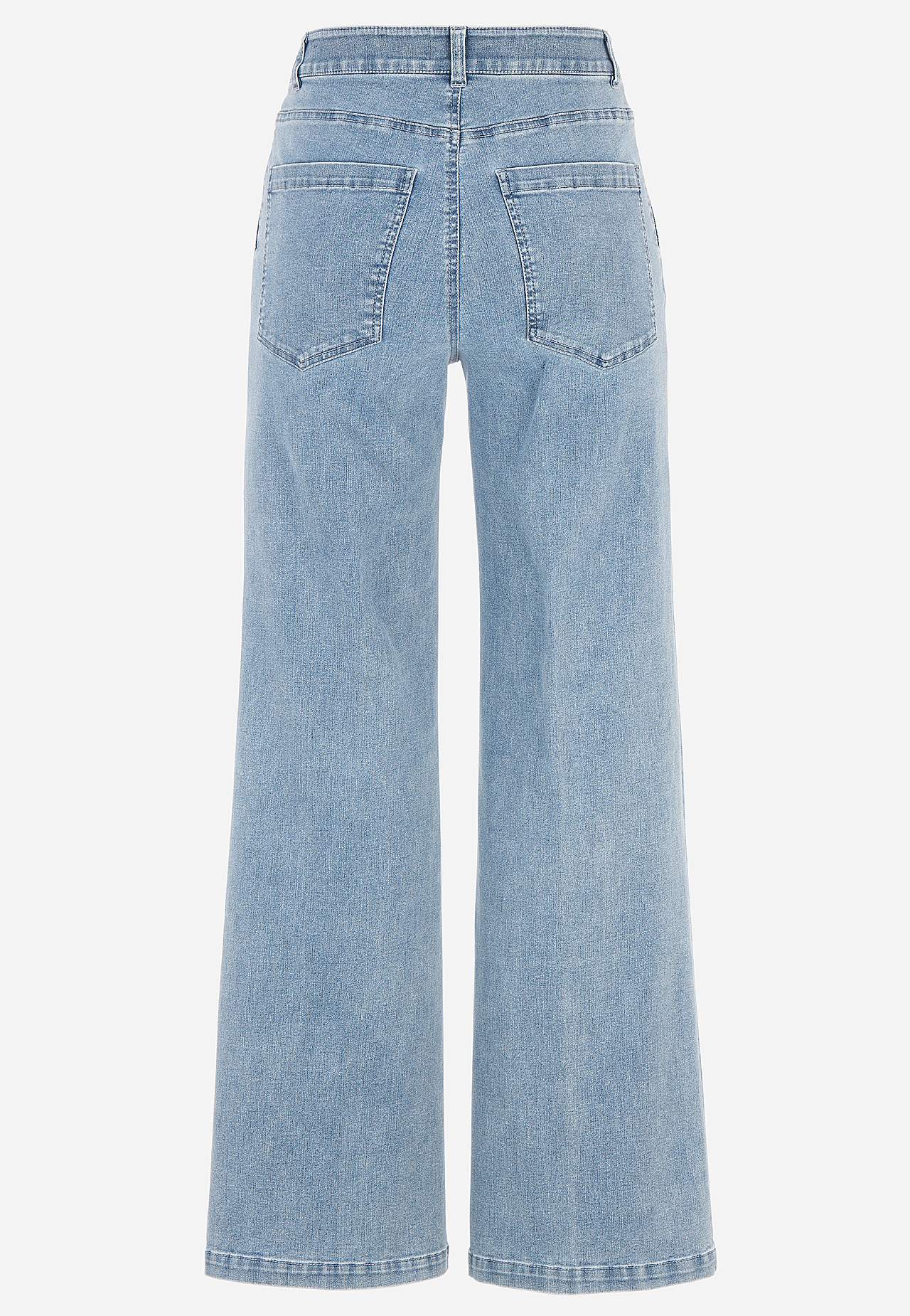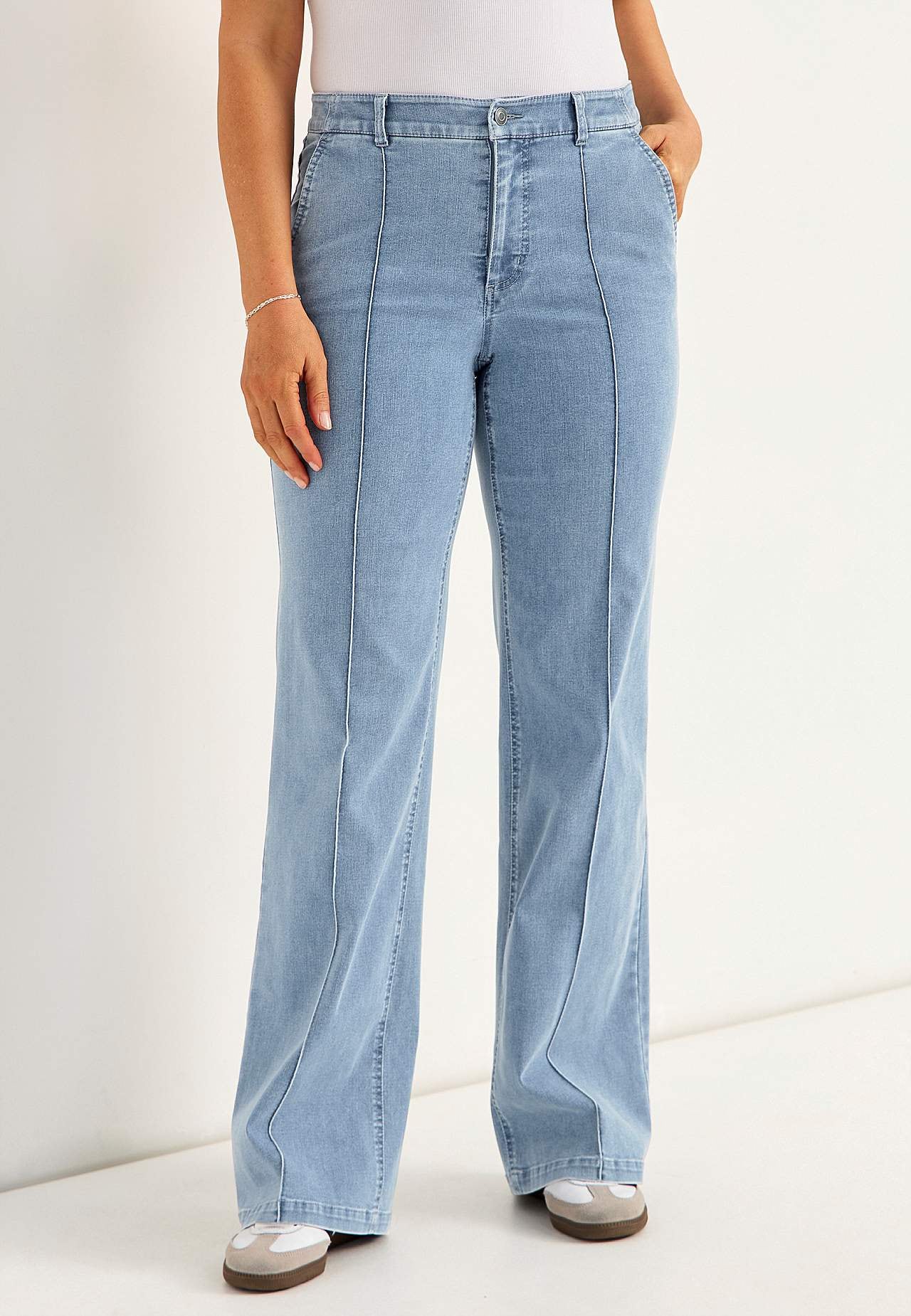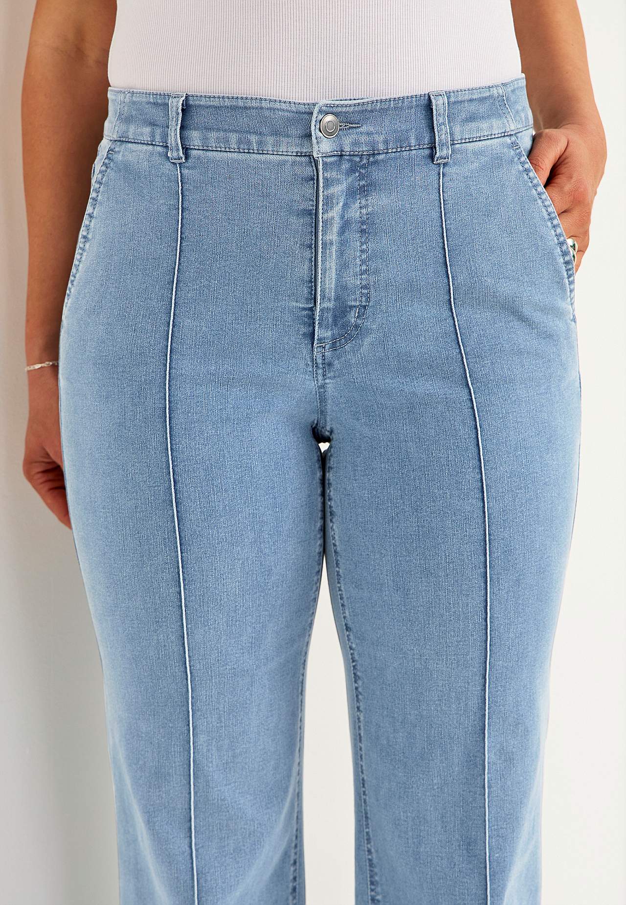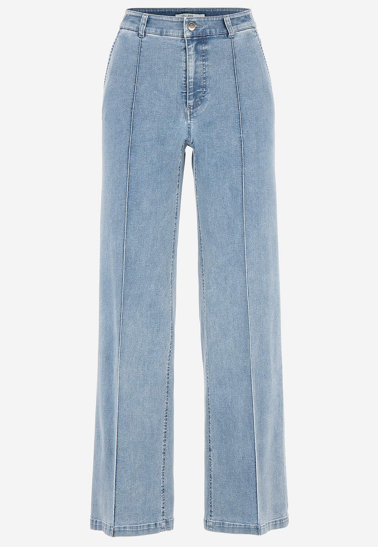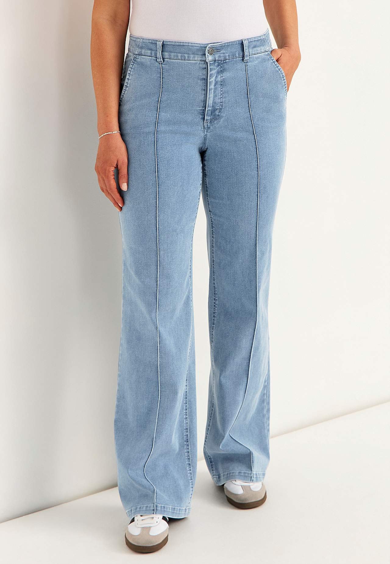 Elastsest kangast teksased. Ees sisseõmmeldud viigid. Tavakõrguses vöökoht. Sirge lõikega. Laiad sääred. Vööaasadega värvel. Tõmblukuga ja nööbiga kinnis. Ees viltuse lõikega küljetaskud. Taga kaks taskut. Saadaval kahes pikkuses. Sääre sisepikkus: Tavapikkus u 80 cm, pikk u 85 cm. Hargmiku kõrgus vastavalt suurusele u. 25–... Loe rohkem