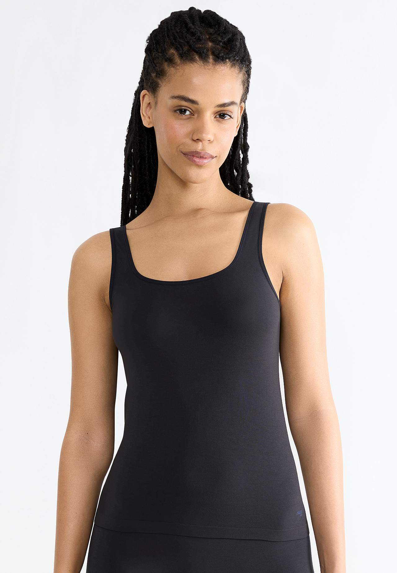 Mugav topp jahedast modaalkangast, sobib igaks sündmuseks. Siidiselt pehme, niiskust juhtiv materjal, mis on hästi hingav ja elastne. Figuuri järgiv lõige. Laiad õlapaelad. Õmblusteta alläär. Pikkus õlast u. cm suuruse puhul.