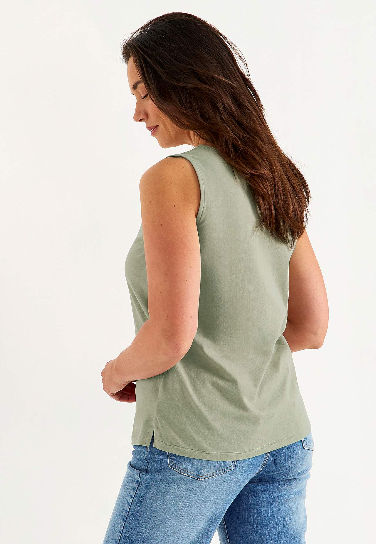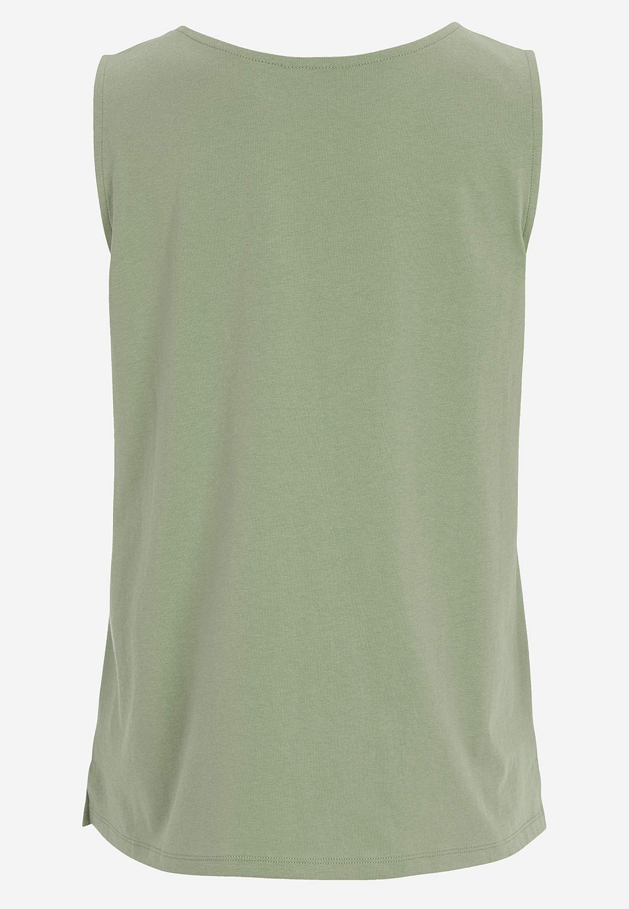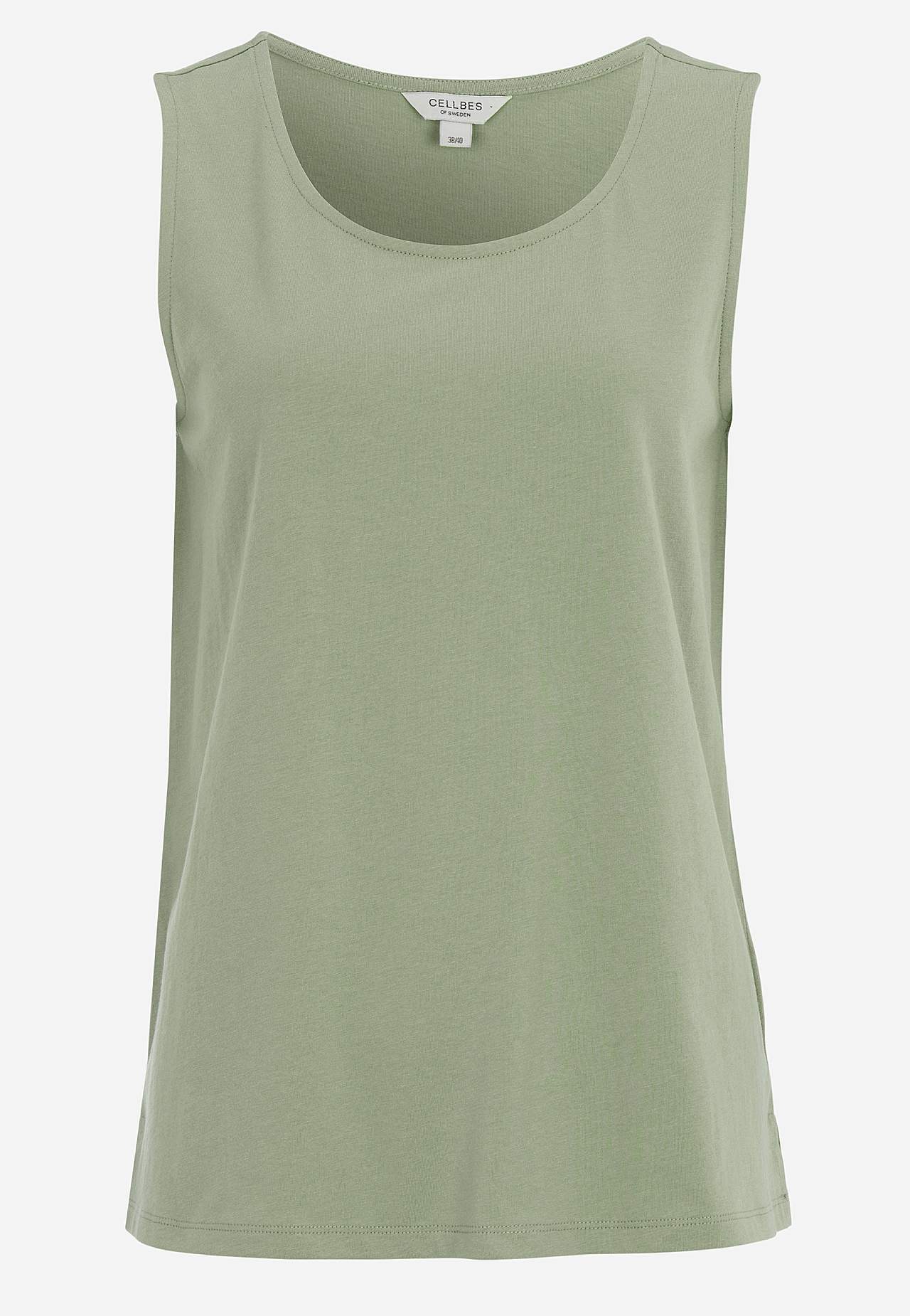 Trikotaažist topp laiade õlapaeltega. Orgaanilisest puuvillast mõnus kangas. A-lõikeline tegumood. Ümar kaelus. Sirge alläär, külgedel lõhikud. Pikkus õlast vastavalt suurusele u 62–77 cm.