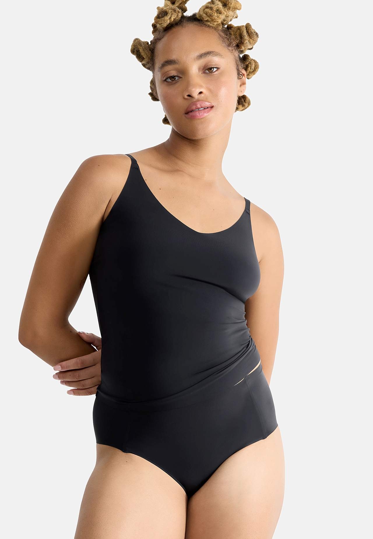 Õlapaeltega, pehmest ja elastsest mikrokiust topp. Kerge, õhuke, kiiresti kuivav ja hea hingavusega materjal. Riiete all nähtamatu ja mugav. Ideaalne igaks sündmuseks. Figuuri järgiv tegumood. Reguleeritavad, kitsad õlapaelad. Õmblusteta ja laserlõigatud alläär. Pikkus ees 34 cm (suurusel S 36/38) + reguleeritavad õlapaelad... Loe rohkem