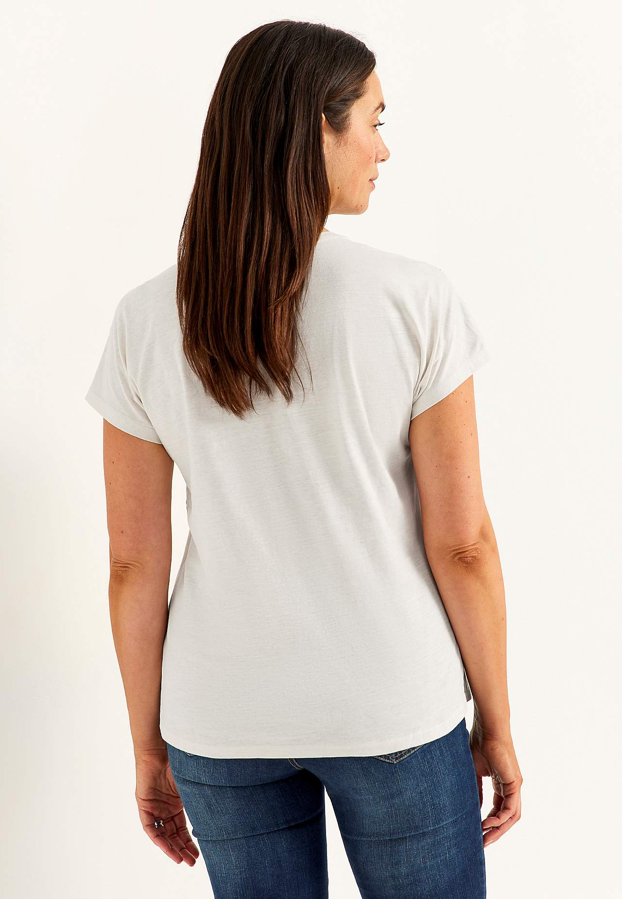 Mõnusast puuvillakangast topp. Sirge tegumoega mudel. Lühikesed varrukad. Sirgel alläärel on külgedel lõhikud. Pikkus õlast vastavalt suurusele umbes 67-81 cm.
