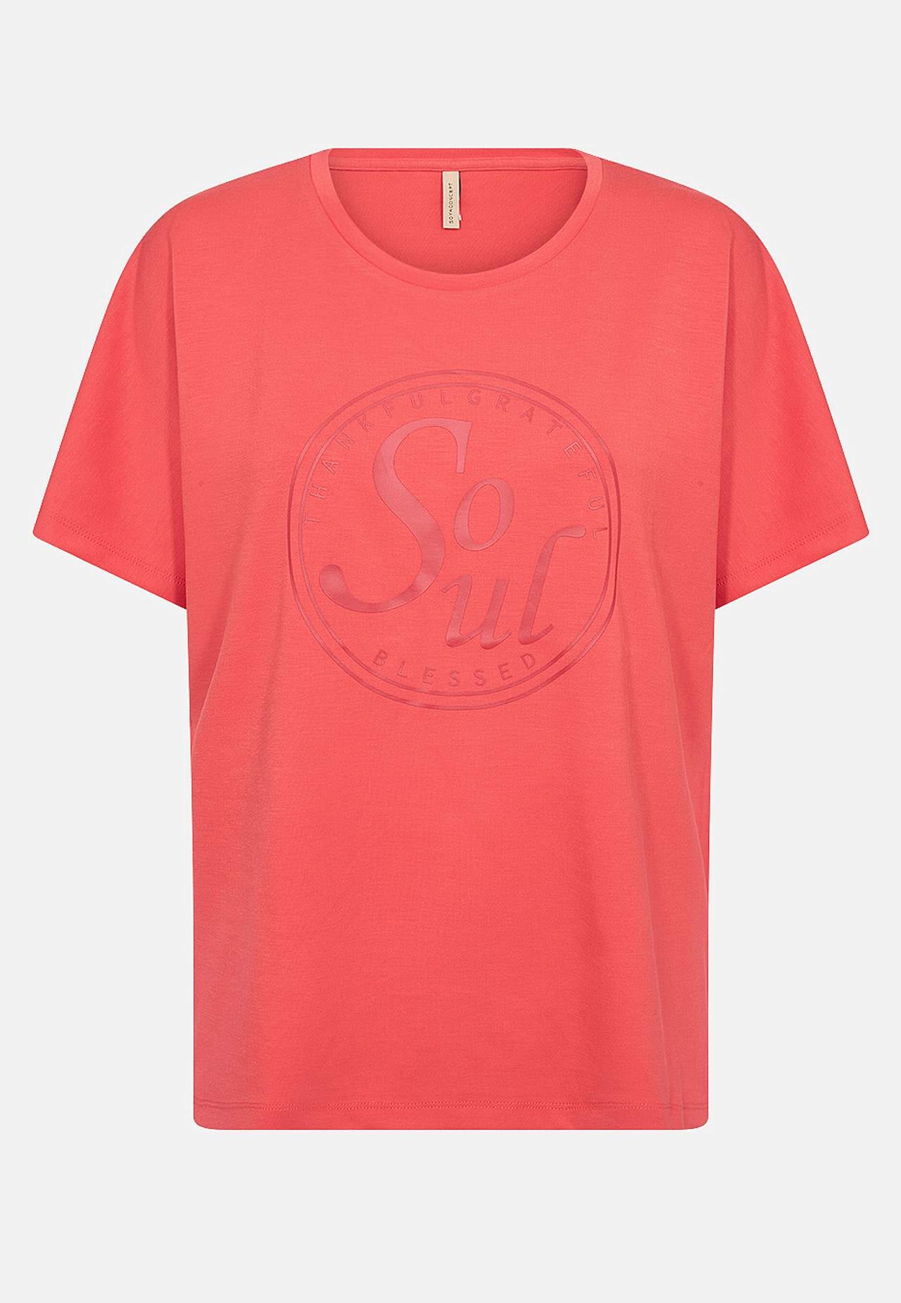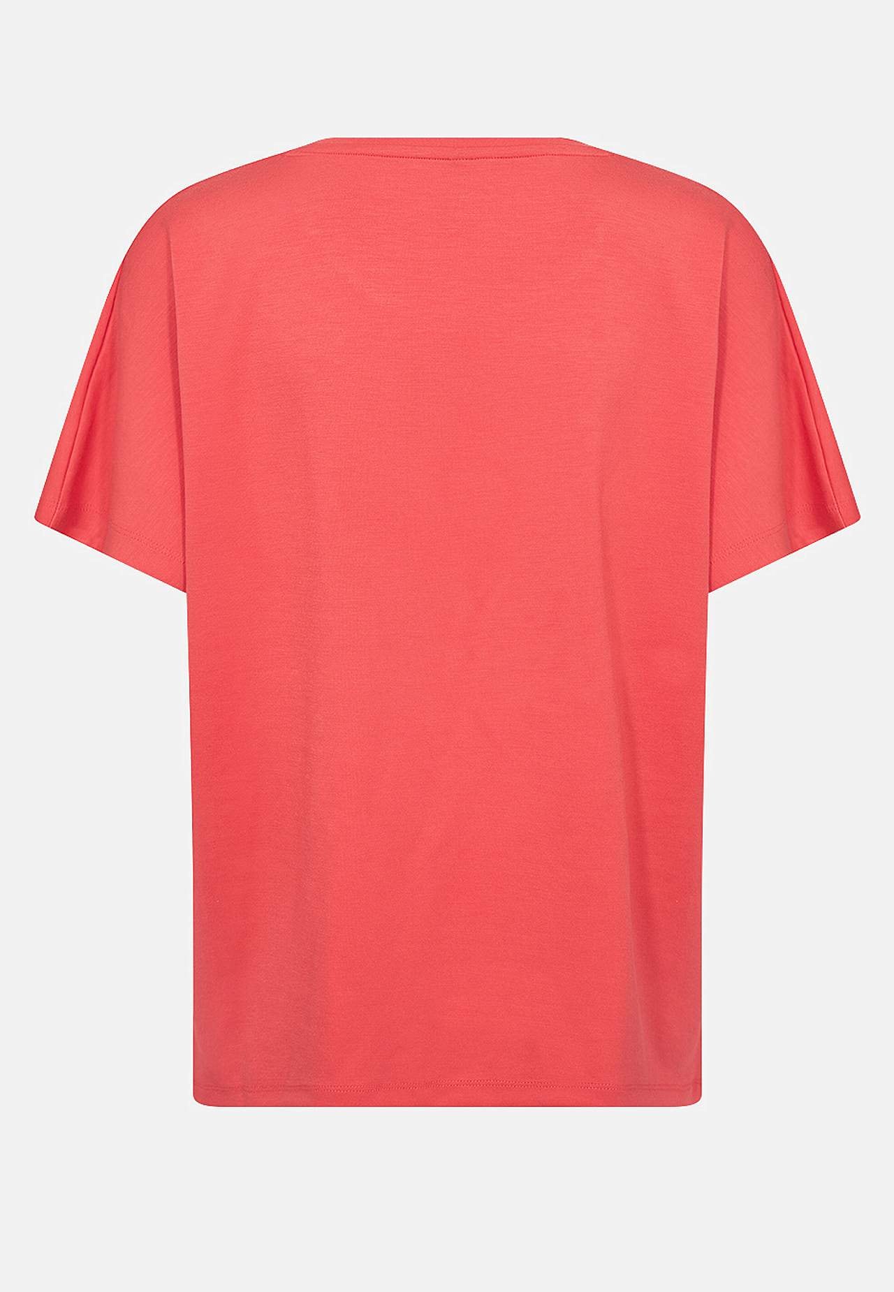 Imeliselt pehmest, veidi paksemast modaalisegusest trikotaažist topp. Avar lõige. Ees trükitud tekst. Lühikesed varrukad. Sirge alläär. Pikkus õlast u 61 cm suurusel S (38).