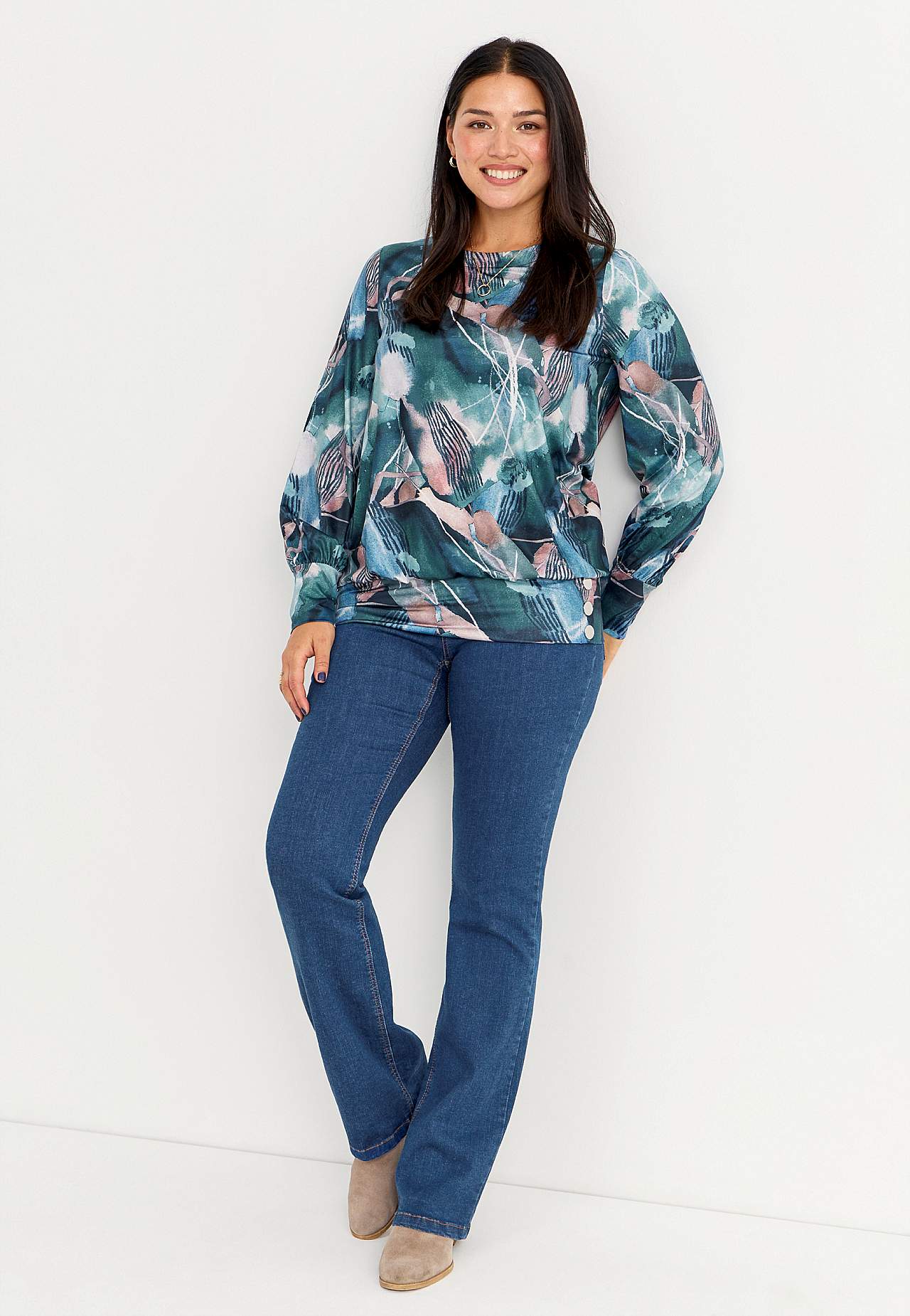 Nööpidega kirju trikotaažtopp
