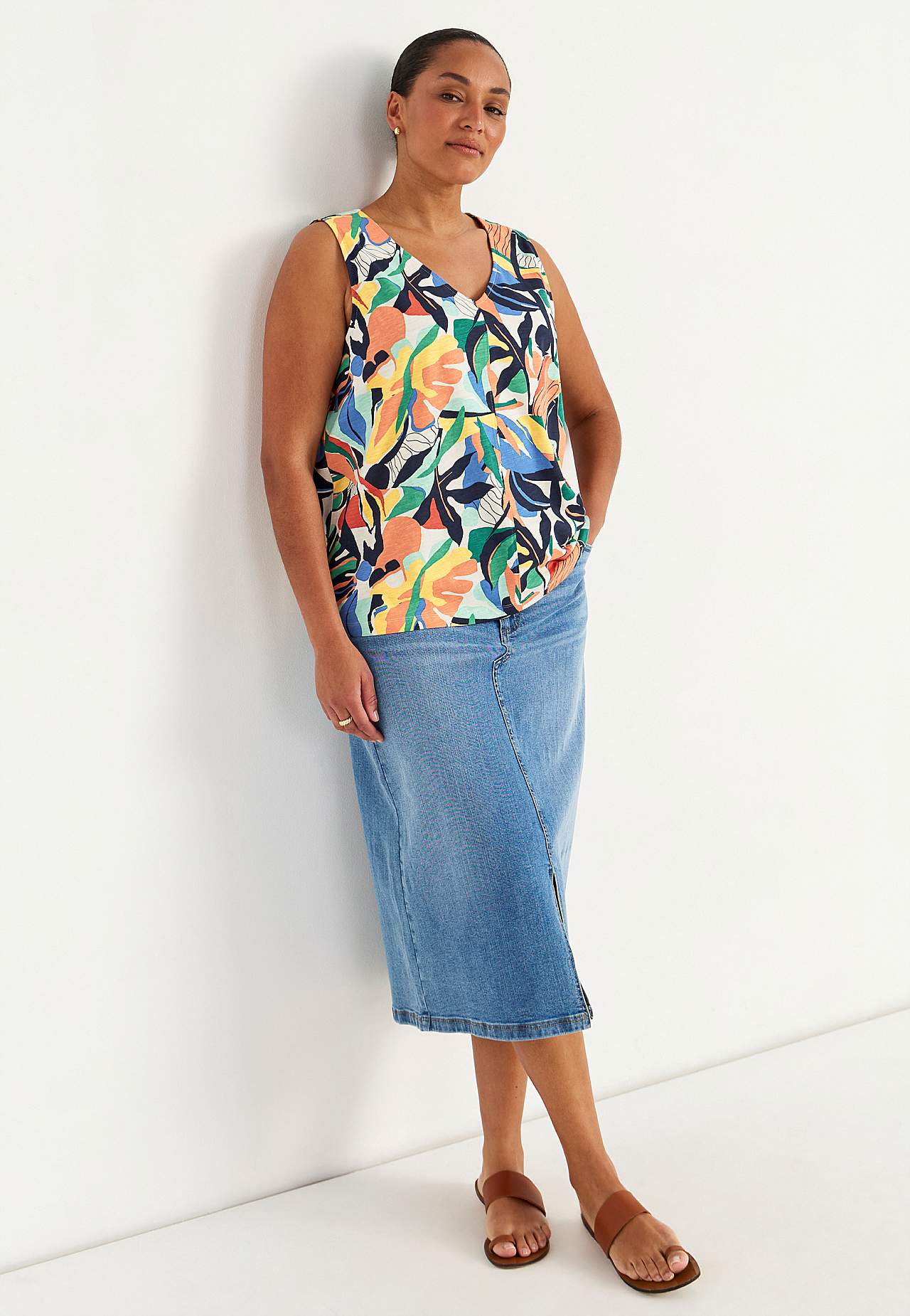 Varrukateta V-kaelusega trikotaažtopp