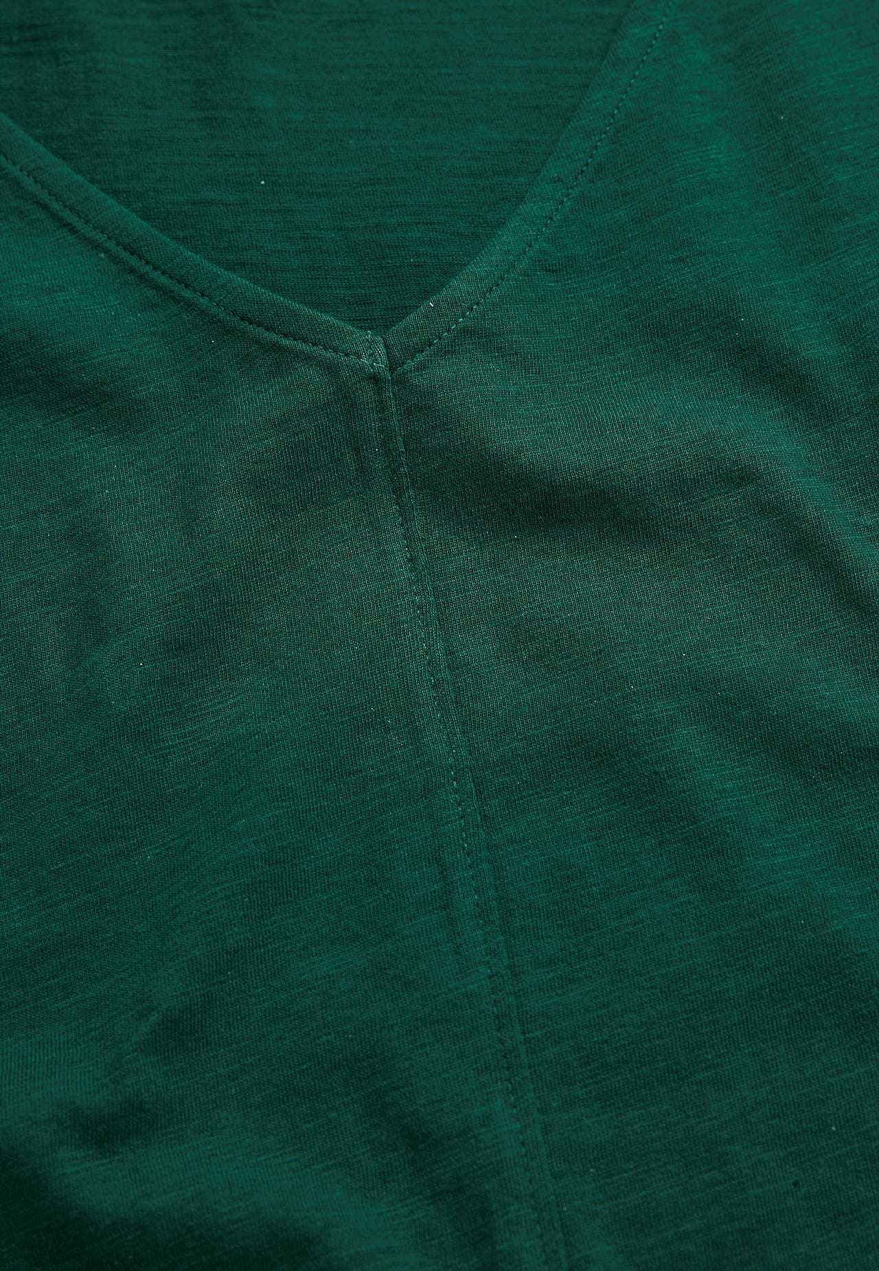 Õhuline materjal sissekootud slub-niitidega. Kergelt A-lõikeline mudel. V-kaelus nii ees kui ka taga. Dekoratiivõmblus ees keskel. Seljapikkus vastavalt suurusele u 60–72 cm.